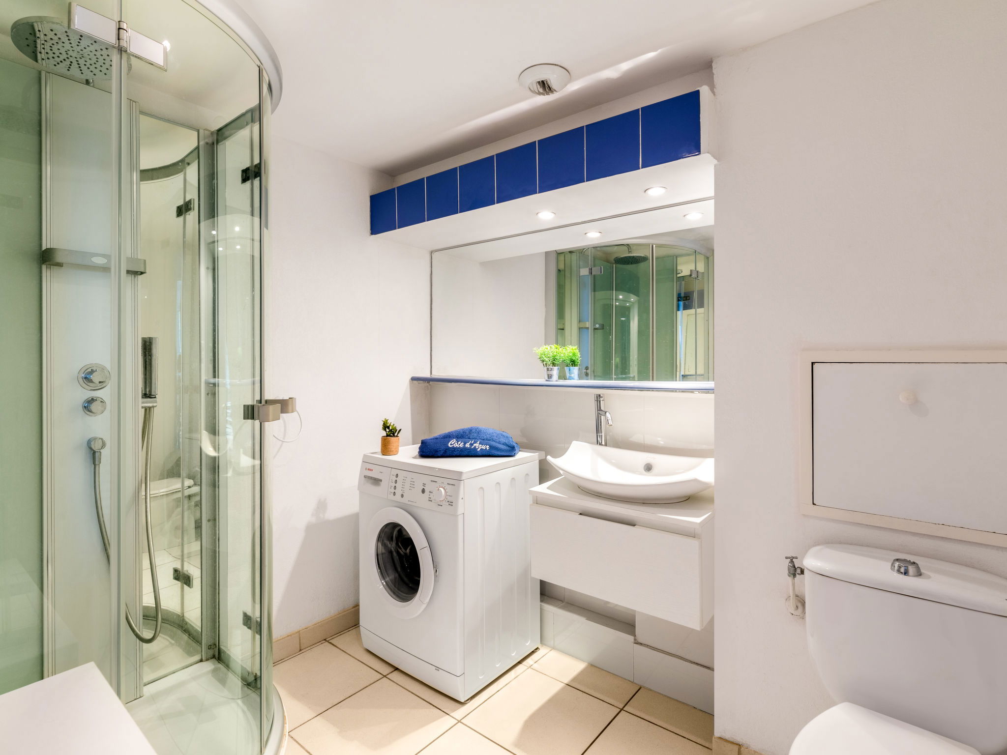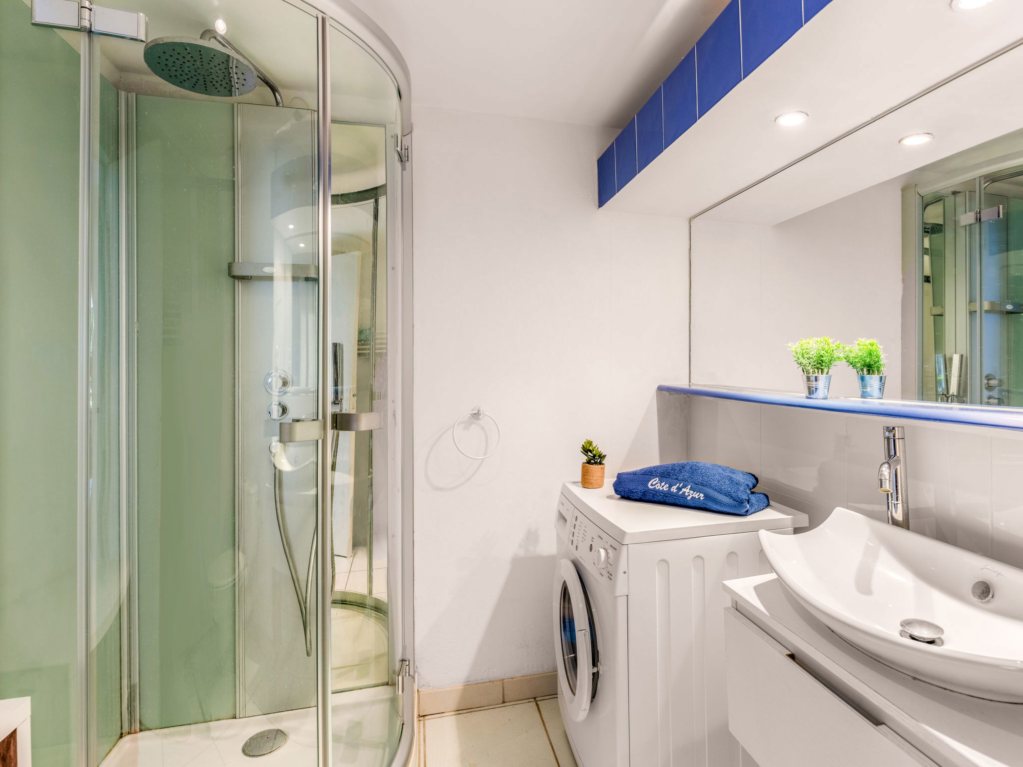 "Les Bastides ", 2-room apartment 36 m2, on the upper ground floor. Beautiful and cosy furnishings: living/sleeping room with 1 double sofabed (140 cm, length 190 cm), TV (flat screen). Exit to the garden, to the terrace. 1 room with 1 double bed (180 cm, length 200 cm). Exit to the garden. Open kitchen (oven, 2 induction hot plates, toaster, microwave, freezer, electric coffee machine). Shower/WC. Electric heating. Terrace 8 m2, patio. Terrace furniture, deck chairs (2). Beautiful view of the sea. Facilities: washing machine, hair dryer. Internet (WiFi, extra). Parking (1 car) at the house. Please note: non-smokers only. 1 small pet/ dog allowed. Smoke alarm. Offer by a private individual according to Art. 155, IV of CGI.