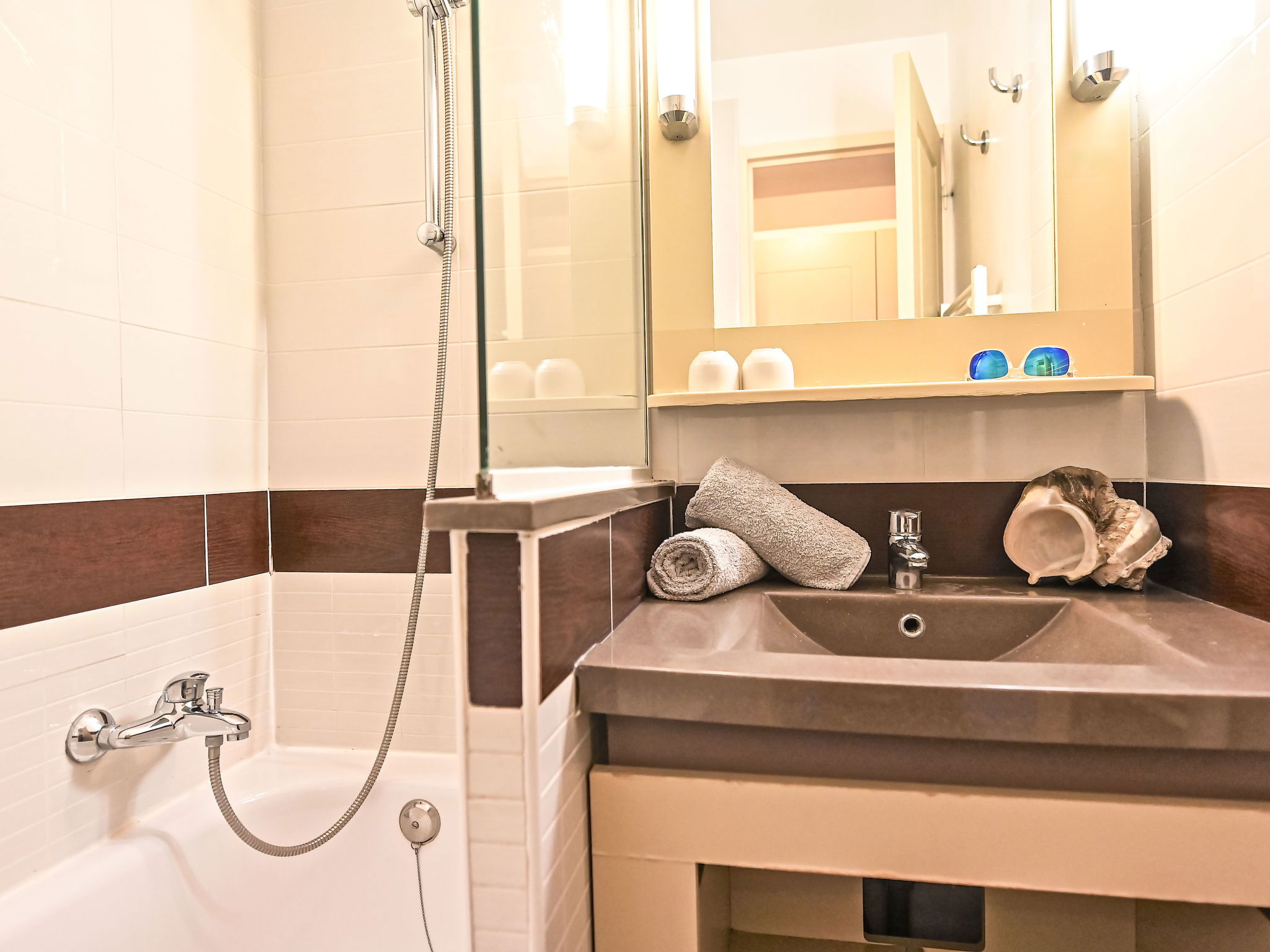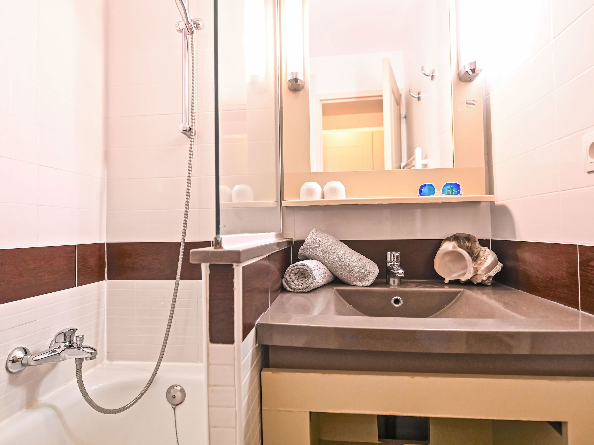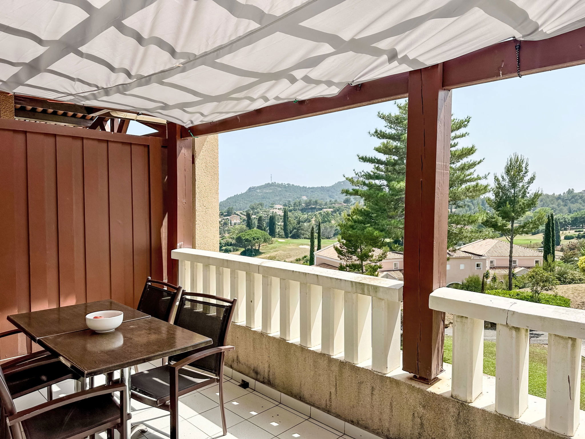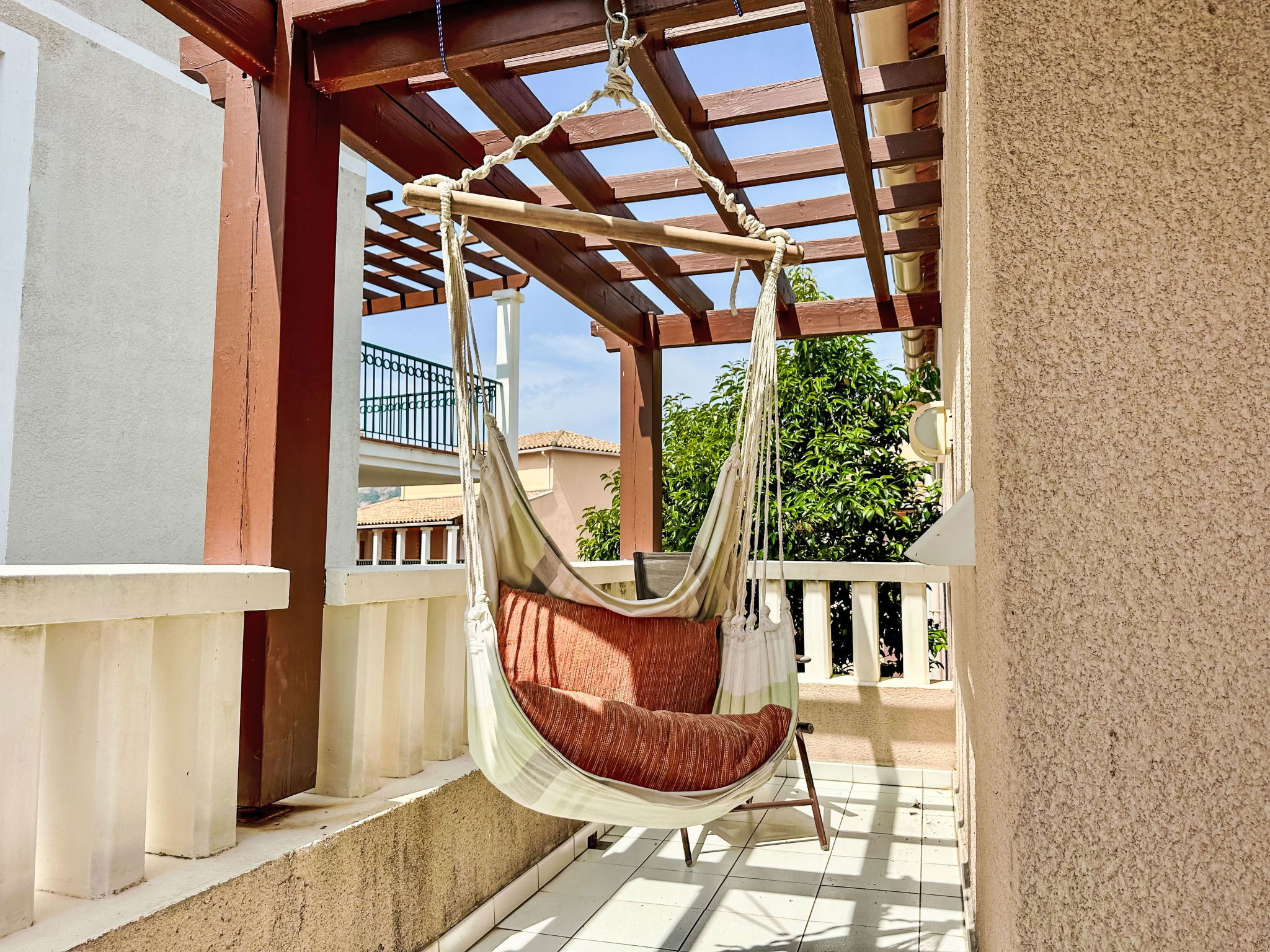 Large resort "Village Cap Estérel - Le Belvédère". On the outskirts, 2 km from the centre of Agay, on a slope, in the residential district, 400 m from the sea, 350 m from the beach, road to cross, on the golf course, in a pedestrian area. For shared use: park 210 ha, 5 swimming pools (seasonal availability: 06.Apr. - 03.Nov.). Children's pool, boccia, children's playground (slide, swing). In the complex: spa area (extra), shopping facilities, laundry (extra). Shop, grocery 200 m, supermarket 6 km, restaurant 150 m, bakery 500 m, bus stop "Ligne 21" 300 m, railway station "Saint-Raphaël-Valescure TGV" 9 km, sandy beach "Tiki Plage" 900 m. Marina 1 km, golf course (9 hole), tennis 500 m. Nearby attractions: Anthéor 8 km, Saint-Raphaël 9 km, Fréjus 13 km, Cannes 33 km, Saint-Tropez 50 km, Nice 76 km. Well-known lakes can easily be reached: Lac Saint-Cassien. Hiking paths: Massif de l'Estérel. Please note: car-free holiday complex, no lift. Entertainment in the season. Suitable for families, childminding in the season (extra). Guarded residence. The keys‘ handover takes place by the agency in Cap Estérel. Additional accommodations can be booked. Access to the apartments is via steps, even on the ground floor.