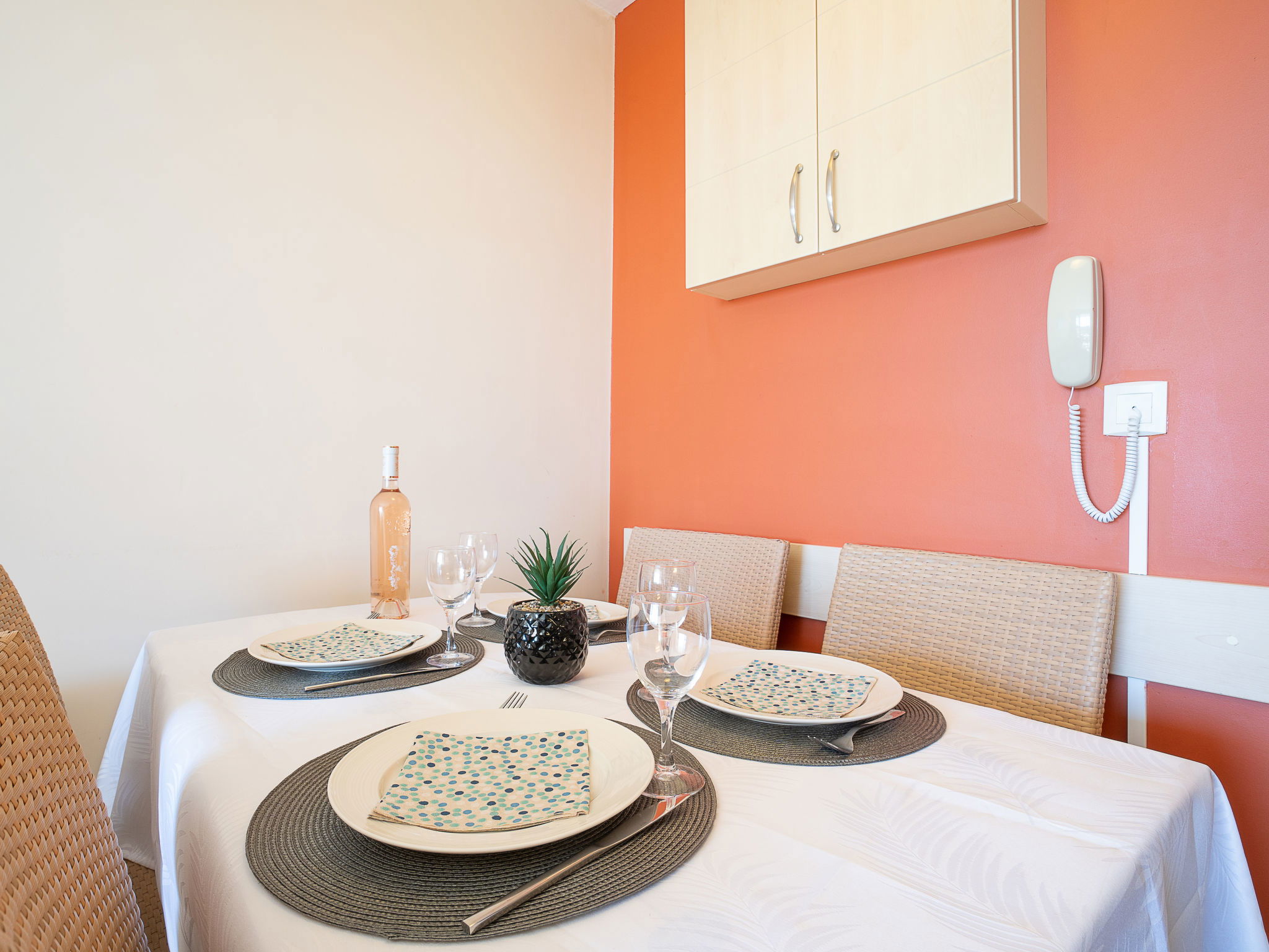 "L'Esquinade (P6 323)- place des pêcheurs", 2-room apartment 28 m2 on 2nd floor. Object suitable for 2 adults + 2 children. Living room with 1 fold-away bed (80 cm, length 190 cm), 1 pull-out bed (2 x 80 cm, length 190 cm), TV (flat screen), fan. Exit to the terrace. 1 small room with 1 french bed (140 cm, length 190 cm). Kitchenette (4 hot plates, dishwasher, toaster, kettle, microwave, freezer, electric coffee machine, Capsules for coffee machine (Dolce Gusto) extra). Bathroom, sep. WC. Electric heating. Terrace 8 m2. Terrace furniture. Distant view of the sea. Facilities: baby cot for up to 2 year olds. Internet (WiFi, extra). Parking (1 car). Please note: non-smokers only. Maximum 1 pet/ dog allowed. Smoke alarm. Offer by a private individual according to Art. 155, IV of CGI.