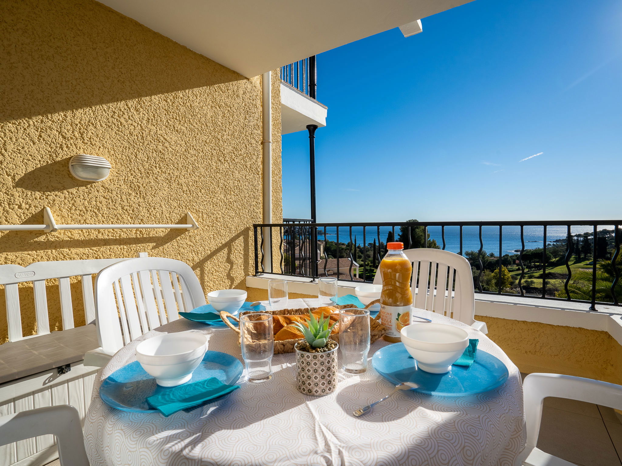 Large resort "Village Cap Estérel - Le Village". On the outskirts, 2 km from the centre of Agay, on a slope, in the residential district, 900 m from the sea, 900 m from the beach, road to cross, on the golf course, in a pedestrian area. For shared use: park 210 ha, 5 swimming pools (seasonal availability: 06.Apr. - 03.Nov.). Children's pool, boccia, children's playground (slide, swing). In the complex: spa area (extra), shopping facilities, laundry (extra). Shop 500 m, grocery, supermarket 6 km, restaurant 500 m, bakery, bus stop "Ligne 21" 300 m, railway station "Saint-Raphaël-Valescure TGV" 9 km, sandy beach "Tiki Plage" 900 m. Marina 1 km, golf course (9 hole), tennis 500 m. Nearby attractions: Anthéor 8 km, Saint-Raphaël 9 km, Fréjus 13 km, Cannes 33 km, Saint-Tropez 50 km, Nice 76 km. Well-known lakes can easily be reached: Lac Saint-Cassien. Hiking paths: Massif de l'Estérel. Please note: car-free holiday complex, no lift. Entertainment in the season. Suitable for families, childminding in the season (extra). Guarded residence. Additional accommodations can be booked. Access to the apartments is via steps, even on the ground floor.