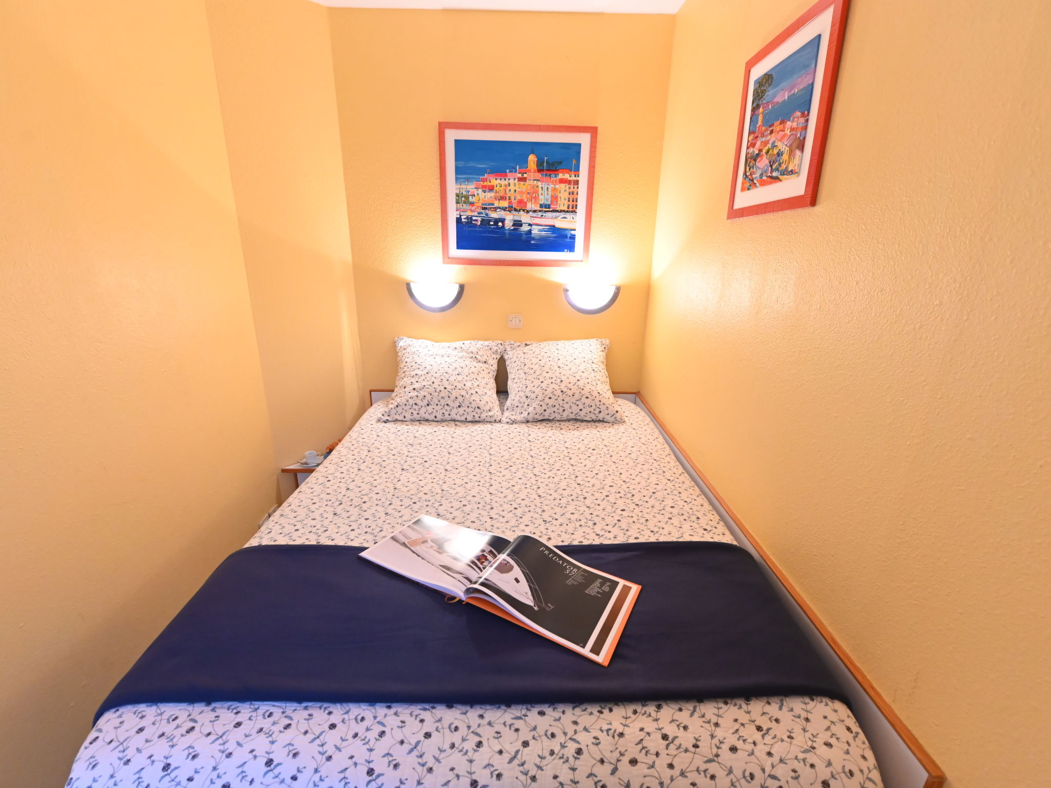 "Le Village ", 2-room apartment 28 m2 on 1st floor. Living room with 2 sofabeds (80 cm, length 190 cm), TV (flat screen), fan. Exit to the terrace. 1 small room with 1 french bed (140 cm, length 190 cm). Kitchenette (oven, dishwasher, 2 induction hot plates, toaster, kettle, microwave, electric coffee machine, Capsules for coffee machine (Nespresso) extra). Bathroom, sep. WC. Electric heating. Terrace 8 m2. Terrace furniture. View of the sea and the swimming pool. Facilities: Internet (WiFi, extra). Parking (1 car). Please note: non-smokers only. 1 small pet/ dog allowed. Smoke alarm. Offer by a private individual according to Art. 155, IV of CGI. FR8553.400.1