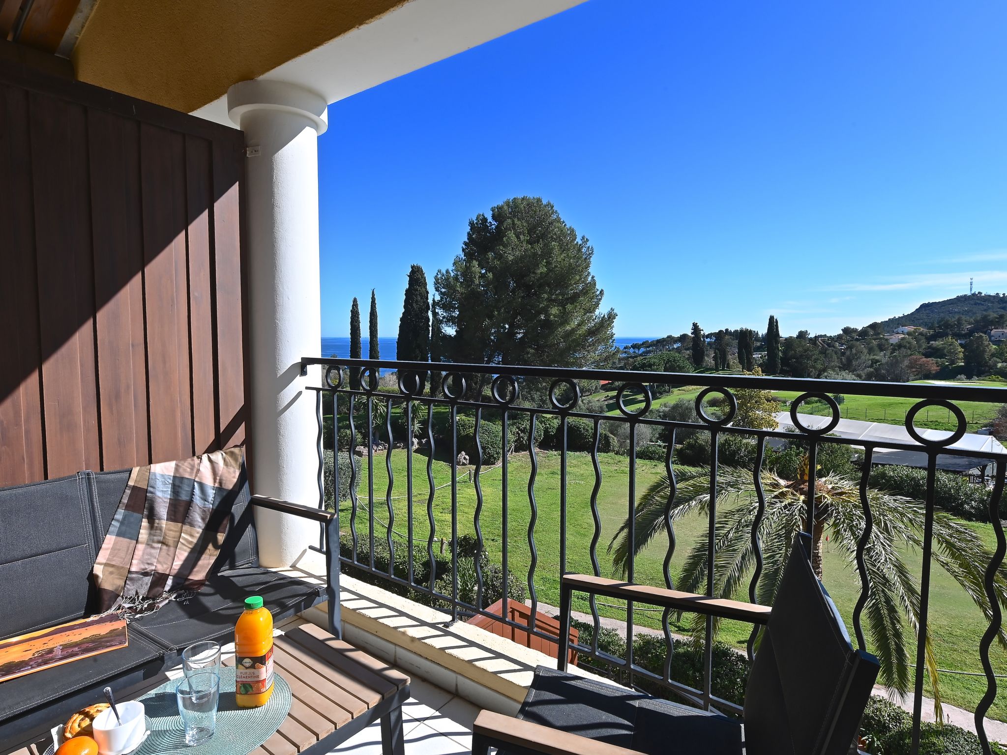 Large resort "Village Cap Estérel - Le Village". On the outskirts, 2 km from the centre of Agay, on a slope, in the residential district, 900 m from the sea, 900 m from the beach, road to cross, on the golf course, in a pedestrian area. For shared use: park 210 ha, 5 swimming pools (seasonal availability: 06.Apr. - 03.Nov.). Children's pool, boccia, children's playground (slide, swing). In the complex: spa area (extra), shopping facilities, laundry (extra). Shop 500 m, grocery, supermarket 6 km, restaurant 500 m, bakery, bus stop "Ligne 21" 300 m, railway station "Saint-Raphaël-Valescure TGV" 9 km, sandy beach "Tiki Plage" 900 m. Marina 1 km, golf course (9 hole), tennis 500 m. Nearby attractions: Anthéor 8 km, Saint-Raphaël 9 km, Fréjus 13 km, Cannes 33 km, Saint-Tropez 50 km, Nice 76 km. Well-known lakes can easily be reached: Lac Saint-Cassien. Hiking paths: Massif de l'Estérel. Please note: car-free holiday complex, no lift. Entertainment in the season. Suitable for families, childminding in the season (extra). Guarded residence. Additional accommodations can be booked. Access to the apartments is via steps, even on the ground floor.