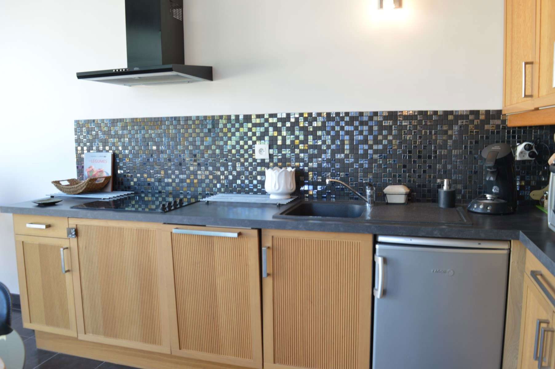 This accommodation consists of an entrance, a living room with a single sofa bed, an equipped kitchen, a bedroom with a double bed, a shower room with toilet.