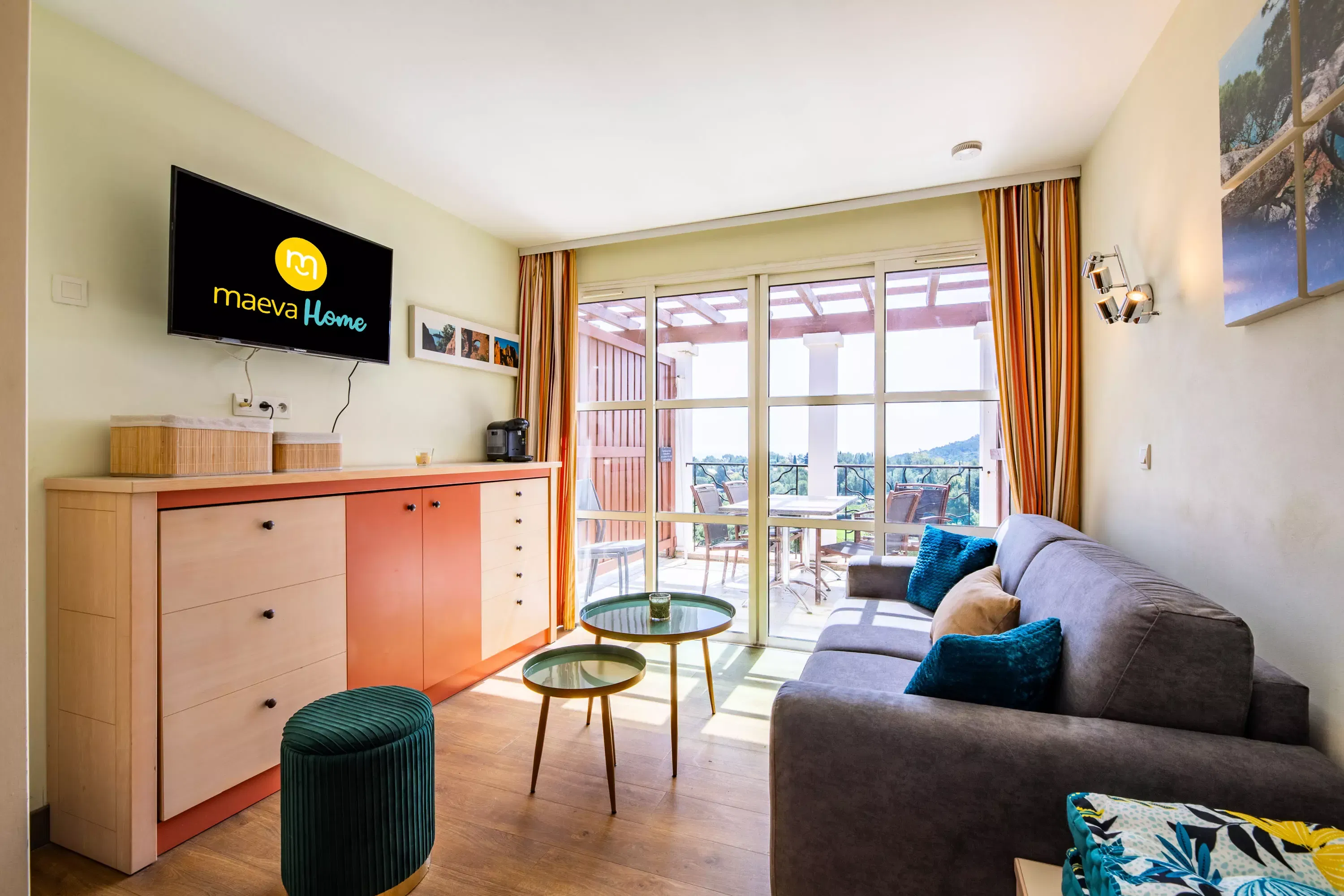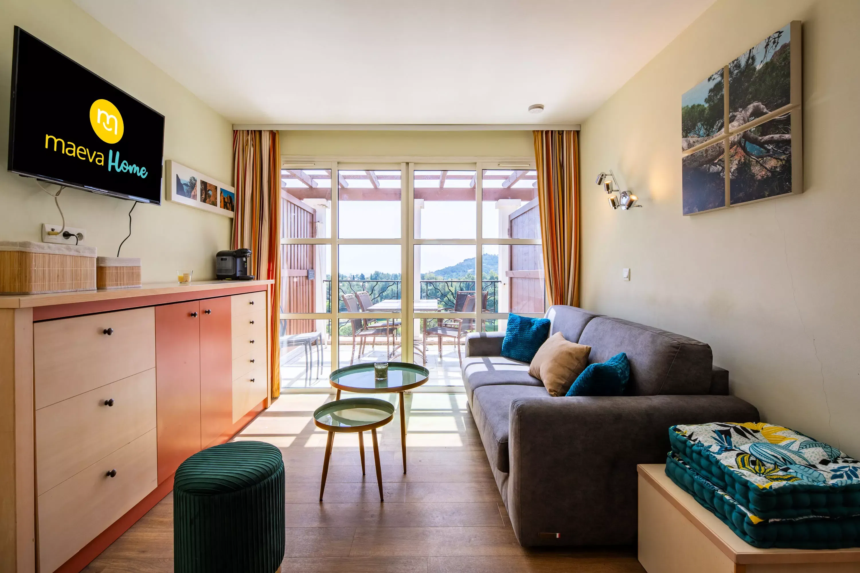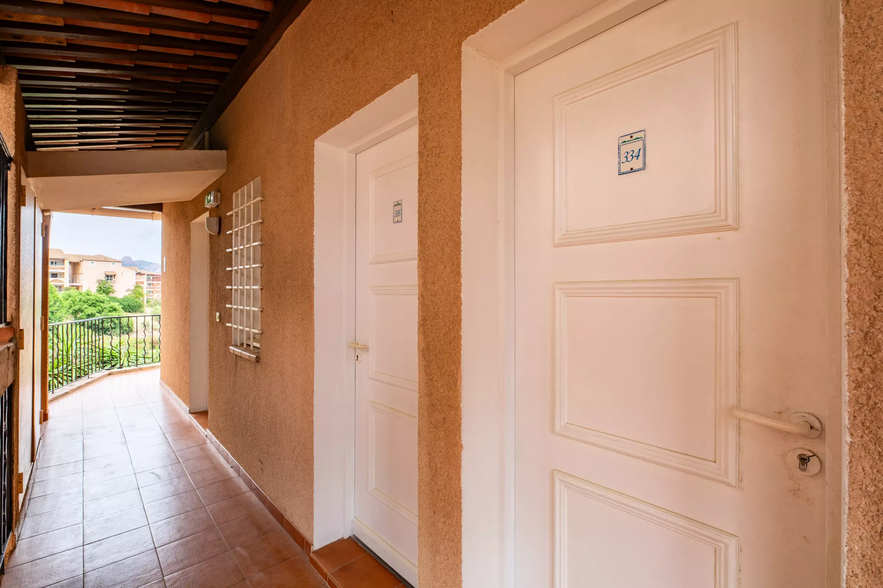 Bedroom 1 (upstairs): 1 double bed. Adjoining solarium, not overlooked, with magnificent views of the sea, the golf course and the Dramont.
