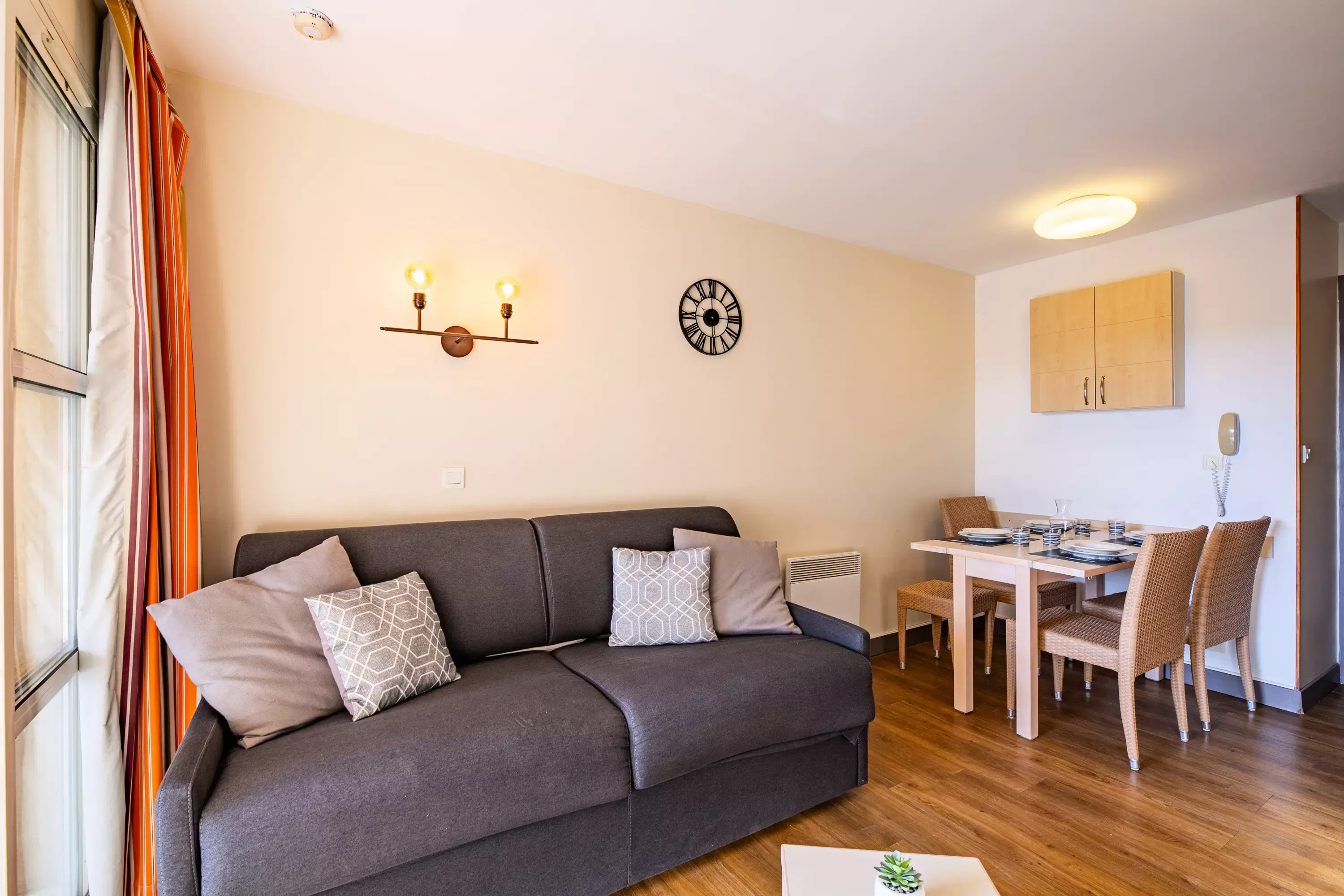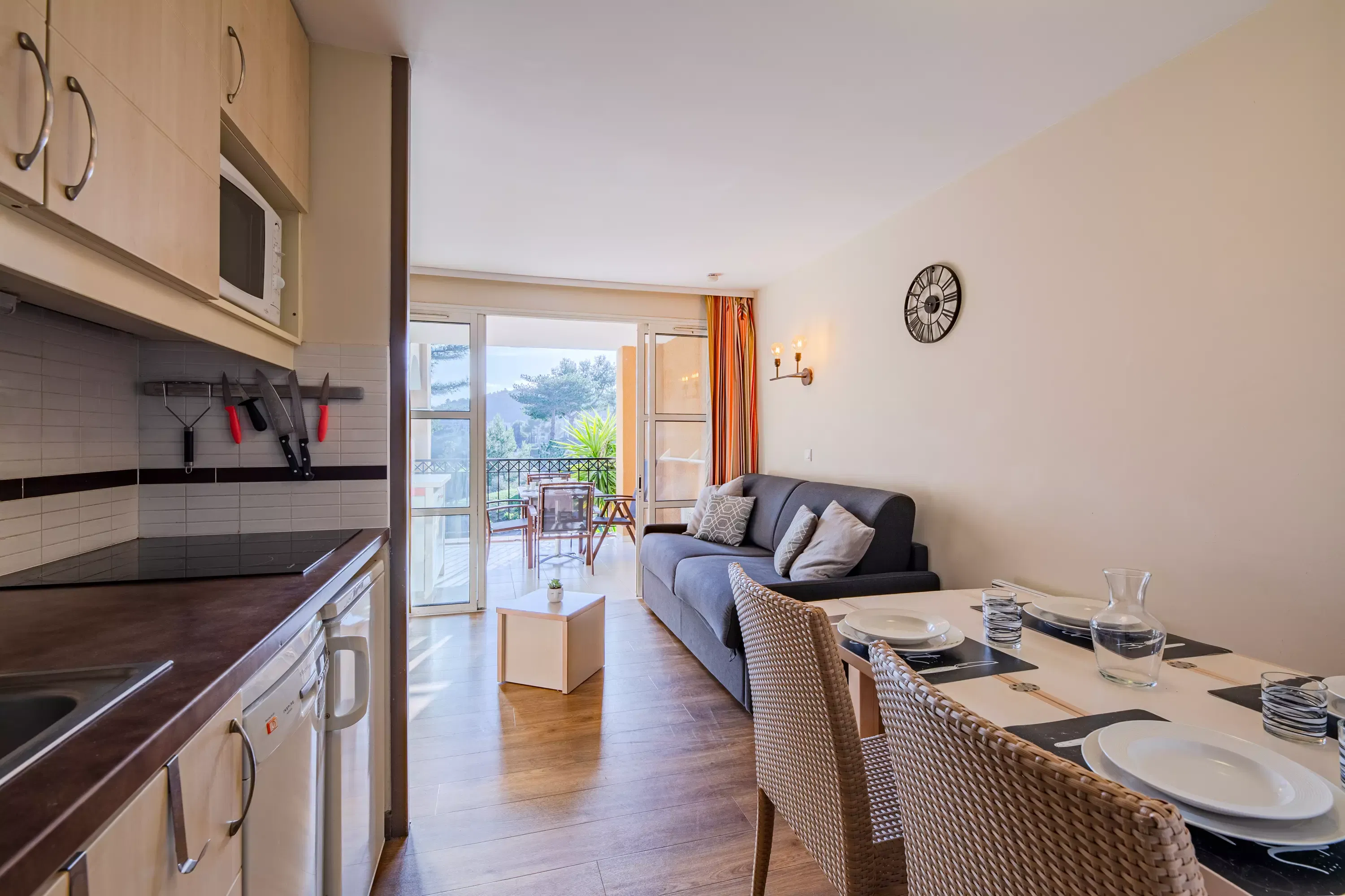 The advantages of your rental: Located on the 1st floor, this west-facing studio enjoys a prime location in the village center, with shops and activities less than 100m away and the sea between 100 and 500m away. Its covered west-facing terrace, with an outdoor table, offers a view of the village, perfect for enjoying the evenings in a convivial atmosphere. It features a fully equipped open-plan kitchen (ceramic hob, microwave, dishwasher, Nespresso machine) as well as a dedicated outdoor parking space.