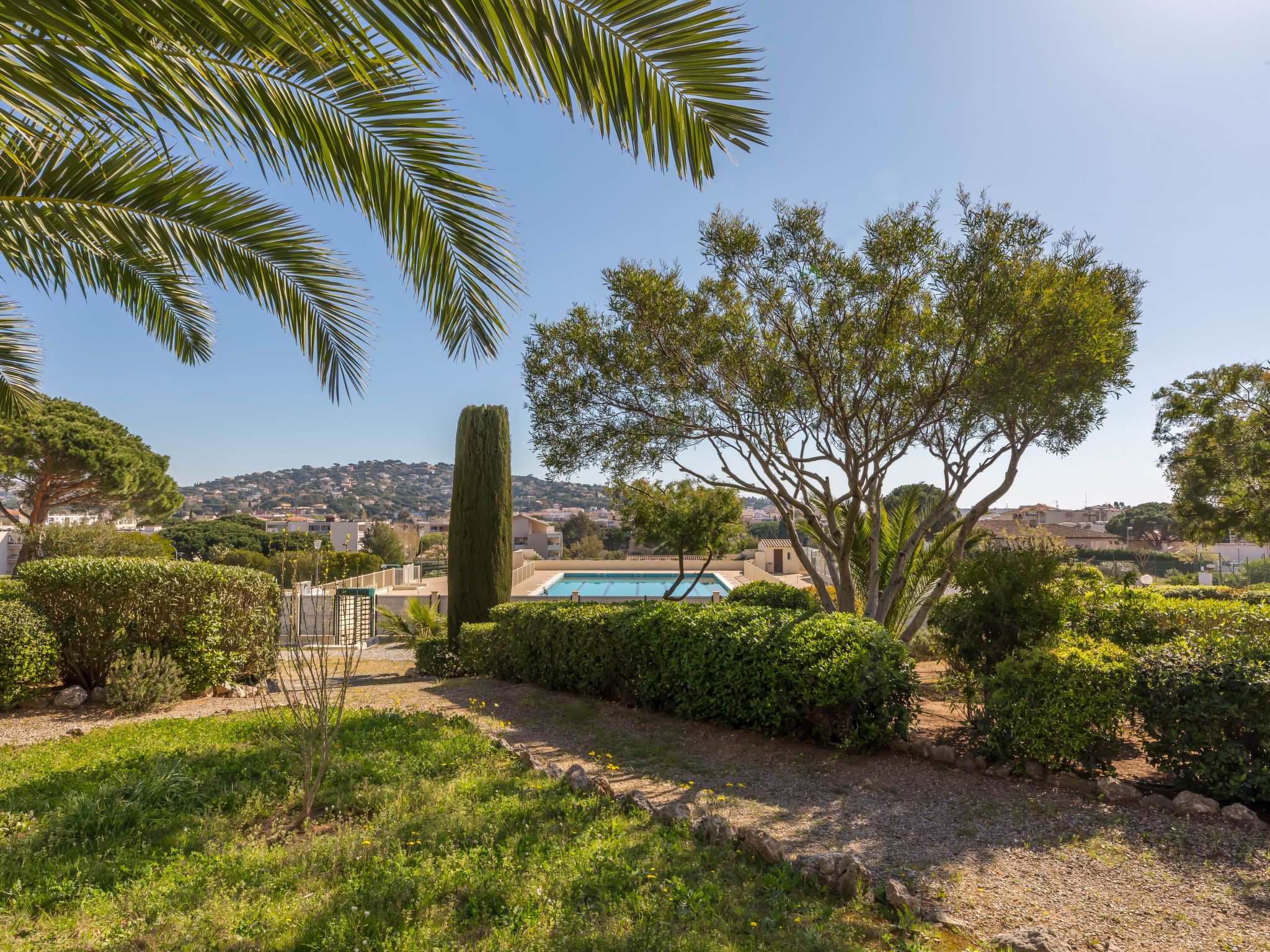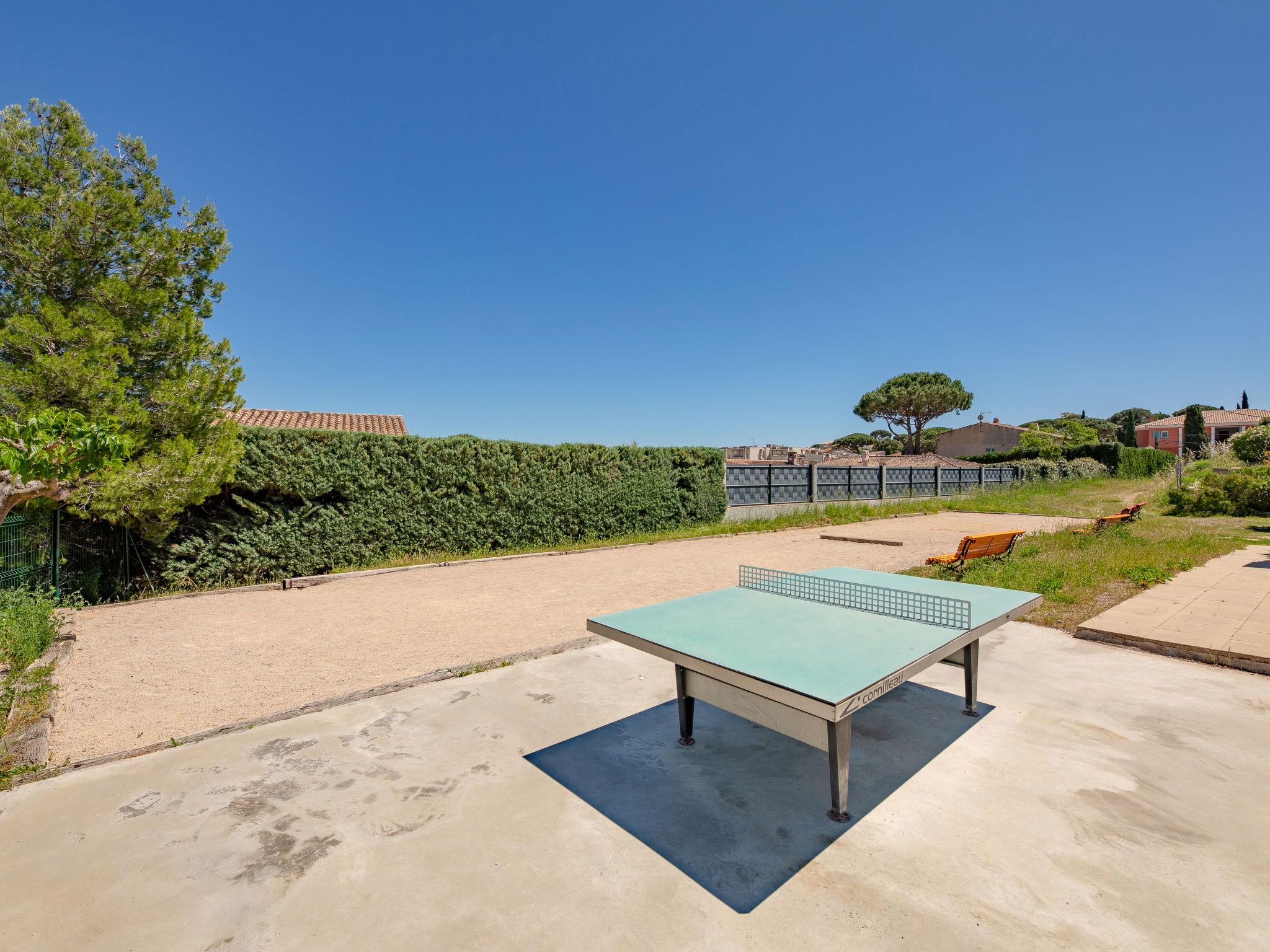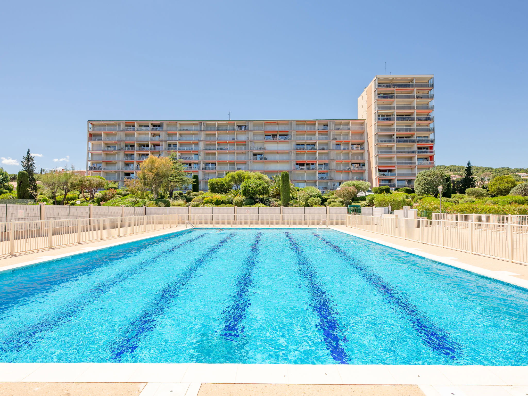 Animals are prohibited in the condominium, the garden and the swimming pool. Elevators stop at 1/2 floors. Residence "Les Côteaux du Préconil". In the resort 800 m from the centre of Sainte Maxime, in a sunny position, 800 m from the sea, 800 m from the beach. For shared use: large, well-kept garden, swimming pool angular (25 x 10 m, depth 200 - 120 cm, seasonal availability: 15.Jun. - 30.Sep.). Children's pool, outdoor shower, tennis, boccia. In the complex: lift, storage room for bicycles. Parking (limited number of spaces). E-charging station. Shop 500 m, grocery 450 m, supermarket 1.2 km, bus stop 1 km, railway station "TGV Saint-Raphaël" 20 km, sandy beach "Centre ville" 800 m, thermal baths "Thalassothérapie Les Issambres" 7 km. Sports harbour 1.2 km, golf course (18 hole) 5 km, sailing school 1 km, tennis 50 m. Nearby attractions: Aqualand waterpark 2.5 km, St Tropez,Ramatuelle 15 km, Port Grimaud 8 km, Gorges du Verdon 75 km, Navette / shuttle boat St-Tropez 15min 1.2 km. Hiking paths: Massif des Maures 5 km, Massif de l'Estérel 20 km. Please note: residence with electric gates. Airfield 60 km from the property.