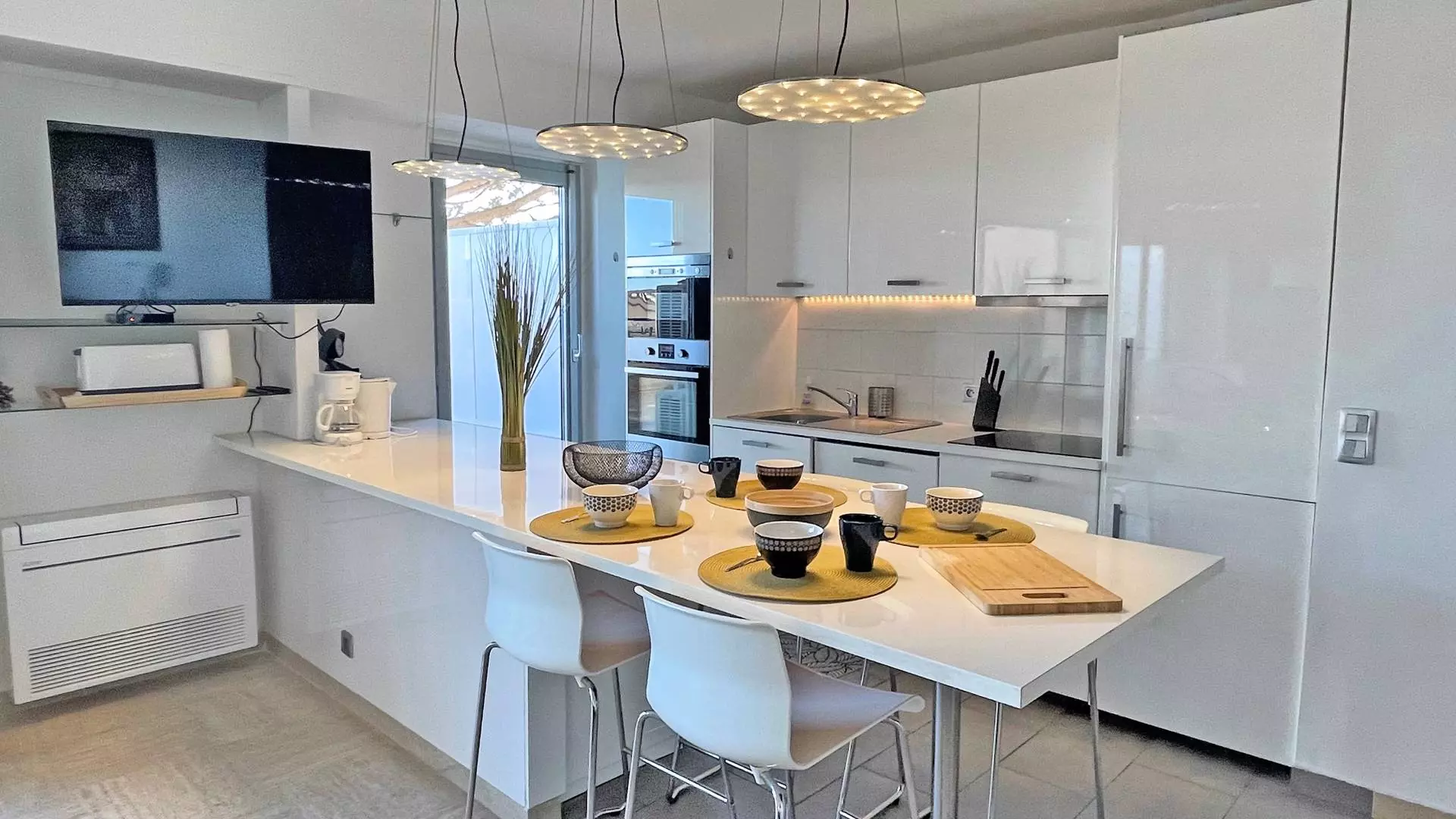 Magnificent duplex apartment, equipped with 2 bedrooms for 5 people with a beautiful sea view, ideally in the city center and next to the beach.