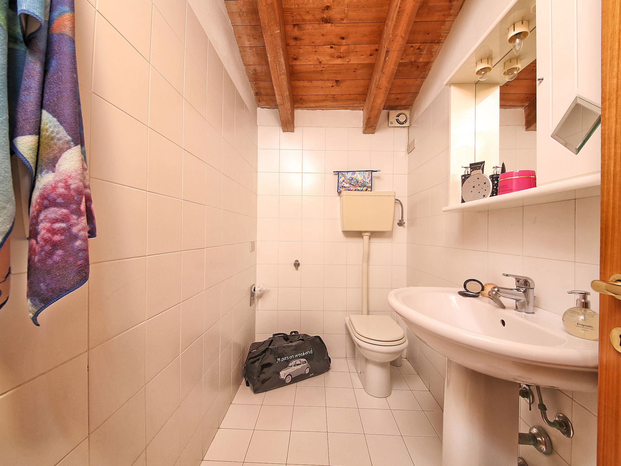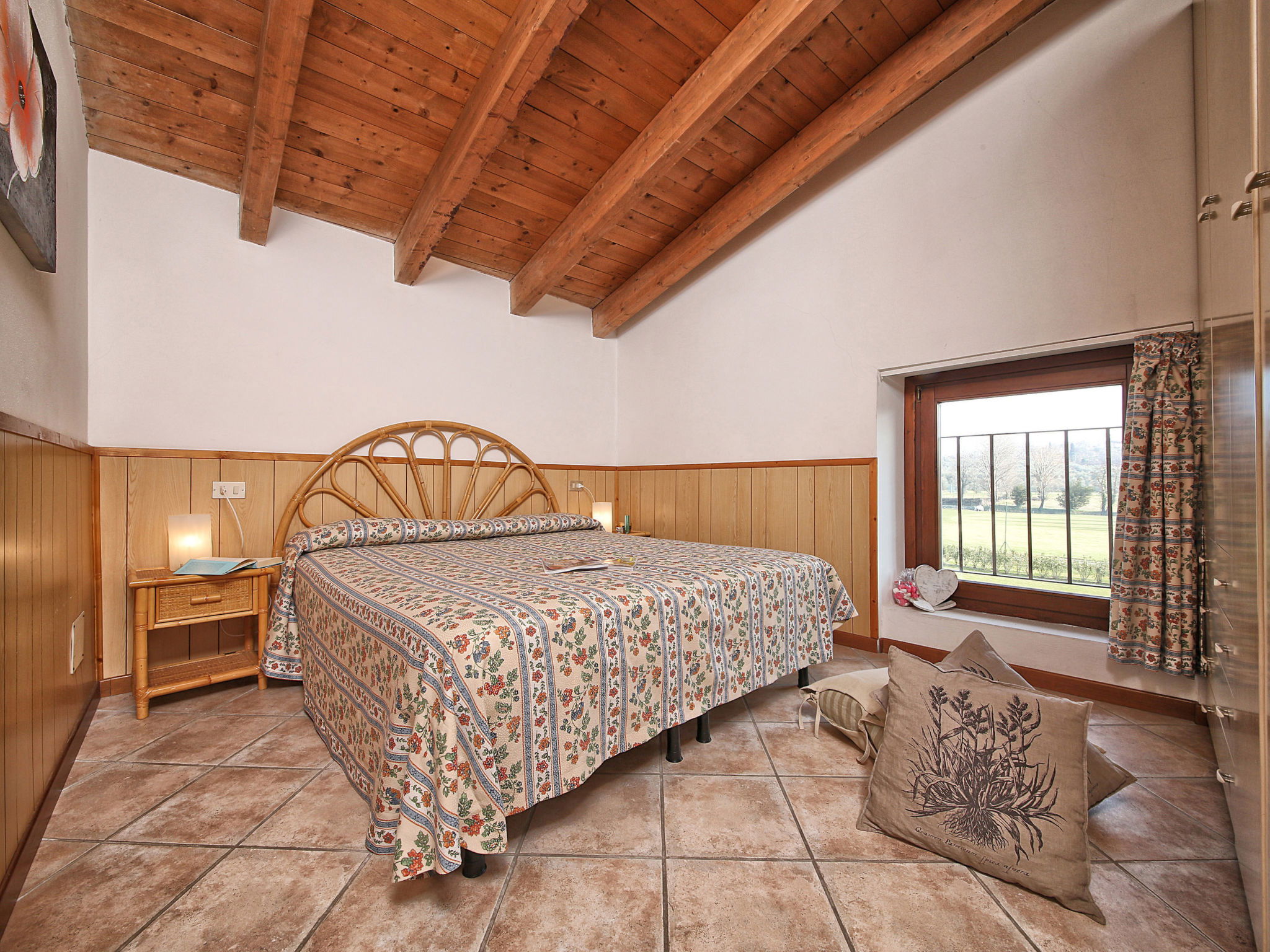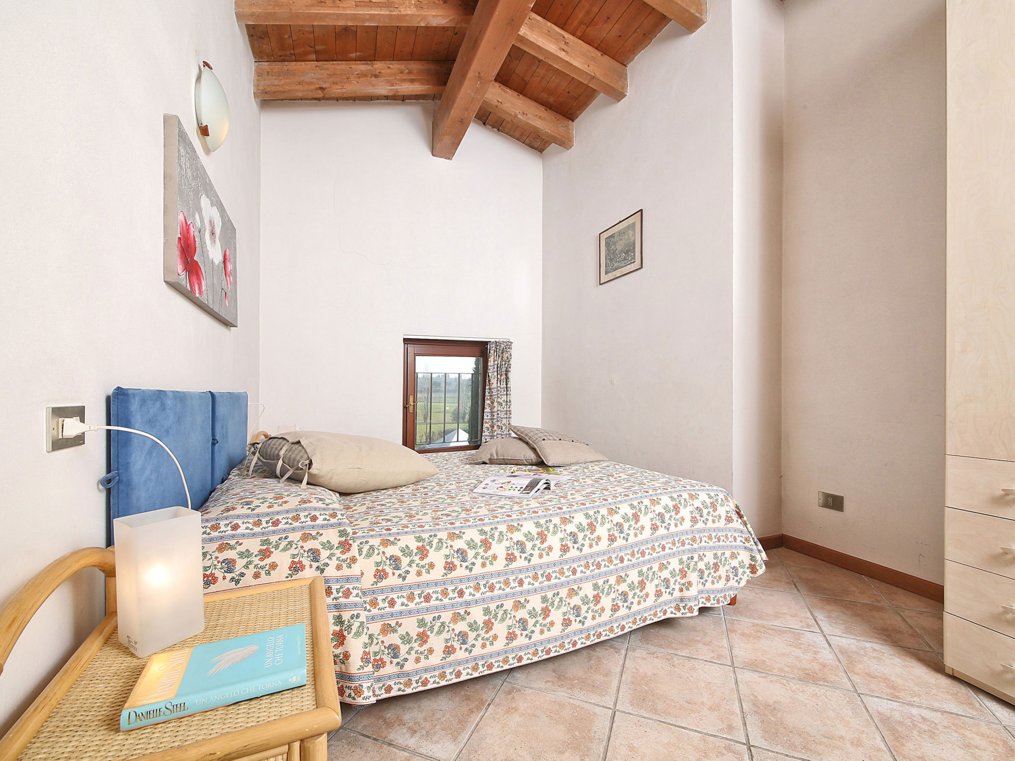 "Colombaro Vecchio", 4-room apartment 100 m2 on 2nd floor. Comfortable and rustic furnishings: living/sleeping room with dining table and satellite TV. 1 double bedroom. 2 rooms, each room with 2 beds. Kitchenette (dishwasher, 4 gas rings, microwave, freezer, electric coffee machine). Shower/bidet/WC, sep. WC. Gas heating, air-conditioning (extra). View of the garden. Facilities: safe. Internet (WiFi, free). Parking, garage on the property. Maximum 1 pet/ dog allowed. IT017170B5OY8KGT49