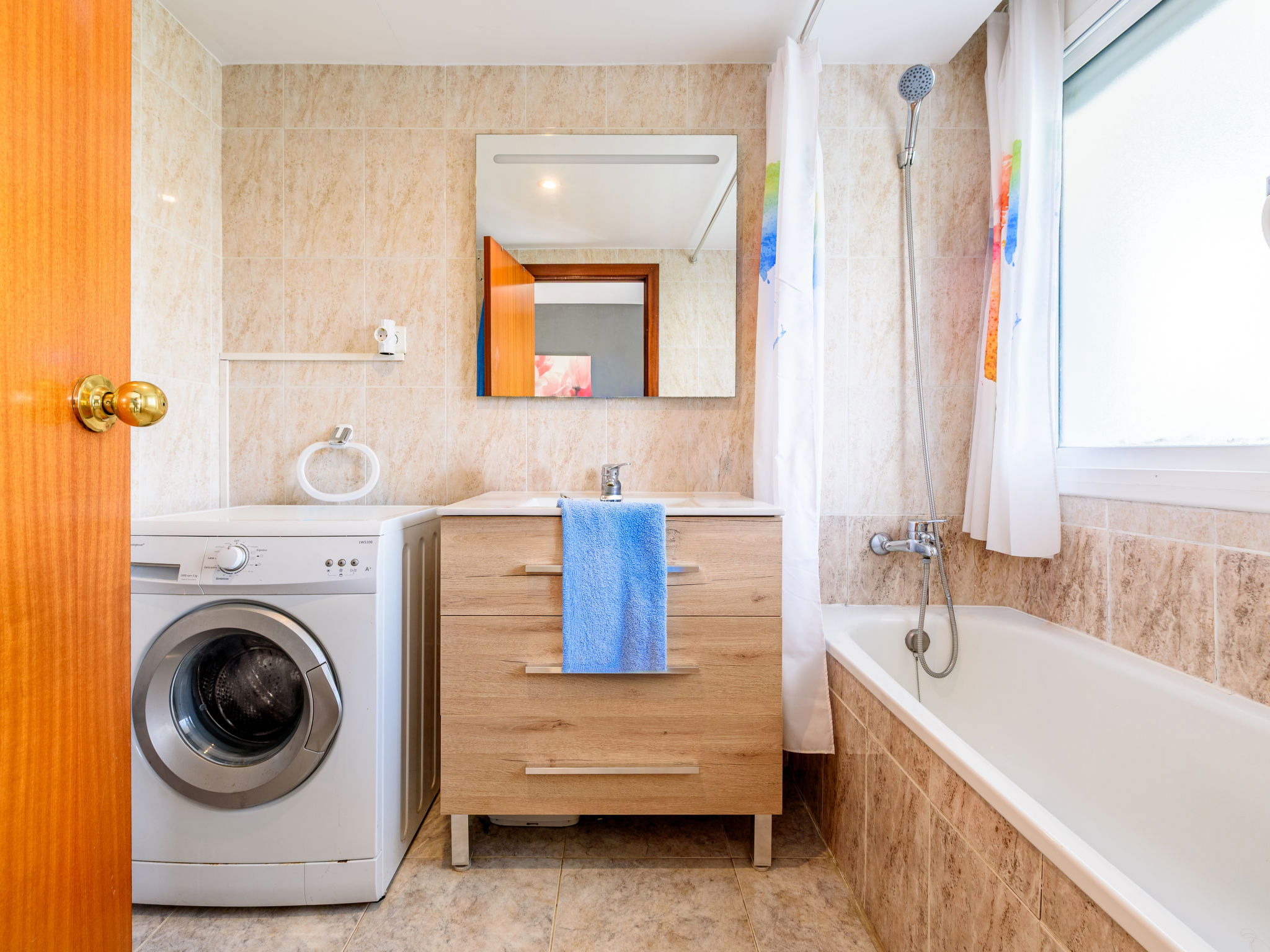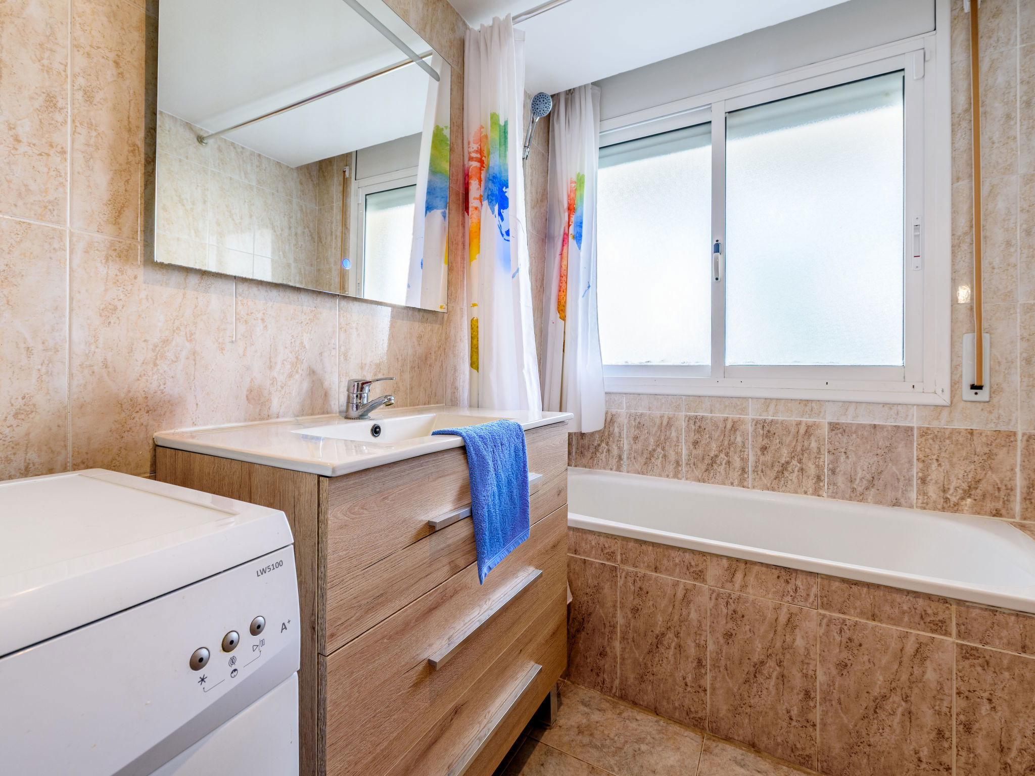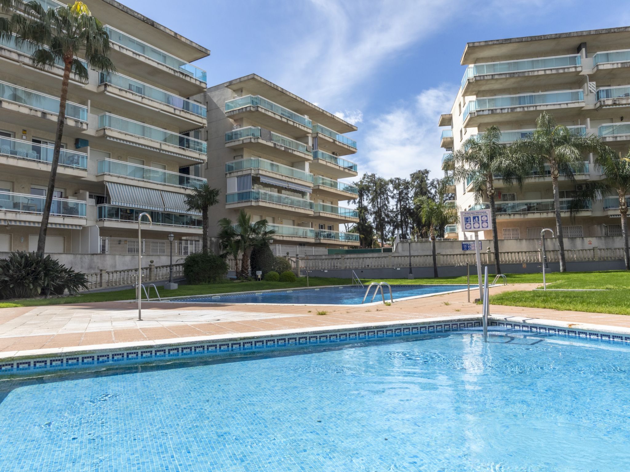 Salou: Cosy, comfortable apartment block "Village Park", 4 storeys. In a central, sunny position, 900 m from the sea, 900 m from the beach. For shared use: swimming pool (20 x 10 m, depth 80 - 200 cm, seasonal availability: 01.May. - 15.Oct. and 01.Jun. - 30.Sep. pool opening hours: 10:00-20:00 and 09:00-23:00). In the house: lift. Shop 250 m, supermarket 300 m, restaurant, bar 150 m, bus stop "PLaza Europa" 300 m, sandy beach 900 m. Golf course (18 hole) 3 km. Nearby attractions: Parque temático Portaventura 2 km, Parque aquático Aquapolis 5 km, Spa Aquum 5 km, Karting 2 km, Paintball 8 km. Please note: entertainment in the season. Object suitable for 4 adults. The owner does not accept any youth groups.