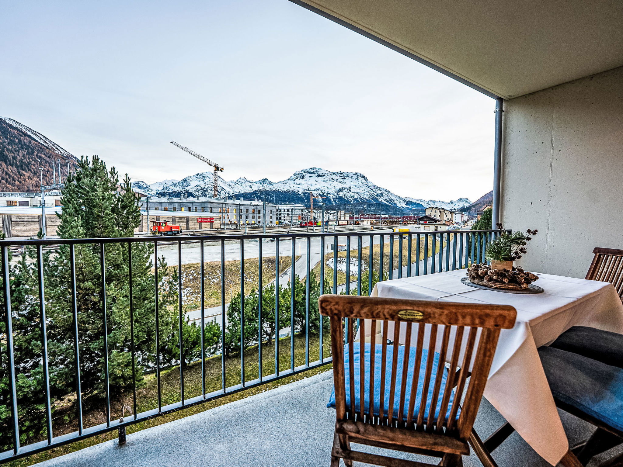 Samedan: Comfortable apartment house "Chesa Promulins", 4 storeys. Above Bahnhof Samedan, in the residential district. In the house: lift, storage room for skis, washing machine, tumble dryer (for shared use, extra), drying room. Parking, communal covered parking. Grocery 500 m, bar, bus stop 400 m, railway station "Samedan" 400 m. Indoor tennis centre 7 km, minigolf 6 km, riding stable 6 km, walking paths from the house 500 m, ski lift 1 km, ski school 2.5 km, cross country ski track 1 km, ice rink 1.5 km. Nearby attractions: Chesa Planta in Samedan 800 m, Segantini Museum St. Moritz 6 km, Nietsche Haus in Sils-Maria 16 km, Olympic Bob Run St. Moritz 5.5 km. Well-known ski regions can easily be reached: Coviglia - Piz Nair 2.6 km, Corvatsch - Furtschellas 14 km, Diavolezza - Lagalb 18 km. Well-known lakes can easily be reached: St. Moritzer See 7 km, Silvaplana See 13 km, Silser See 17 km. Hiking paths: Corviglia - Piz Nair, Muottas Muragl, Val Bever & Val Rosegg.