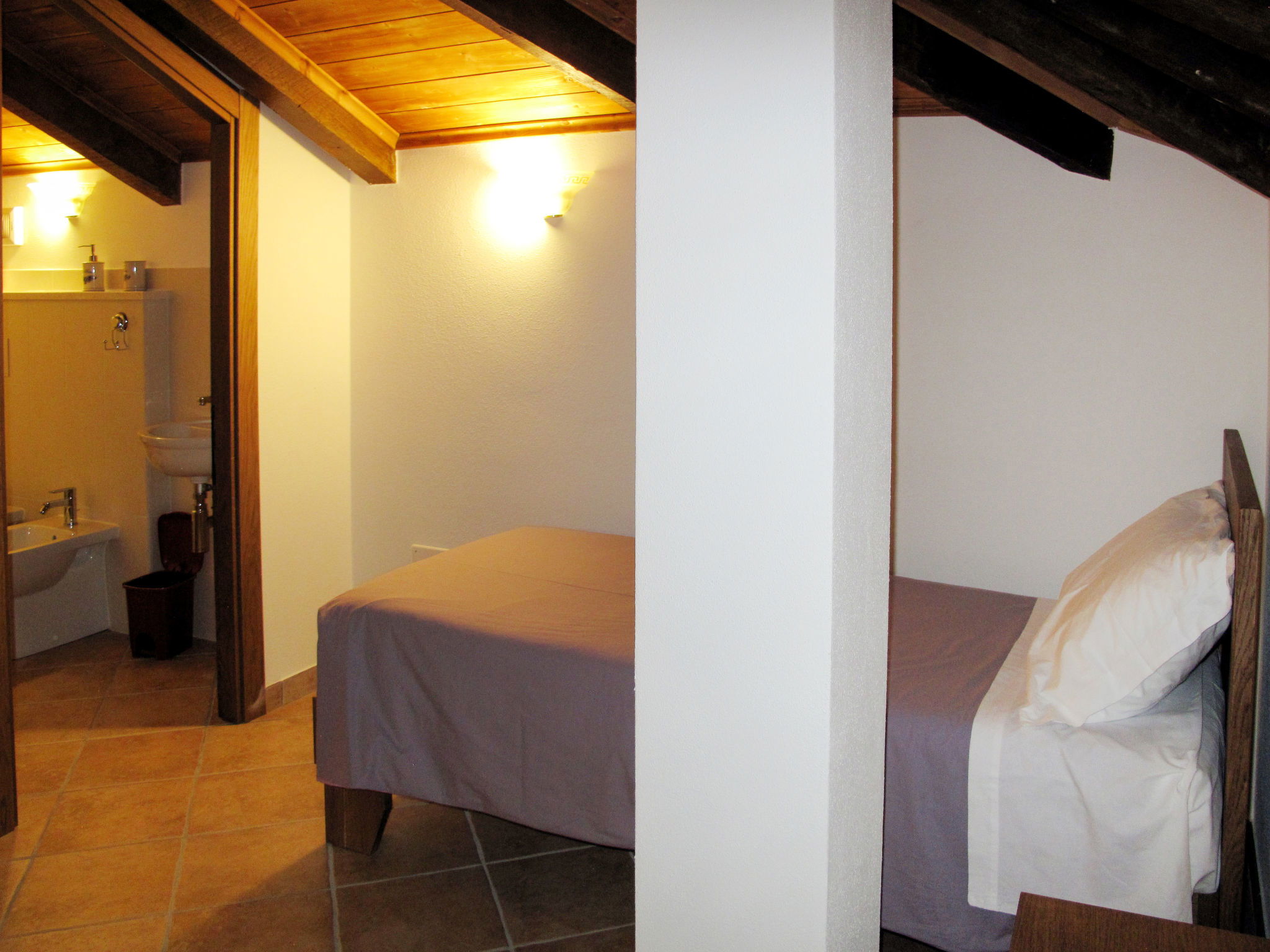 "Quercia ", 4-room apartment 78 m2 on 2 levels, on the upper floor. Beautiful and cosy furnishings: living/sleeping room with 1 double sofabed (160 cm), dining table and satellite TV. Exit to the balcony. 1 room with 1 french bed (160 cm). 1 room with 1 bed (130 cm). Open kitchen (oven, dishwasher, 4 gas rings, kettle, freezer, electric coffee machine). Shower/bidet/WC. Heating available only from 01.10. to 15.05. Top floor: 1 room with sloping ceilings with rooflight with 1 bed (80 cm), separate WC. Heating. Large balcony. Balcony furniture. Beautiful panoramic view of the mountains and the countryside. Facilities: washing machine, iron, children's high chair, baby cot. Internet (WiFi, free). Please note: apartment street side. Non-smokers only. Maximum 1 pet/ dog allowed. IT009056B452IYH6GR