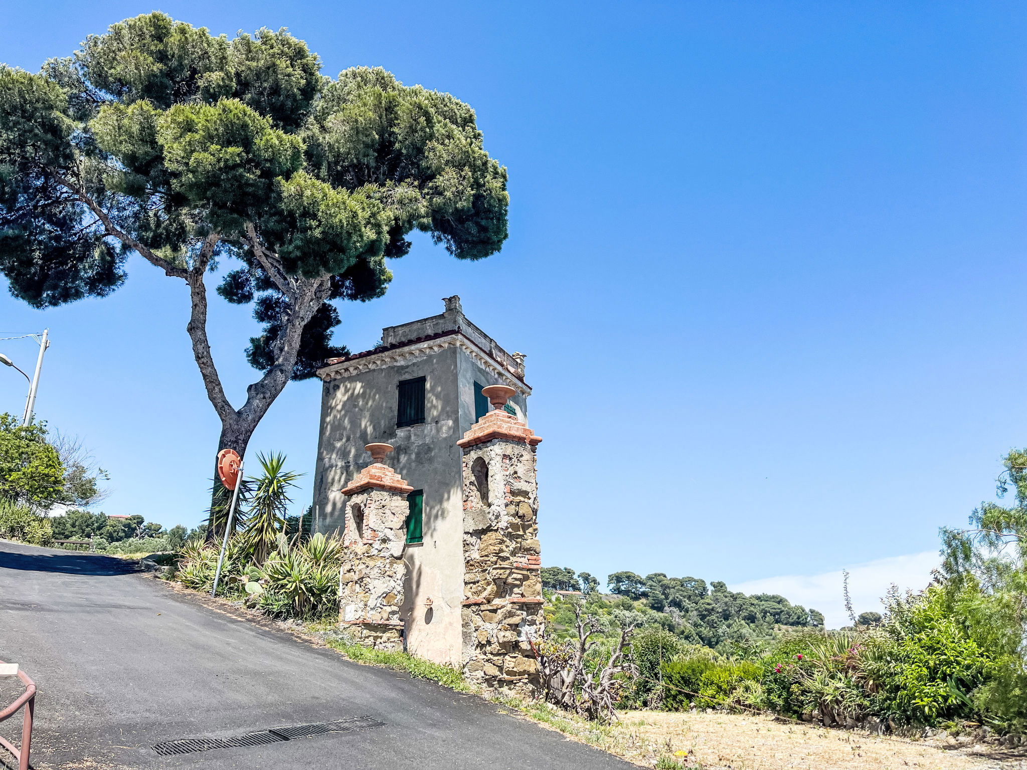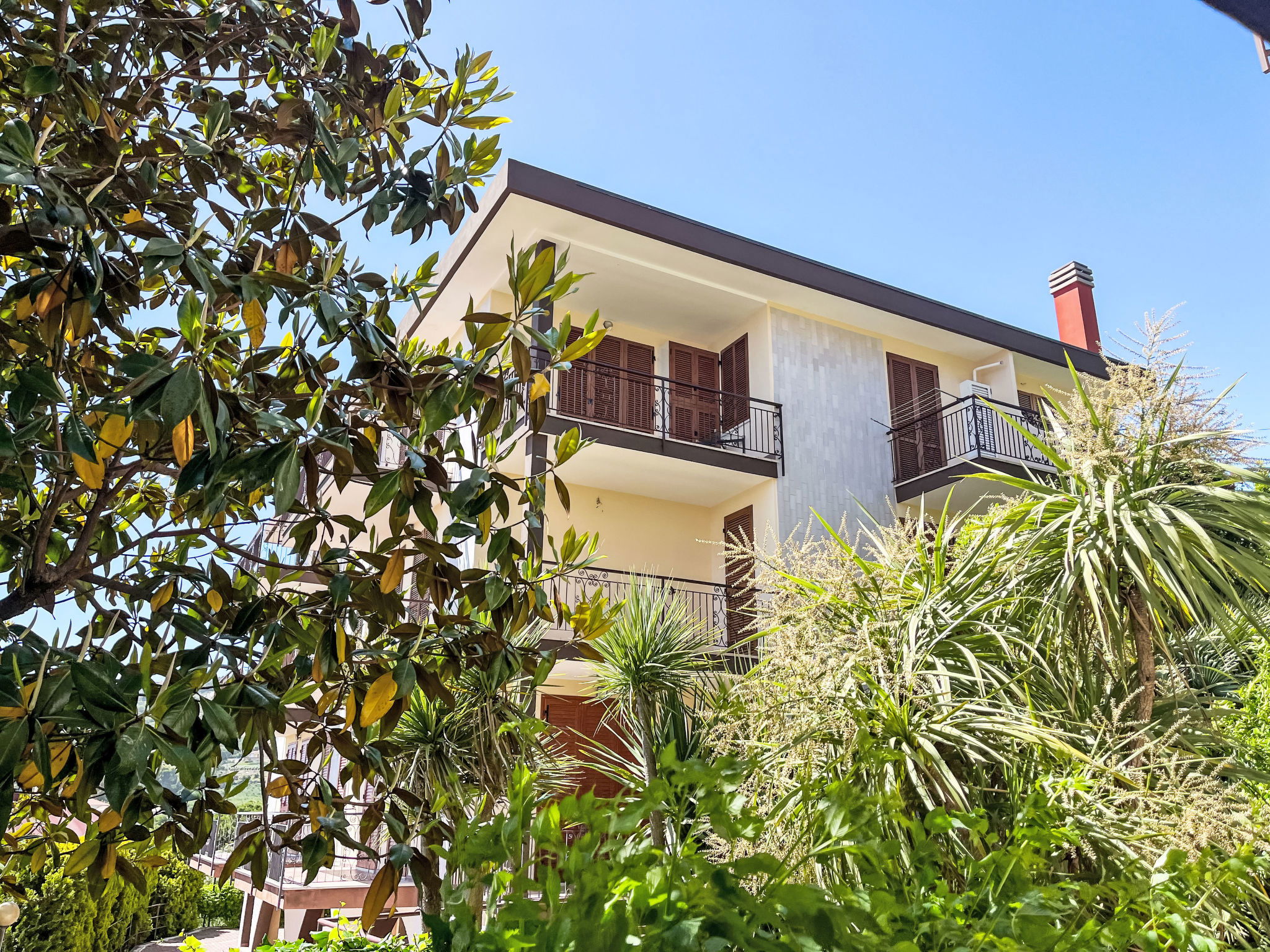 Large, beautiful resort, 3 storeys, renovated, surrounded by trees and meadows. On the outskirts Costarainera, outside the resort, 1.5 km from the centre of San Lorenzo al Mare, in a sunny position on top of a hill, in the residential district, traffic calmed area, 400 m from the sea. For shared use: natural state property, swimming pool fenced (30 x 15 m, depth 200 - 500 cm, seasonal availability: 15.Jun. - 30.Sep. pool opening hours: 09:00-13:00 and 15:00-19:00) with salt water and salt-electrolysis pool-cleaning system. Children's pool, outdoor shower, tennis (1 x hard court), floodlit (extra), boccia. In the house: lift, storage room for bicycles. Steep motor access to 50 m from the house. Public parking. Grocery 2 km, supermarket 2 km, shopping centre 2 km, restaurant 2 km, bar 500 m, bakery 2 km, café 2 km, bicycle rental 2 km, bus stop 4.1 km, sandy beach "San Lorenzo al Mare" 400 m. Tennis 20 m, cycle lane 2 km. Nearby attractions: Radweg auf der alten Bahnlinie am Meer 400 m. Obligation to wear bathing caps.