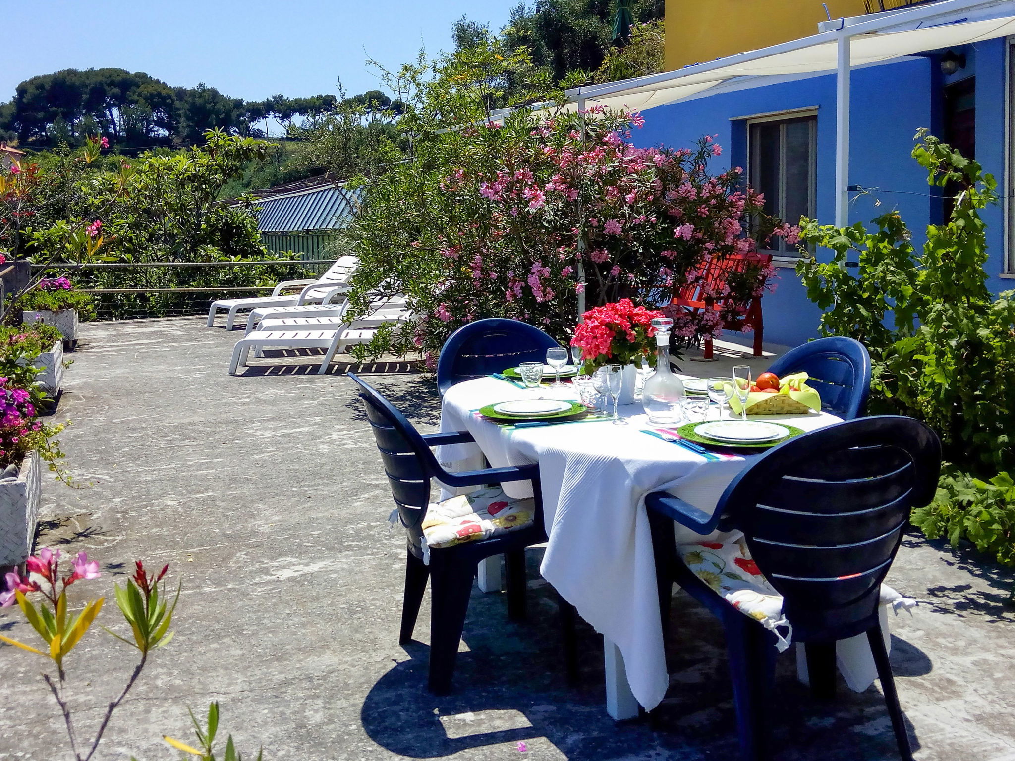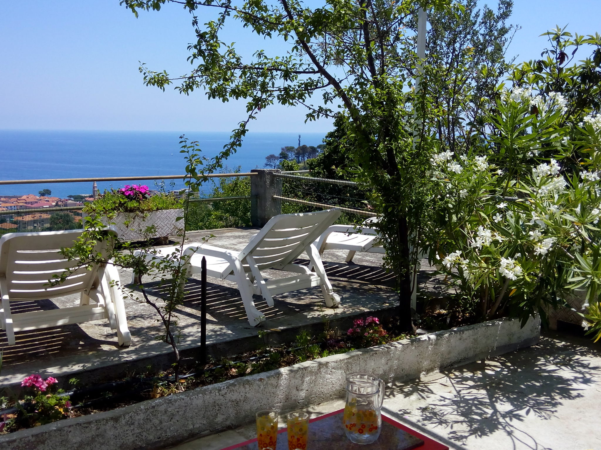 "Ketty ", 4-room apartment 70 m2, on the ground floor. Bright, practical furnishings: living/dining room with dining table and satellite TV. Exit to the terrace. 1 room with 1 french bed (160 cm). Walk-through room with 1 french bed (160 cm). Interconnecting room with 1 bed (80 cm), 1 pull-out bed and shower/WC. Open kitchen (mini-oven, oven, dishwasher, 4 gas rings, kettle, freezer, electric coffee machine) with small dining table. Shower/WC. Gas heating. Large terrace 110 m2 partly roofed. Terrace furniture, barbecue, deck chairs. Marvellous view of the sea, the bay and the town. Facilities: washing machine, iron. Internet (WiFi, free). Parking (2 cars). Please note: maximum 2 pets/ dogs allowed. Private entrance. IT008024C2UND3FWTX