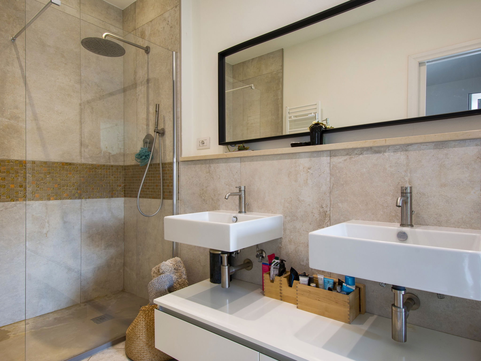 "Isabella", 4-room maisonette 120 m2. Modern and cosy furnishings: living/dining room with 1 double sofabed, dining table, digital TV and air conditioning. Exit to the terrace. Open kitchen (dishwasher, 4 gas rings, toaster, microwave, freezer, electric coffee machine). Bathroom, bidet. Upper floor: 1 double bedroom with air conditioning. Exit to the terrace. 1 room with 1 french bed. Shower/bidet/WC. Heating. Heating available only from 15.11. to 15.04. Terrace furniture. Beautiful view of the countryside. Facilities: washing machine, dryer, mosquito net, children's high chair. Internet (WiFi). Maximum 1 pet/ dog allowed.