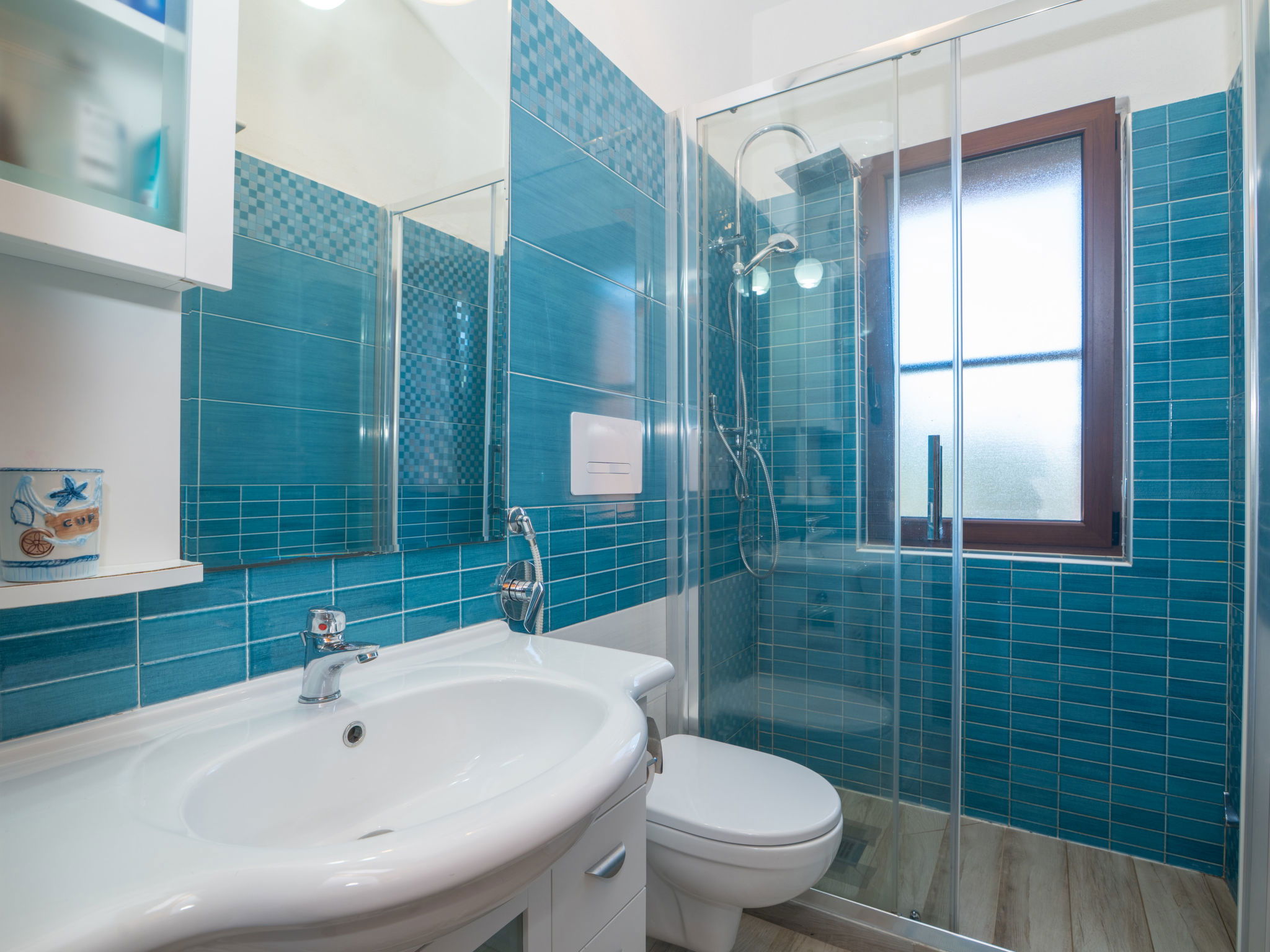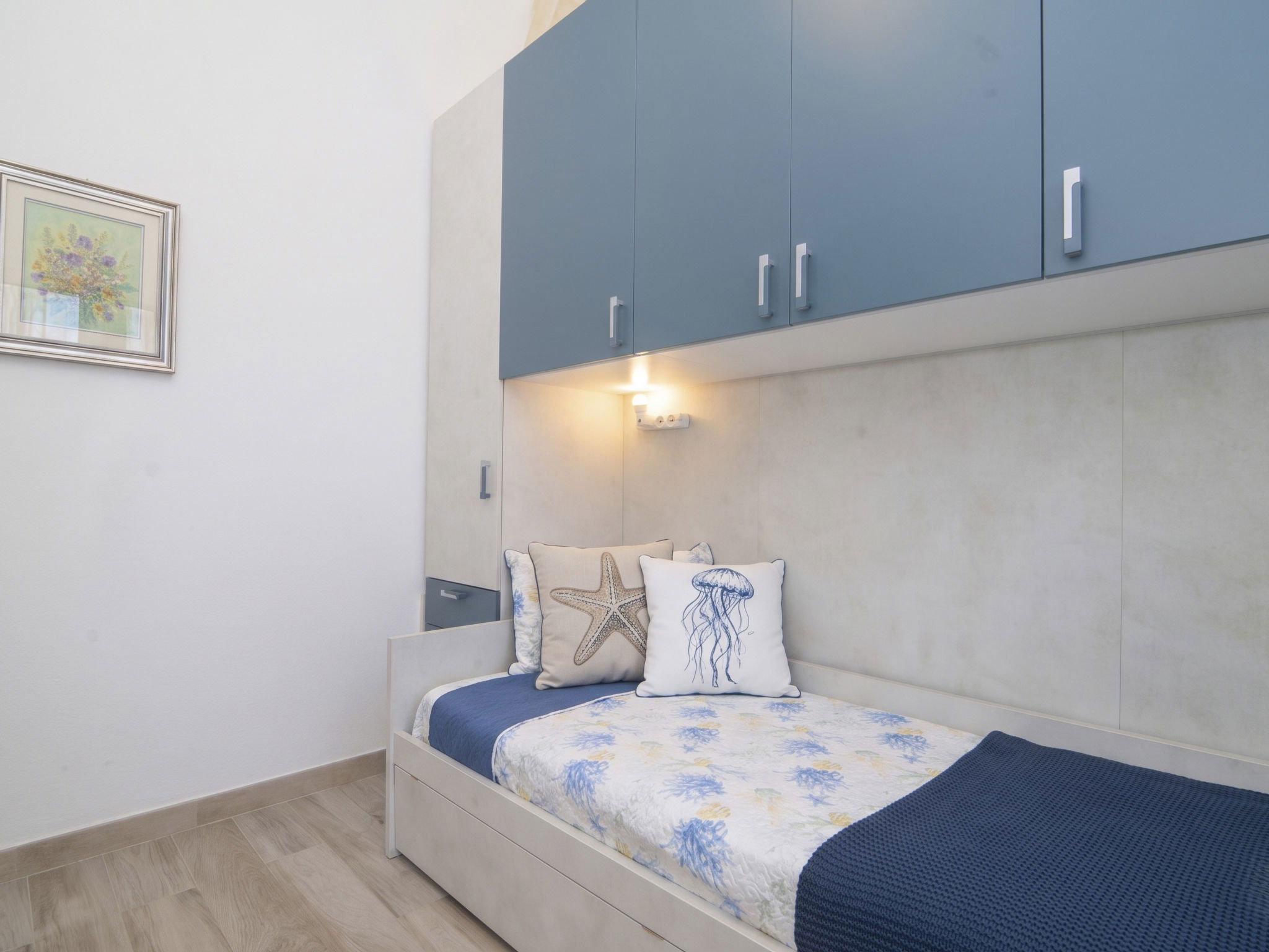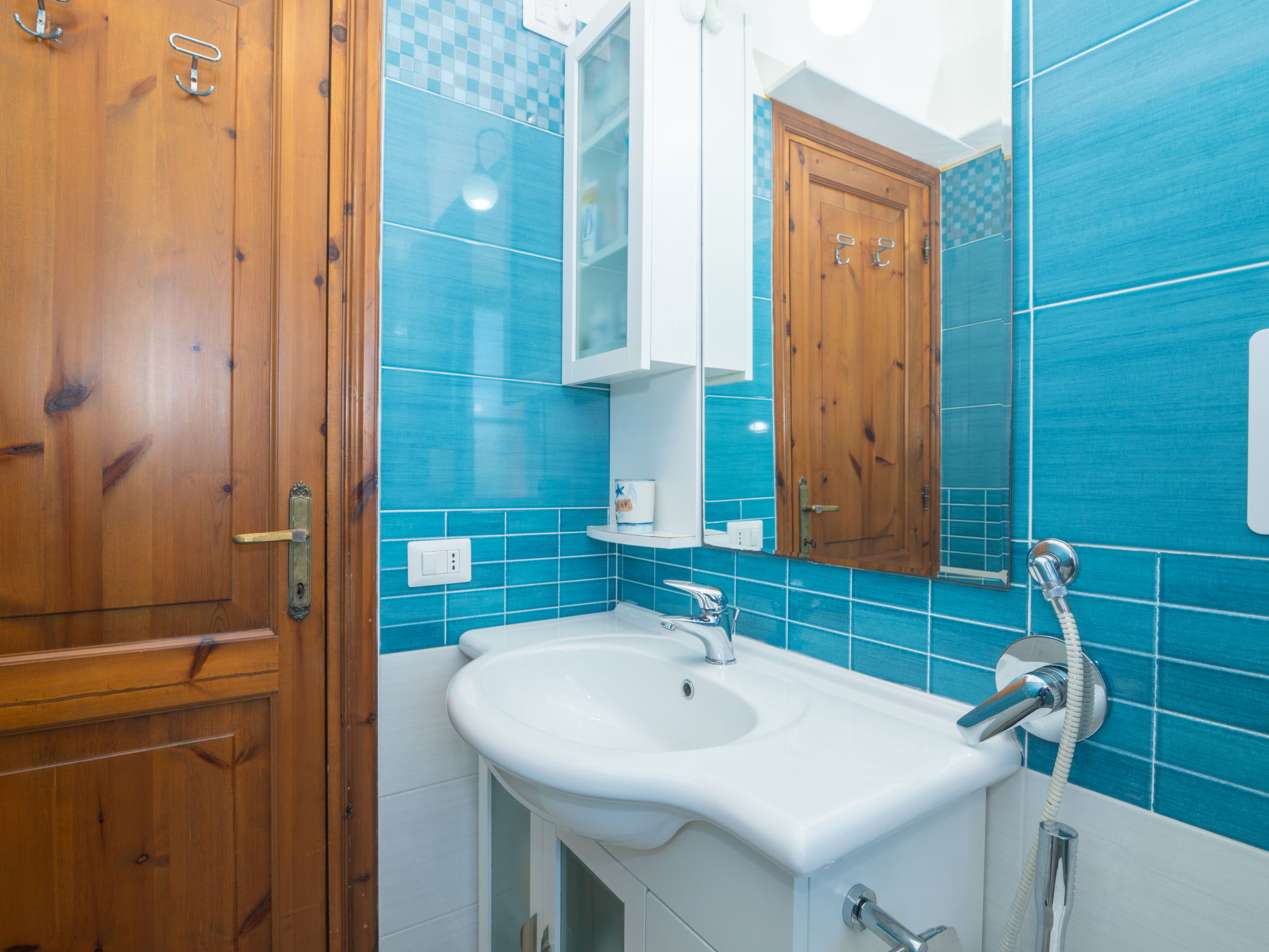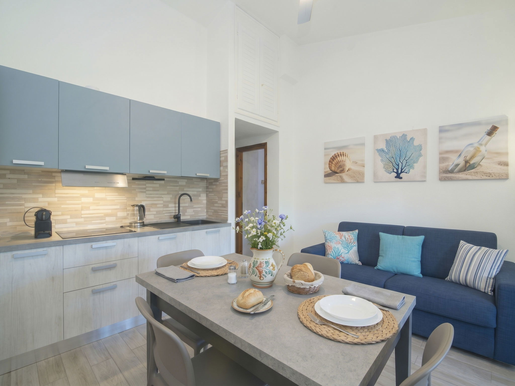 "Perla San Teo", 3-room apartment 54 m2, on the upper floor. Comfortable and cosy furnishings: living/dining room with 1 sofabed and satellite TV (flat screen), air conditioning. Exit to the terrace. 1 room with 1 fold-away bed. 1 room with 1 double bed. Open kitchen (oven, dishwasher, 4 induction hot plates, toaster, kettle, microwave, electric coffee machine). Shower/bidet/WC. Air-conditioning, forced-air heating. Heating not available in all rooms. Terrace roofed. Terrace furniture. Facilities: washing machine, iron, hair dryer. Internet (WiFi, free). Parking space n A4 (1 car). Maximum 1 pet/ dog allowed. IT090092C2000U3382