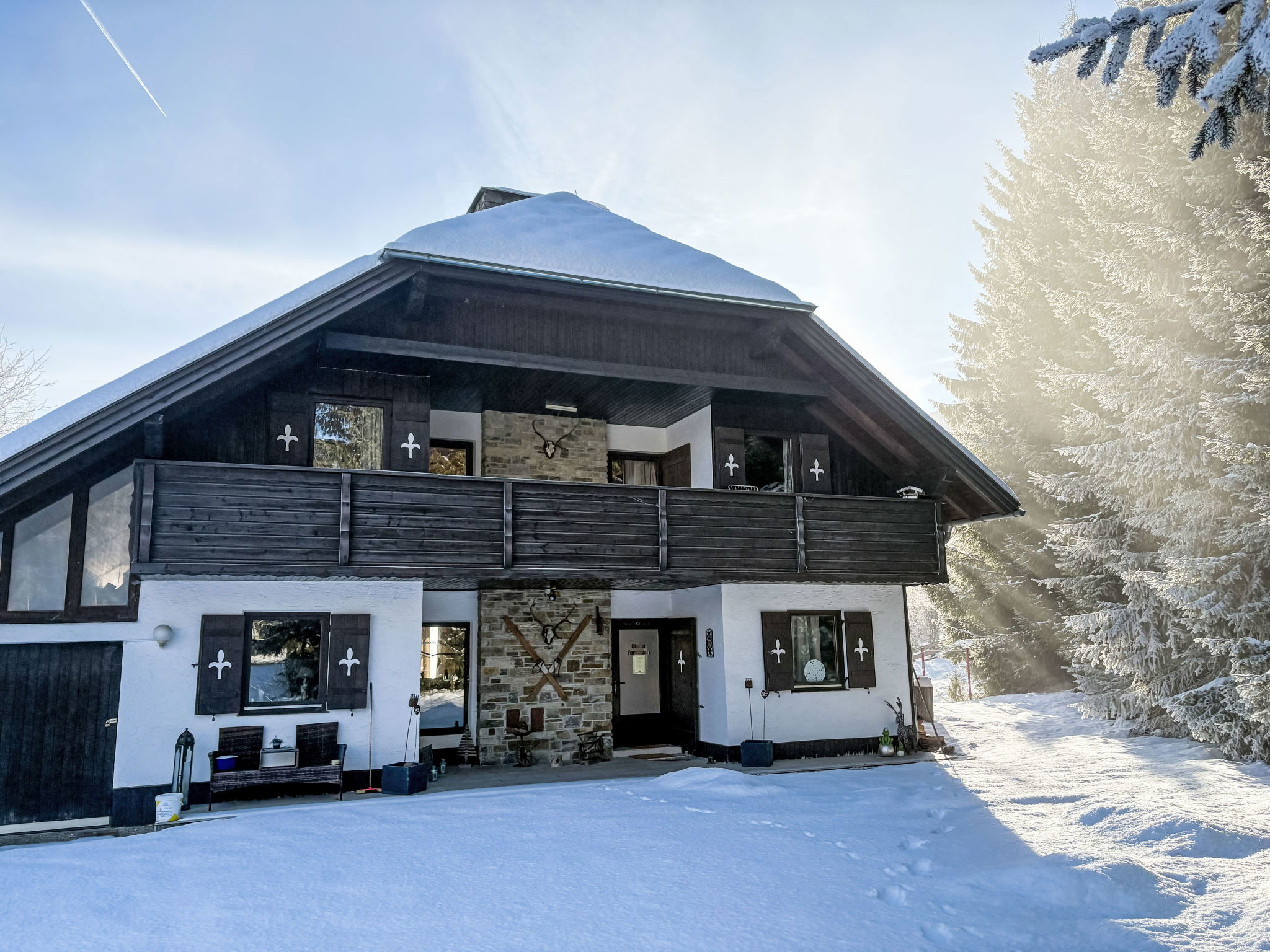 "Silvia", 3-room apartment 70 m2, on the upper floor. Comfortable and wooden furniture furnishings: 2 double bedrooms. Living/dining room with open-hearth fireplace, dining table, TV and flat screen. Open kitchen (oven, dishwasher, 4 ceramic glass hob hotplates, toaster, kettle, electric coffee machine). Sep. WC, bath/shower/WC. Electric heating. Comfortable furnishings in the country house style. Large balcony. Balcony furniture. Very beautiful view of the mountains. Facilities: Internet (WiFi, free). Please note: suitable for families. Non-smokers only. Maximum 1 pet/ dog allowed. Smoke alarm. 50511-000054-2020