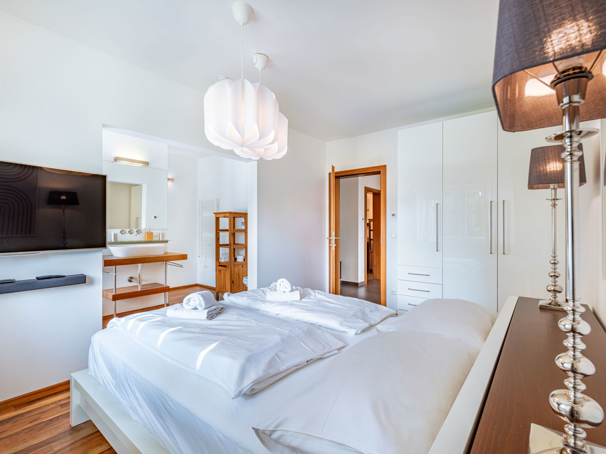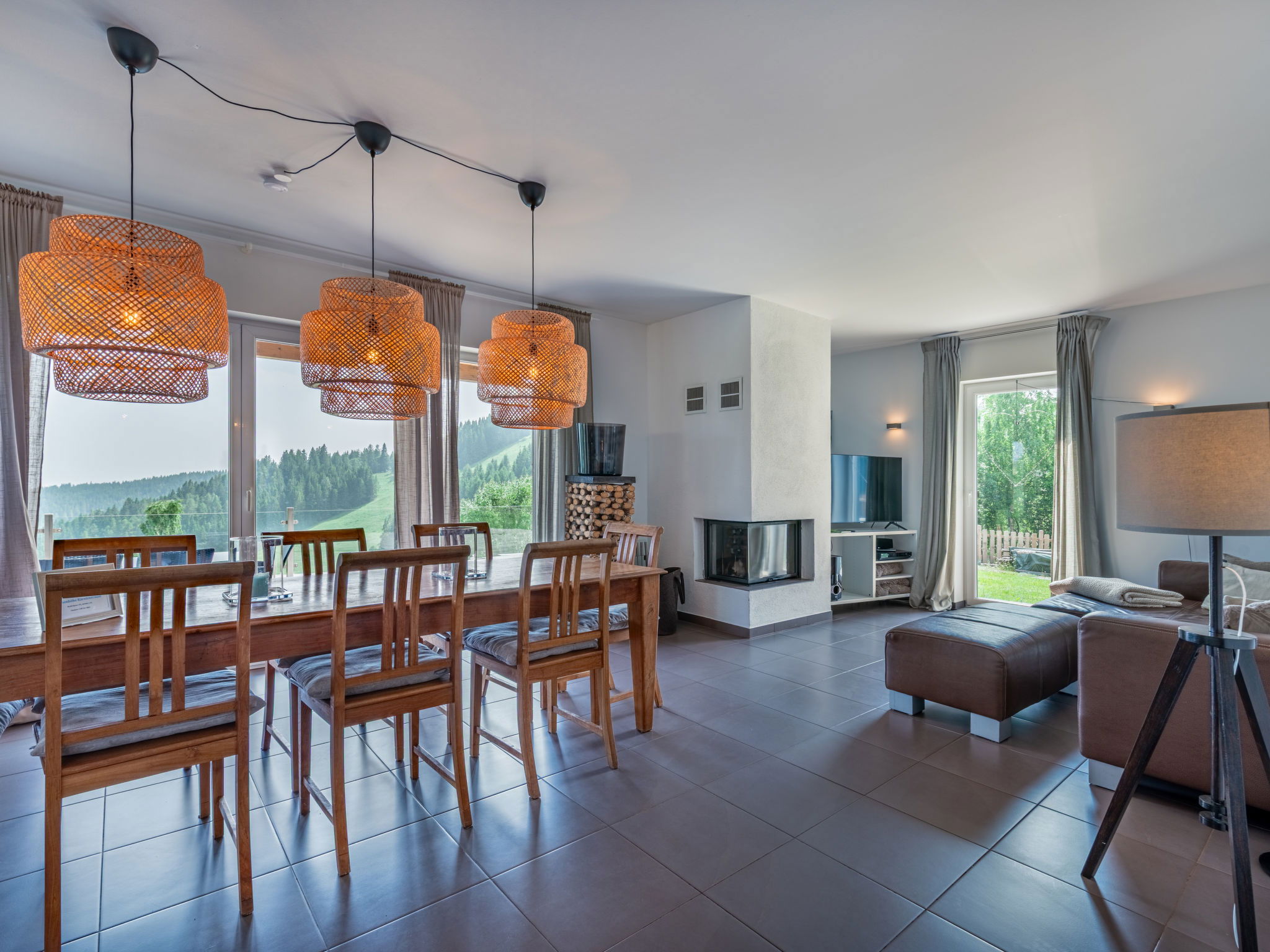 "Kärntentraum 1", 4-room apartment 110 m2, on the ground floor. Object suitable for 6 adults. Bright, comfortable and tasteful furnishings: large living/dining room with open-hearth fireplace, digital TV, flat screen, hi-fi system and DVD. Exit to the terrace. 2 double bedrooms, each room with 1 double bed (160 cm, length 200 cm), flat screen. 1 double bedroom with 1 double bed (160 cm, length 200 cm), bath/shower/WC and flat screen. Open kitchen (oven, dishwasher, 4 ceramic glass hob hotplates, toaster, kettle, electric coffee machine, Capsules for coffee machine (Nespresso mitbringen)) with dining table. Shower/WC. Underfloor heating. Parquet floors. Large terrace. Terrace furniture, deck chairs (4). Marvellous panoramic view. Facilities: Internet (WiFi, free). Please note: suitable for families. Fridge without freezer, non-smoking house. Maximum 1 pet/ dog allowed. Private entrance, smoke alarm, fire extinguisher. Underfloor heating. One double room has a bathroom/toilet en suite.