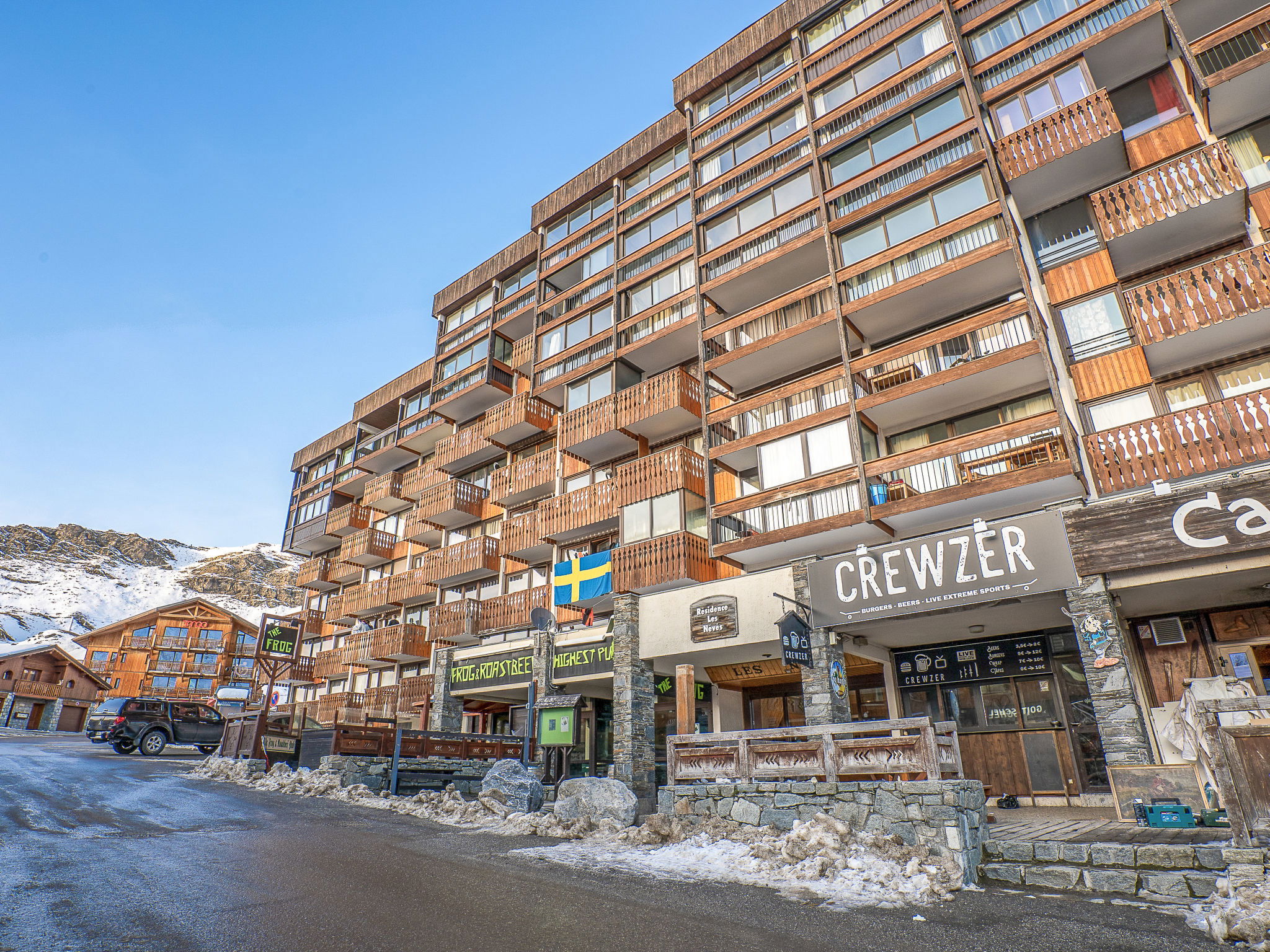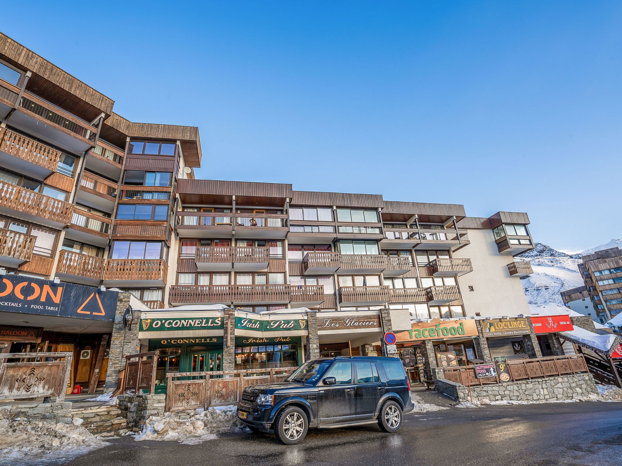 Residence "Les Glaciers". Above Val Thorens, in the district of Péclet, in a busy position, 100 m from the skiing area. In the complex: restaurant, bar, lift, storage room for skis, central heating system. Shop 20 m, grocery, supermarket 100 m, shopping centre, restaurant 20 m, bar 10 m, bakery 600 m, pedestrian zone 150 m, 4 minute walk to the centre, bus stop 750 m. Sports centre 600 m, cable car, chair lift, gondola lift 300 m, skisport facilities 500 m, slopes 300 m, ski rental 30 m, ski bus stop 40 m, ski school 150 m, ice rink 20 m. Please note: nightclub/disco. Nightclub, restaurant at bottom of the building, good location for nightlife. Not recommended for families.