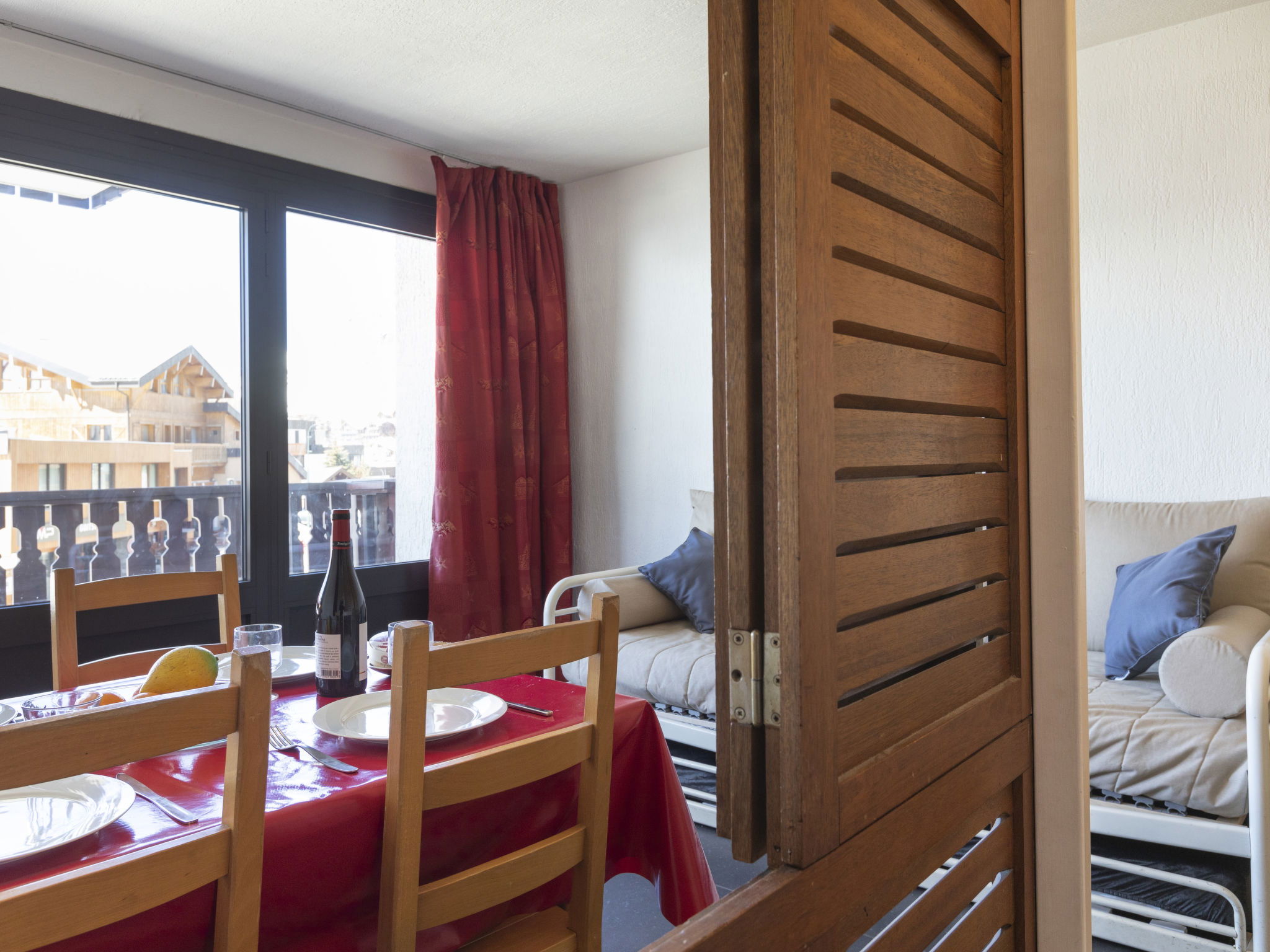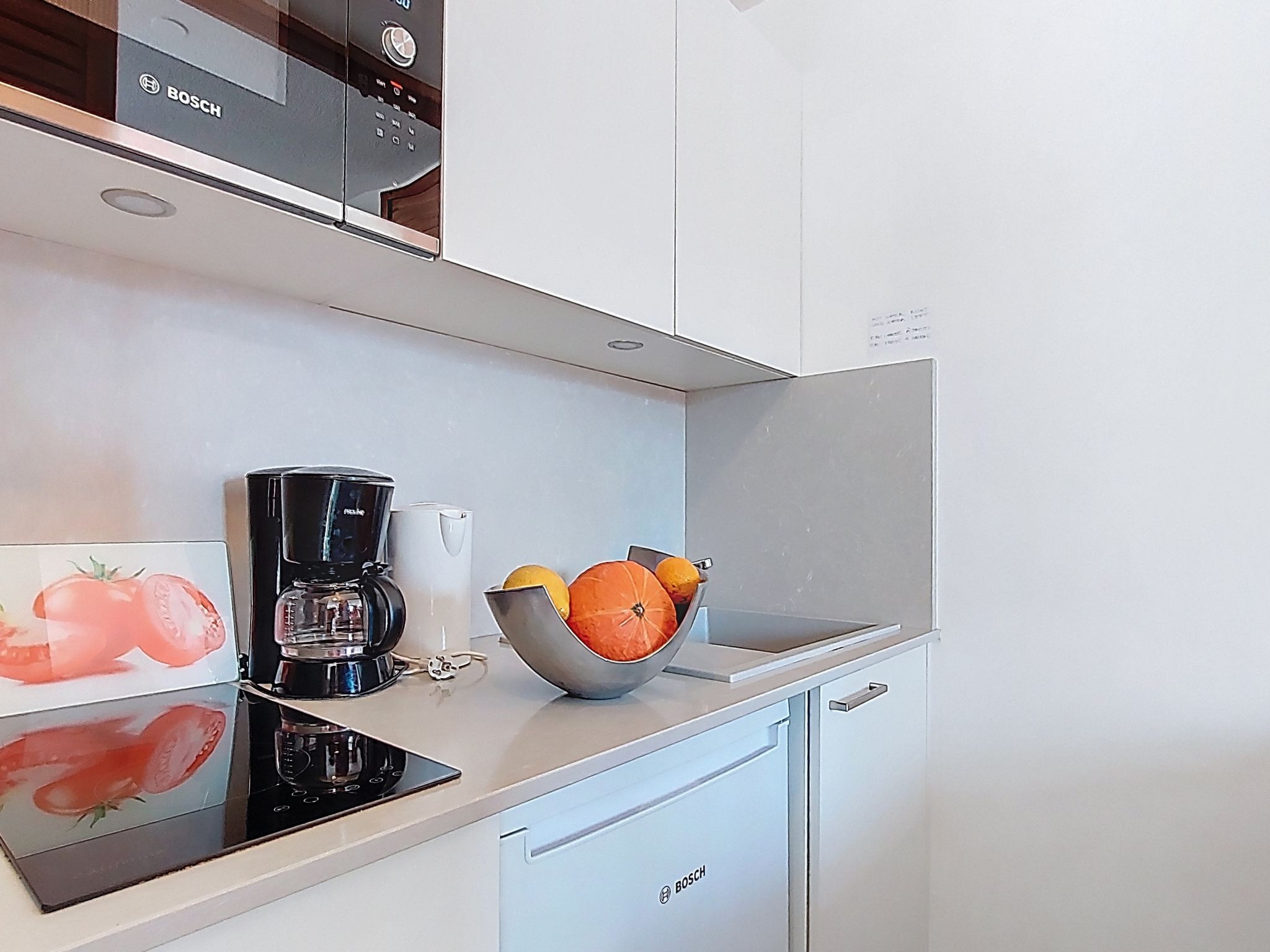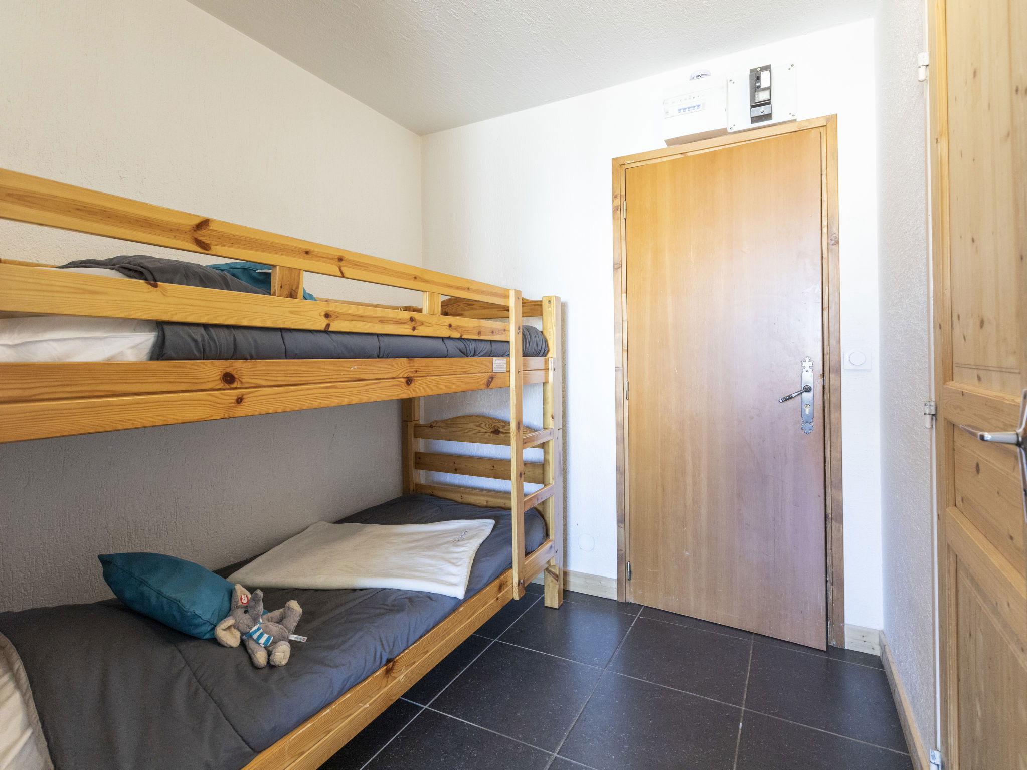 "Glacieres 22", 1-room apartment 25 m2 on 2nd floor, south facing position. Very simple furnishings: living/dining room with 1 pull-out bed (1 pers. 2 x 80 cm, length 190 cm). Exit to the balcony, south facing position. Entrance hall with 1 x 2 bunk beds (80 cm, length 190 cm). Kitchenette (oven, 3 induction hot plates, electric coffee machine). Bath/WC. Small balcony 2 m2, south facing position. View of the countryside and the resort. Facilities: Internet (WiFi, extra). Please note: maximum 1 pet/ dog allowed. Smoke alarm. 73257006156AK