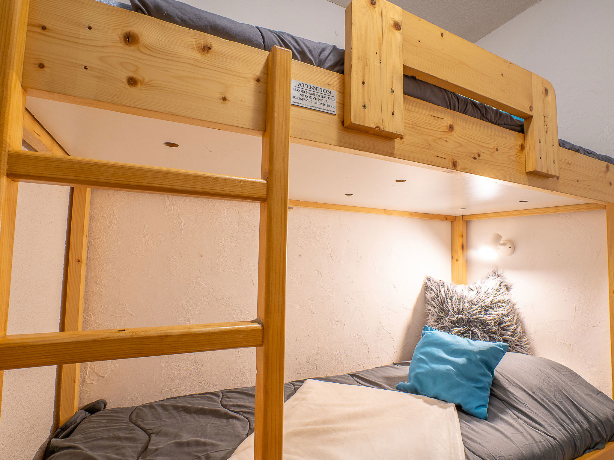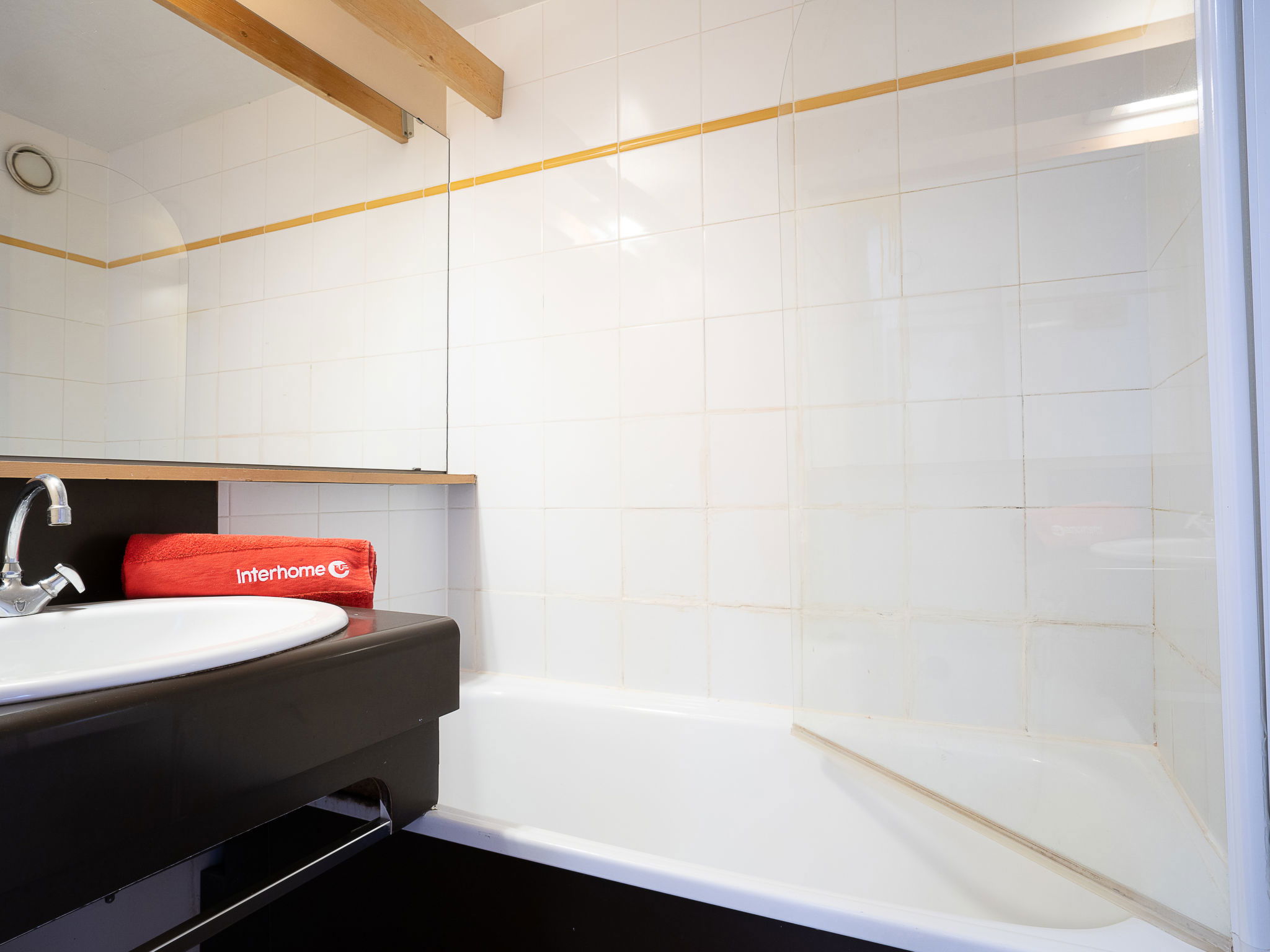 "Arcelle 614", 1-room apartment 24 m2 on 6th floor, north facing position. Very comfortable and cosy furnishings: living/dining room with 1 pull-out bed (2 pers. 2 x 80 cm, length 190 cm), TV, flat screen and electric heater. Sleeping alcove with 1 x 2 bunk beds (80 cm, length 190 cm), electric heater. Kitchenette (4 hot plates, oven, dishwasher, kettle, electric coffee machine). Bathroom, sep. WC. Parquet floors. View of the mountains. Facilities: Internet (WiFi, extra). Please note: suitable for families. Non-smokers only. Maximum 1 pet/ dog allowed. Smoke alarm. Instead of an enclosed bedroom, some sleeping areas are located in an open-plan area (gallery, alcove, etc.). 73257008456HT