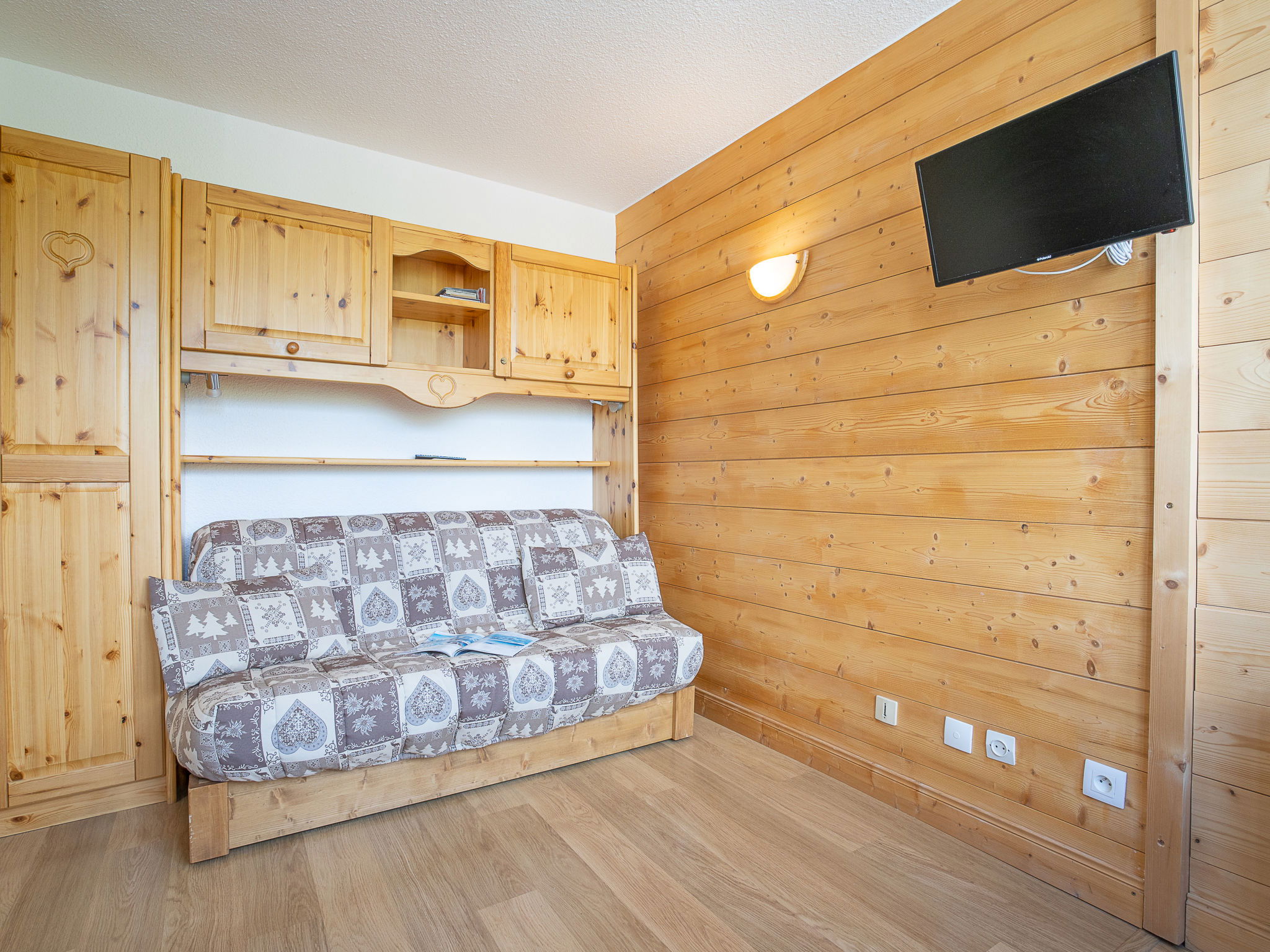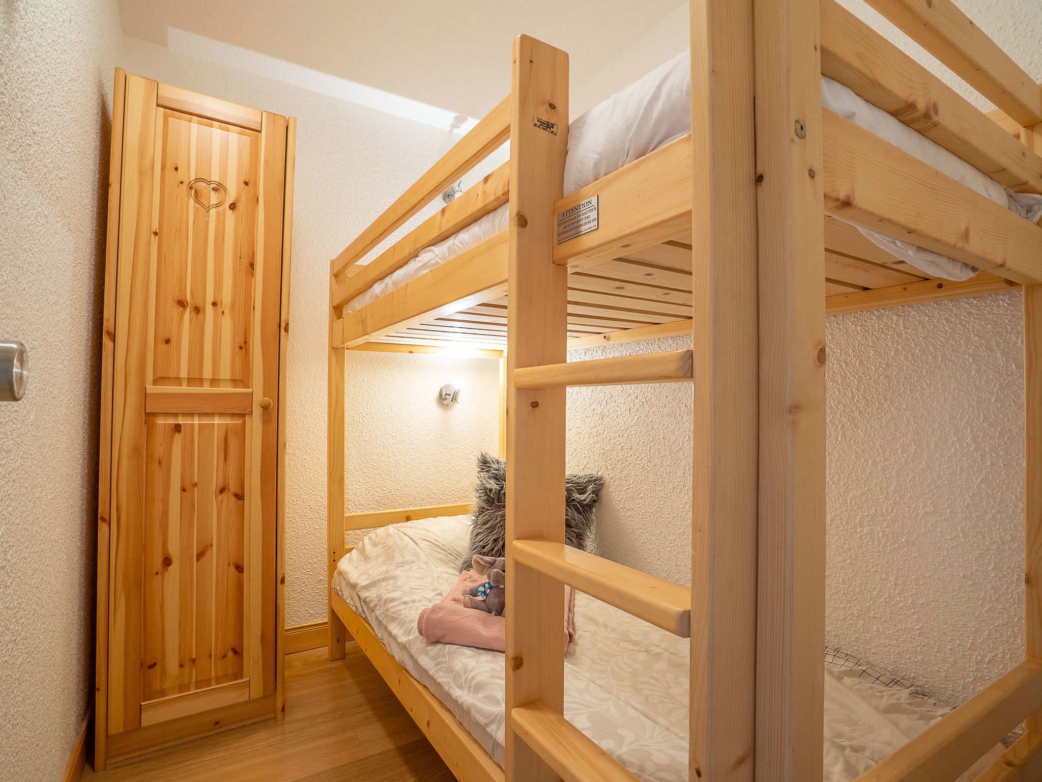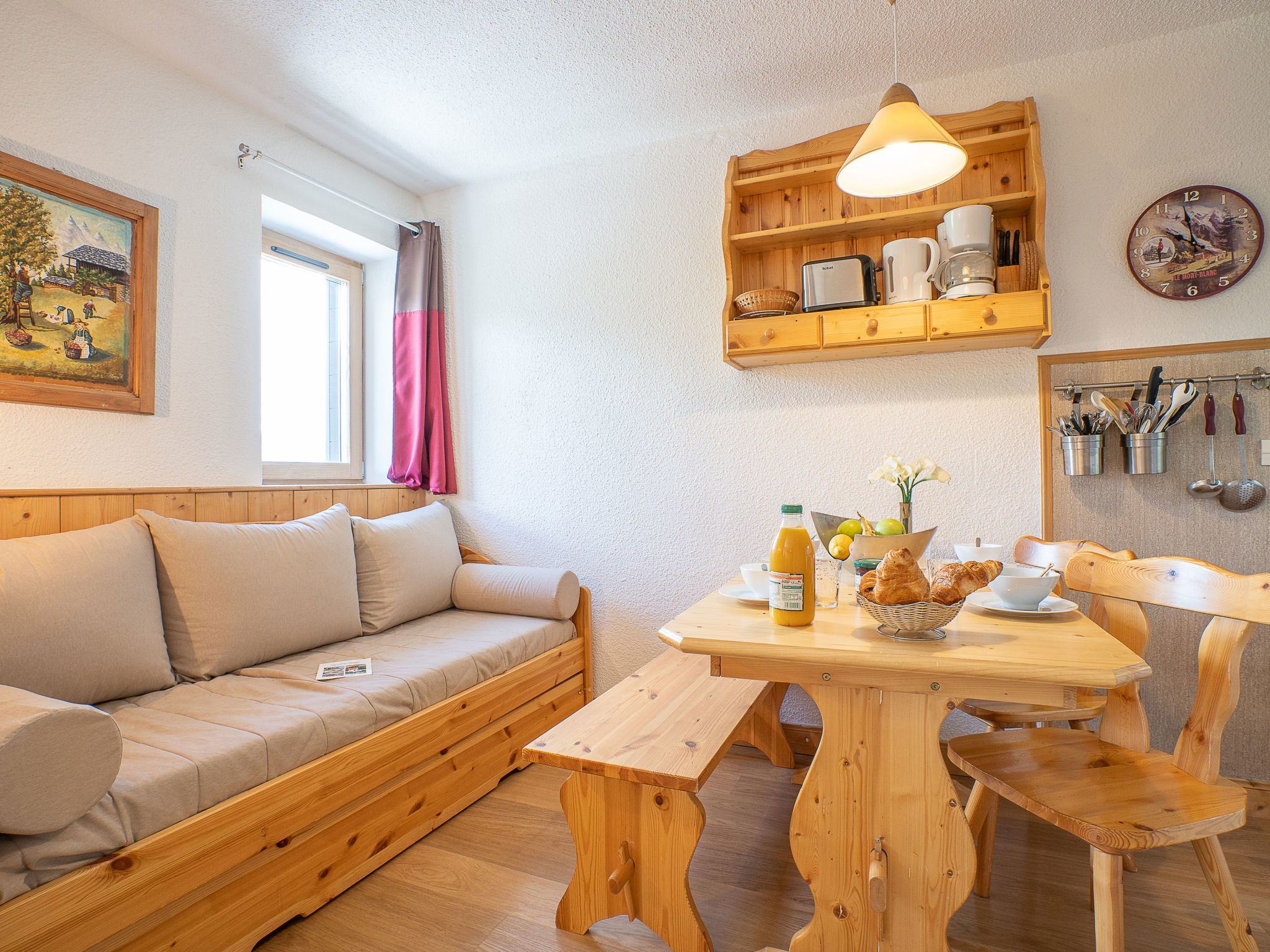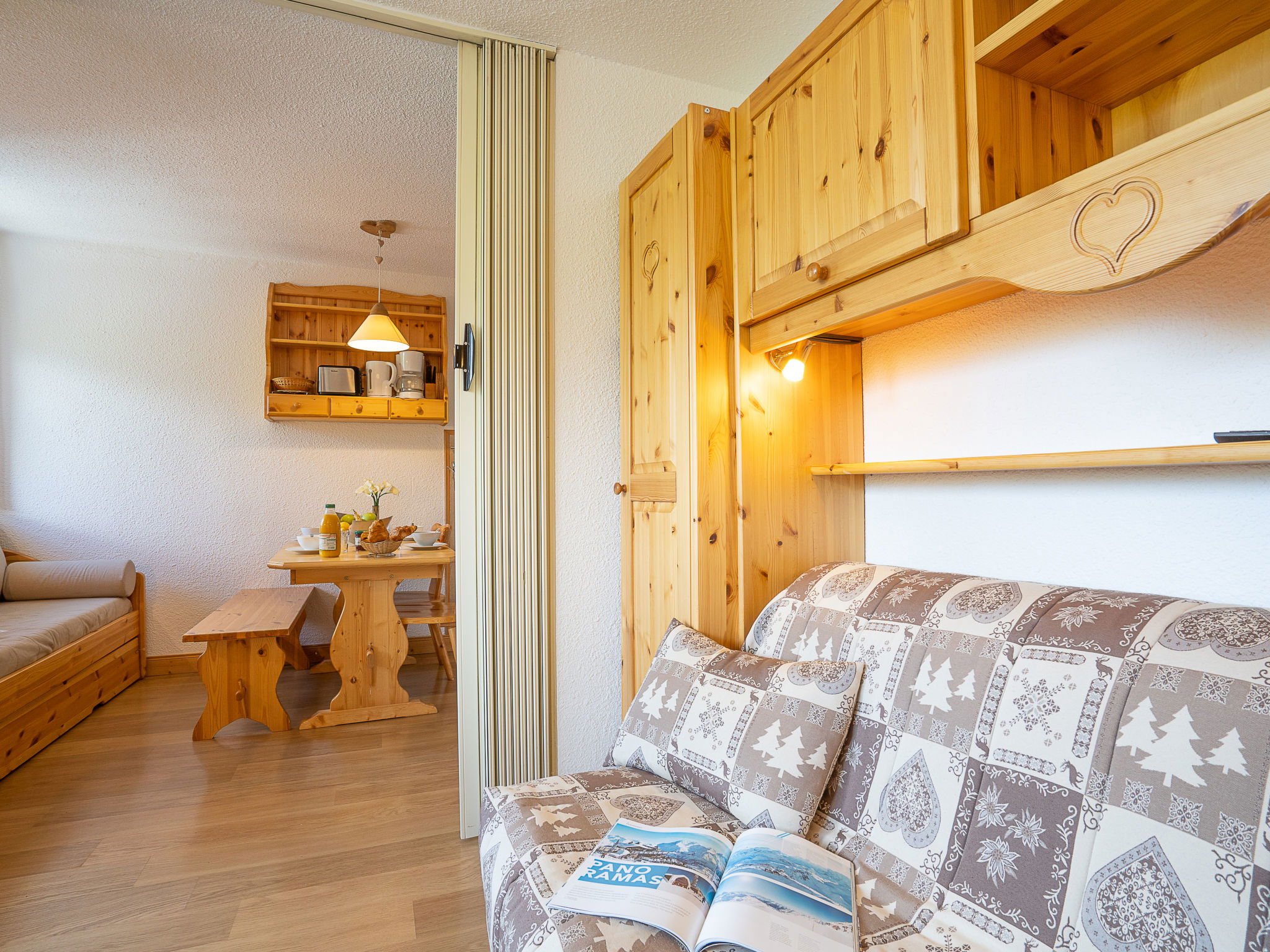 "Arcelle 508", 2-room apartment 26 m2 on 5th floor, south-west facing position. Comfortable and beautiful furnishings: living/dining room with heating stove. 1 small room 6 m2 with sliding door with 1 double sofabed (140 cm, length 190 cm), TV (flat screen), heating stove. Sleeping alcove with 1 x 2 bunk beds. Kitchenette (2 hot plates, oven, dishwasher, electric coffee machine). Bathroom, sep. WC. Beautiful view of the mountains and the ski run. Facilities: Internet (WiFi, extra). Please note: maximum 1 pet/ dog allowed. Smoke alarm. 73257008448AK