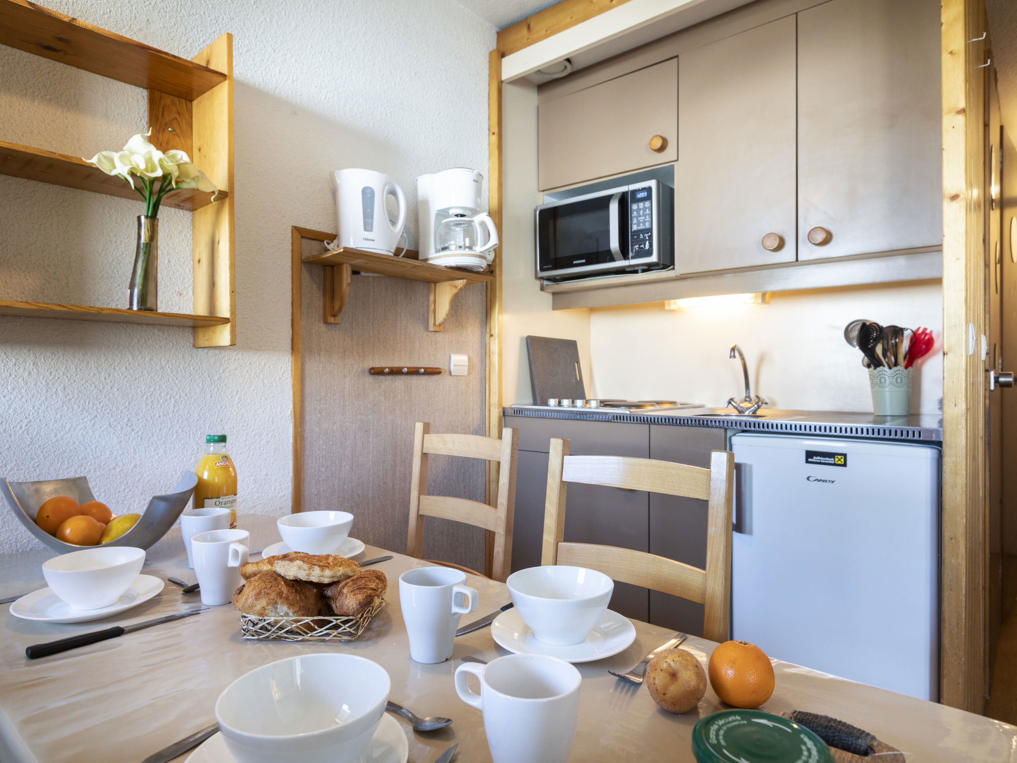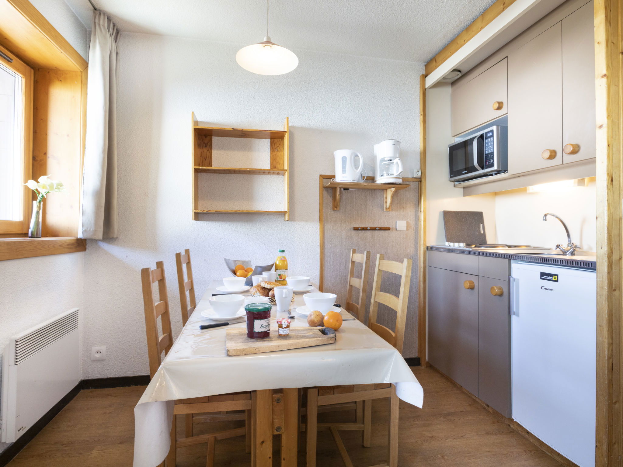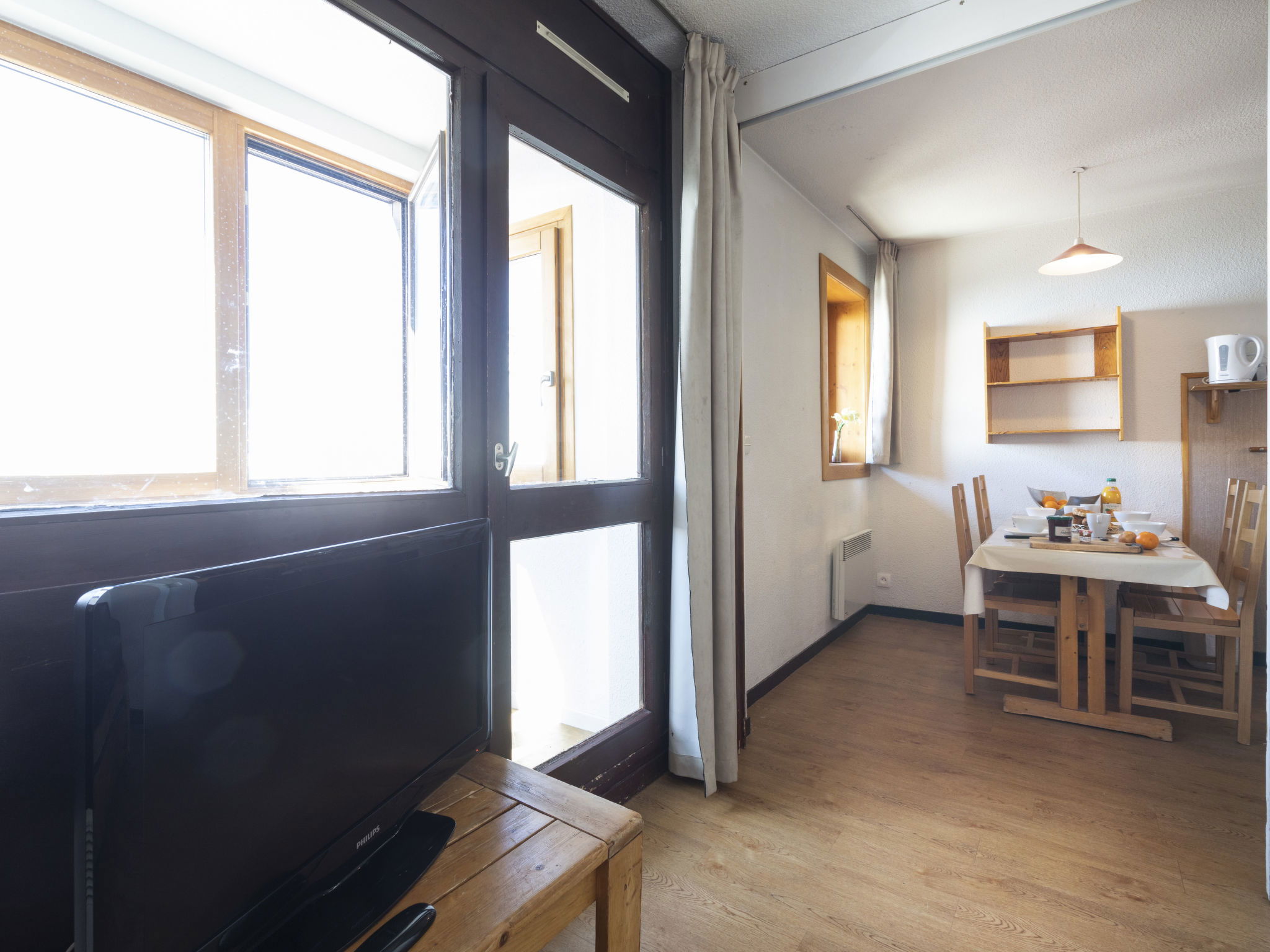 Very beautiful residence "Arcelle", 7 storeys. In the centre of la station, in a busy position, 100 m from the skiing area, in a pedestrian area. In the complex: lift, storage room for skis. In Winter: please take snow chains. Public car park at 50 m, extra. E-charging station. Shop 1 m, grocery, supermarket, shopping centre, restaurant, bar 2 m, bakery 15 m, café 5 m, pedestrian zone 2 m, bus stop 50 m, outdoor swimming pool 20 m. Sports centre 5 m, chair lift 50 m, gondola lift 150 m, skisport facilities 70 m, slopes 100 m, ski rental 2 m, ski bus stop 15 m, ski school 40 m, cross country ski track 1 km, ice rink 150 m. Nearby attractions: Les Menuires 1 km. Well-known ski regions can easily be reached: 3 Vallées. Well-known lakes can easily be reached: Lac du lou 1 km, Lac Menuires 800 m. Please note: baby equipment on request (extra). Groups of teenagers on request only. The owner does not accept any groups. In case of good snow conditions, the house is accessible on skis. The keys‘ handover takes place by the agency ValThorens. Additional accommodations can be booked. Neighbourhood highly sensitive to noise. Quietness and good behaviour expected.