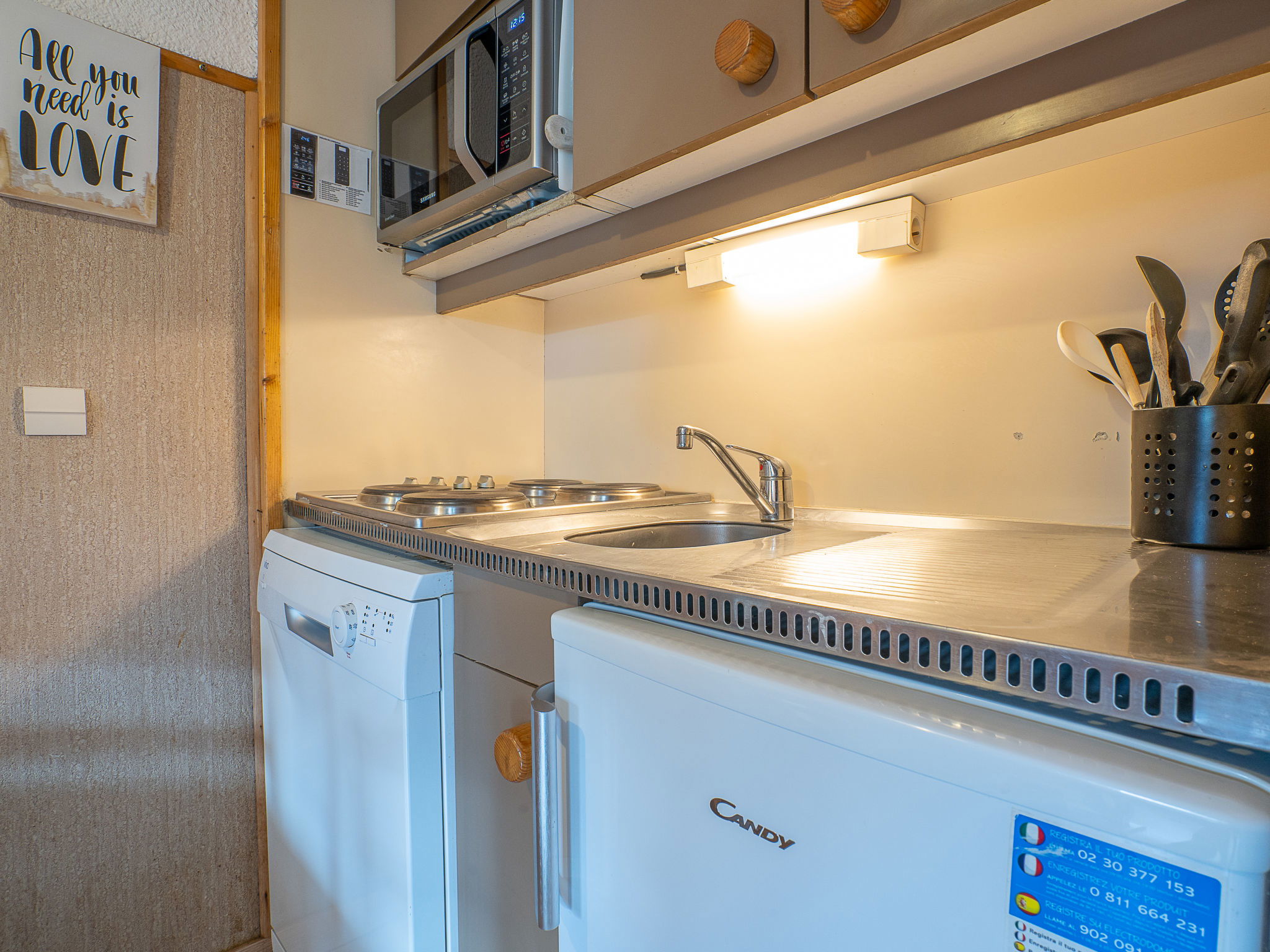 Very beautiful residence "Arcelle", 7 storeys. In the centre of la station, in a busy position, 100 m from the skiing area, in a pedestrian area. In the complex: lift, storage room for skis. In Winter: please take snow chains. Public car park at 50 m, extra. E-charging station. Shop 1 m, grocery, supermarket, shopping centre, restaurant, bar 2 m, bakery 15 m, café 5 m, pedestrian zone 2 m, bus stop 50 m, outdoor swimming pool 20 m. Sports centre 5 m, chair lift 50 m, gondola lift 150 m, skisport facilities 70 m, slopes 100 m, ski rental 2 m, ski bus stop 15 m, ski school 40 m, cross country ski track 1 km, ice rink 150 m. Nearby attractions: Les Menuires 1 km. Well-known ski regions can easily be reached: 3 Vallées. Well-known lakes can easily be reached: Lac du lou 1 km, Lac Menuires 800 m. Please note: baby equipment on request (extra). Groups of teenagers on request only. The owner does not accept any groups. In case of good snow conditions, the house is accessible on skis. The keys‘ handover takes place by the agency ValThorens. Additional accommodations can be booked. Neighbourhood highly sensitive to noise. Quietness and good behaviour expected.