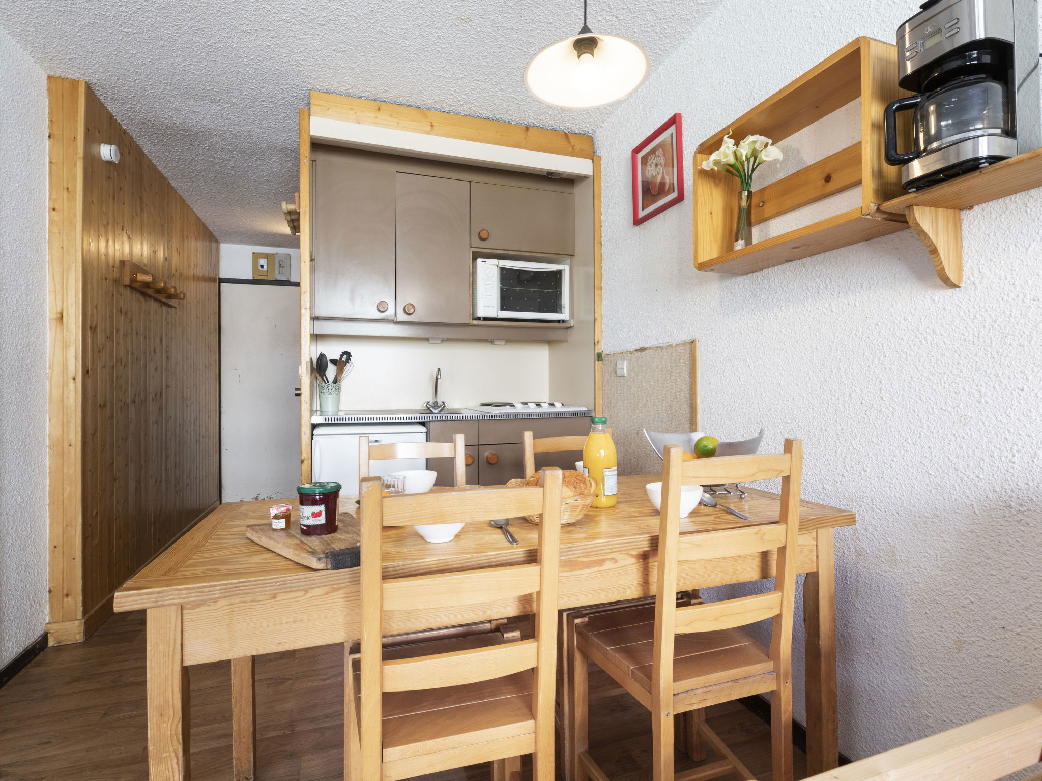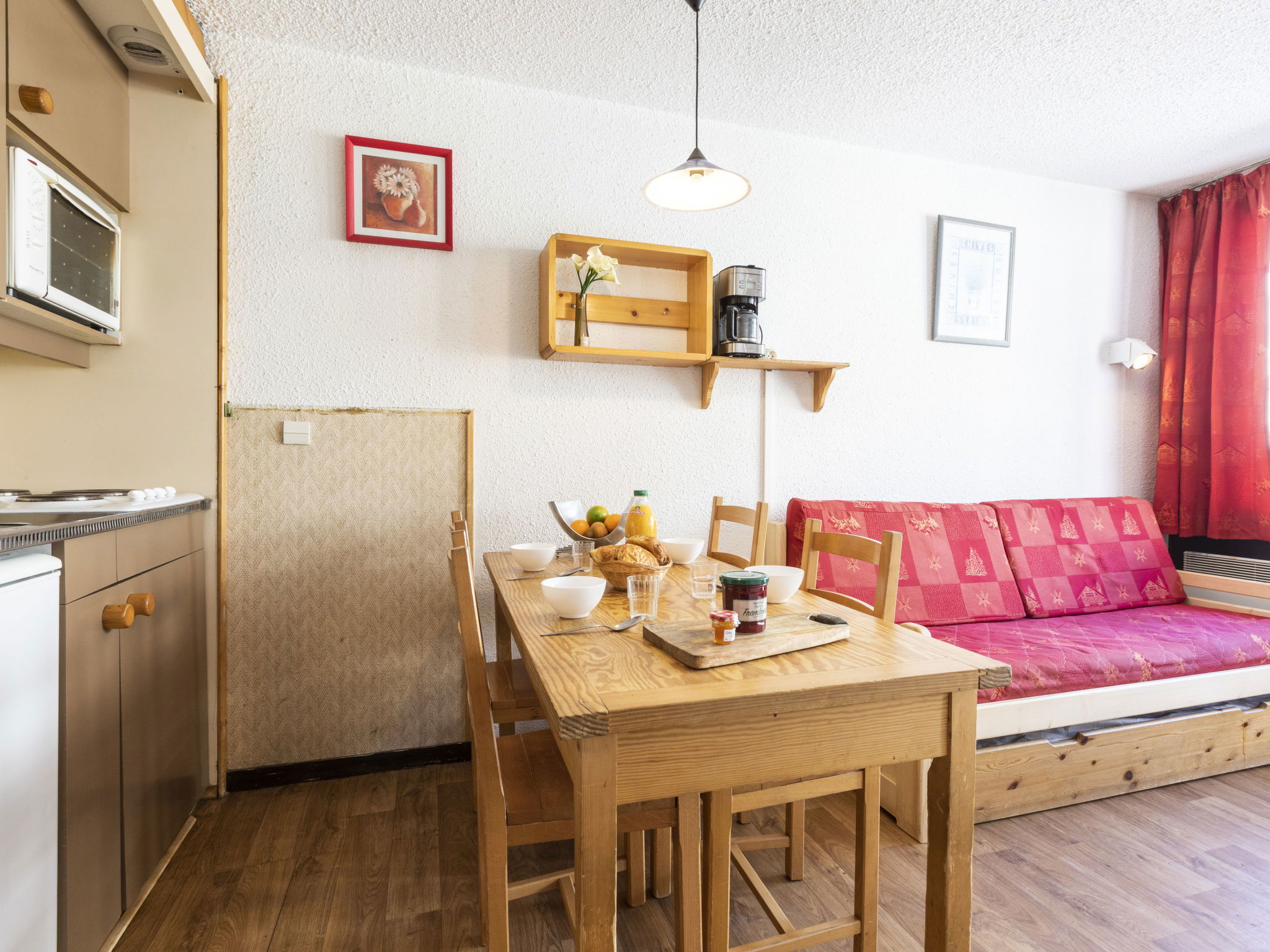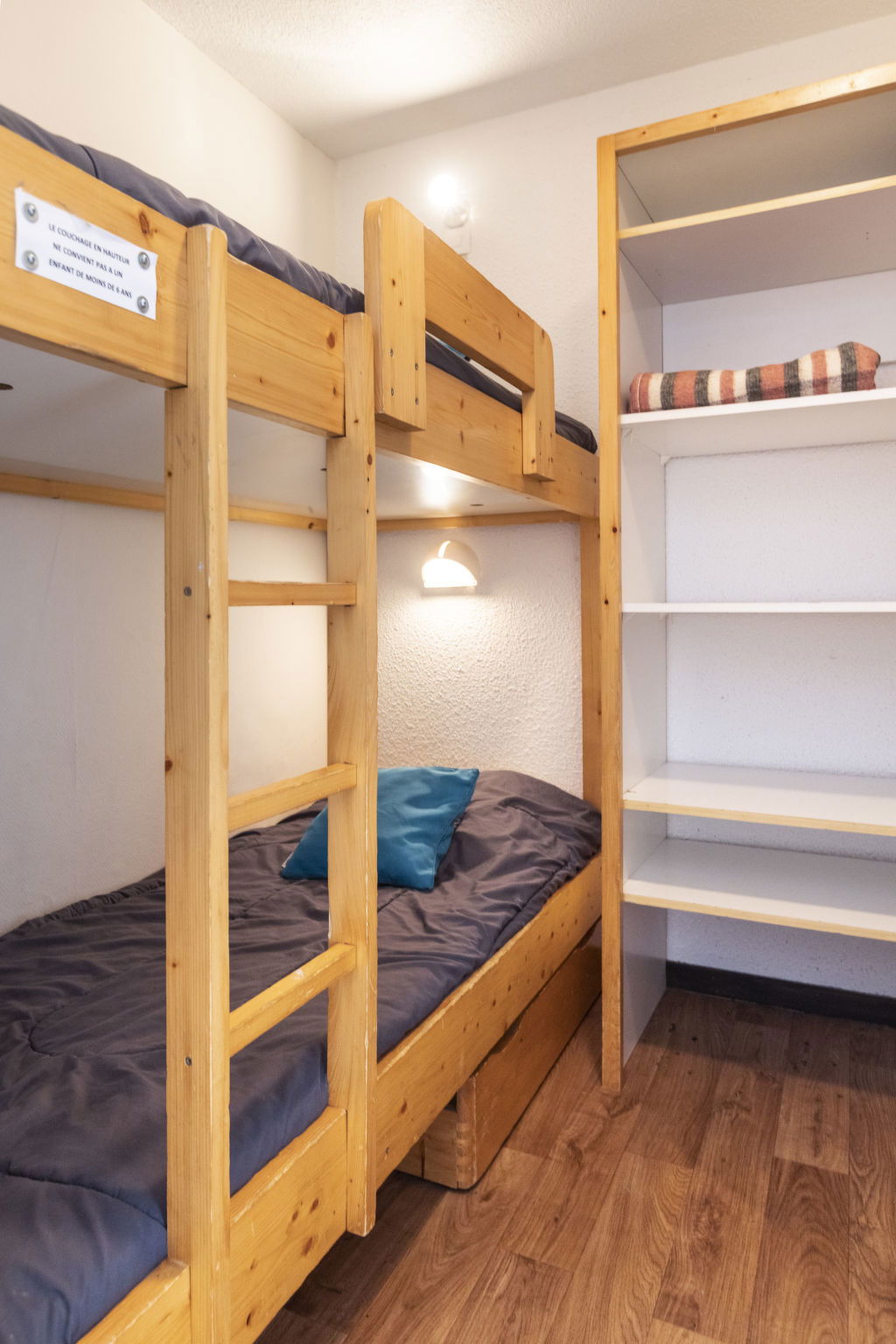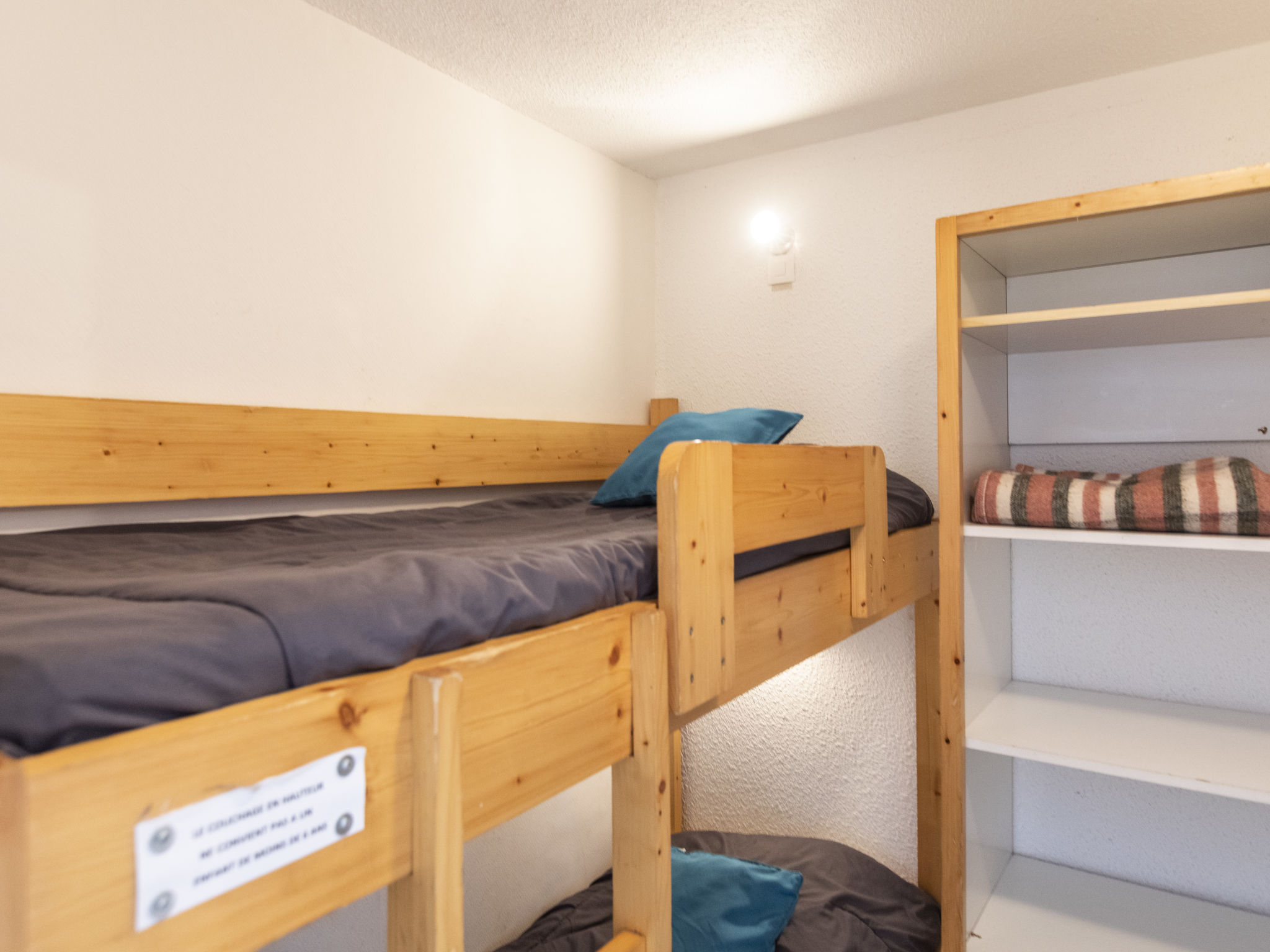 "Lauzières 616", 2-room apartment 26 m2 on 6th floor, north facing position. Beautiful furnishings: living/dining room with 1 pull-out bed (2 x 80 cm, length 190 cm), TV (flat screen), electric heater. Exit to the balcony. 1 small room 5 m2 with sliding door with 1 pull-out bed (2 pers. 2 x 80 cm, length 190 cm). Small sleeping alcove with 1 x 2 bunk beds (80 cm, length 190 cm). Kitchenette (4 hot plates, oven, electric coffee machine). Shower, sep. WC. Balcony, north facing position. No view. Facilities: Internet (WiFi, extra). Please note: maximum 1 pet/ dog allowed. TV only FR. Smoke alarm. Instead of an enclosed bedroom, some sleeping areas are located in an open-plan area (gallery, alcove, etc.). 73257009538SB