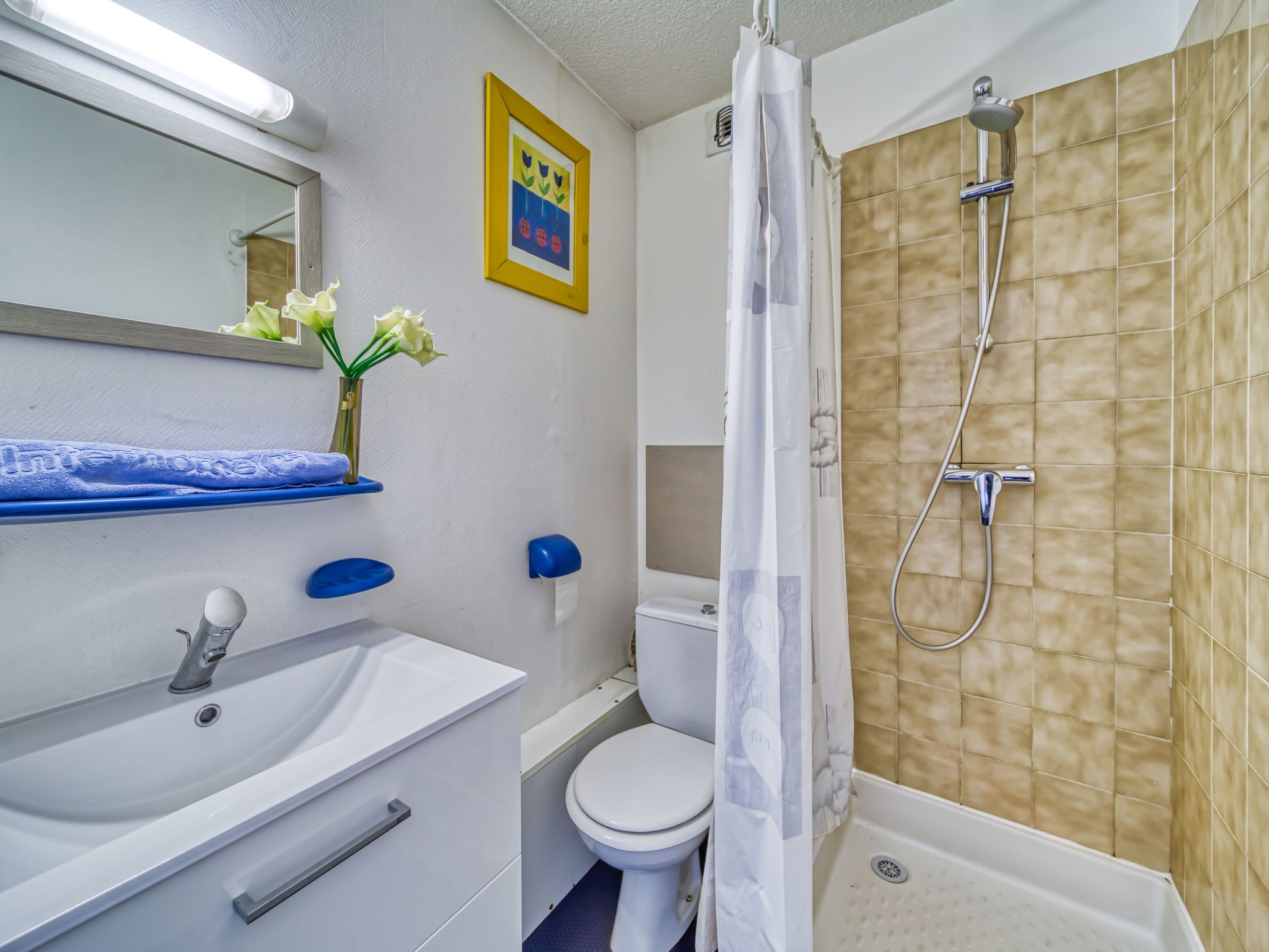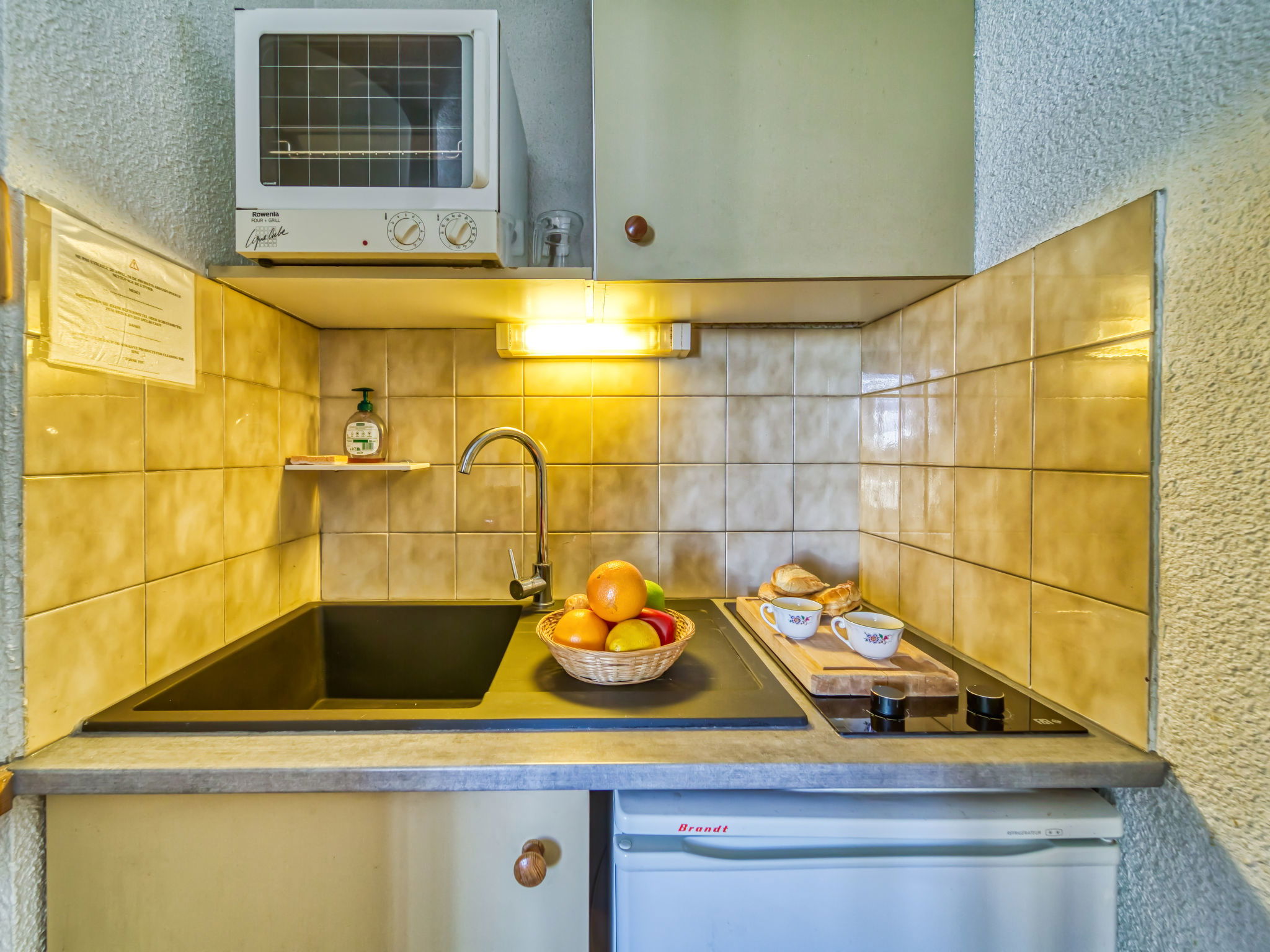 "Cime de Caron 2204", 1-room apartment 20 m2 on 2nd floor. Living/dining room with 1 double sofabed (160 cm, length 200 cm), TV and heating stove. Kitchenette (2 hot plates, oven, electric coffee machine). Shower/WC. Balcony, south facing position. Facilities: Internet (WiFi, extra). Please note: maximum 1 pet/ dog allowed. Smoke alarm. 73257010429DP
