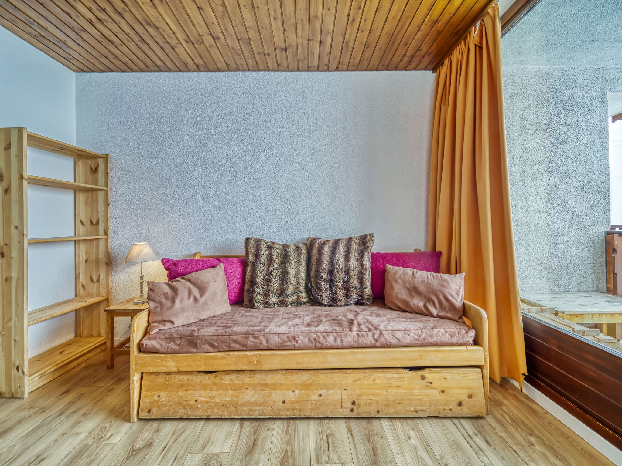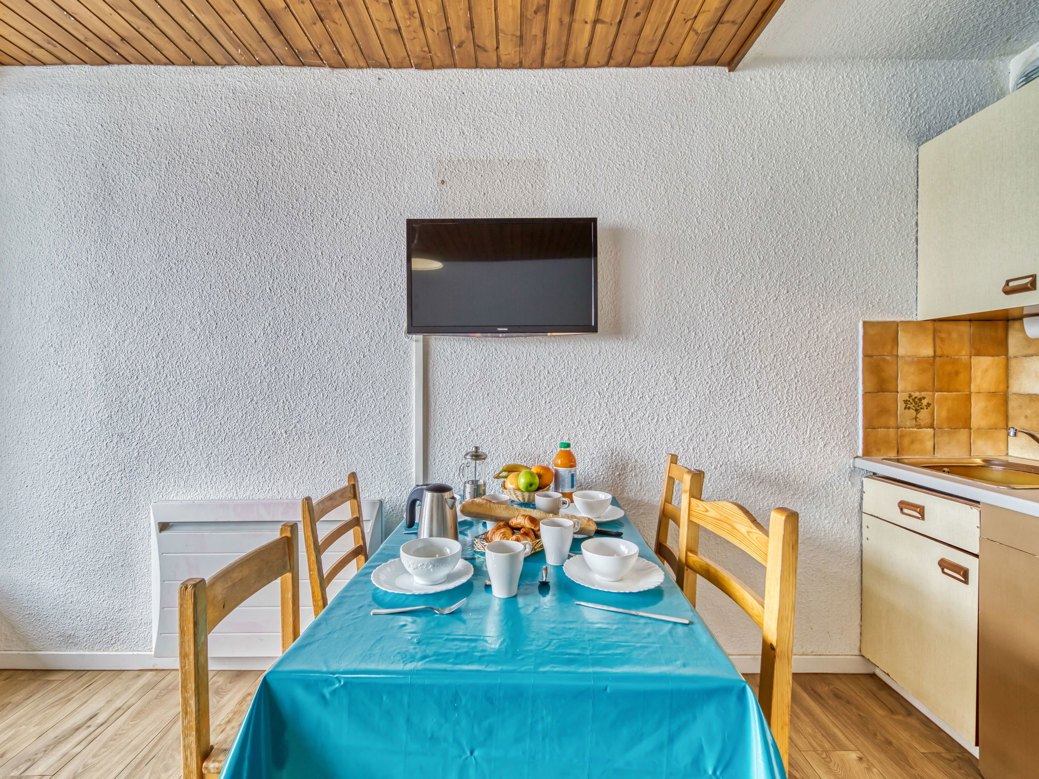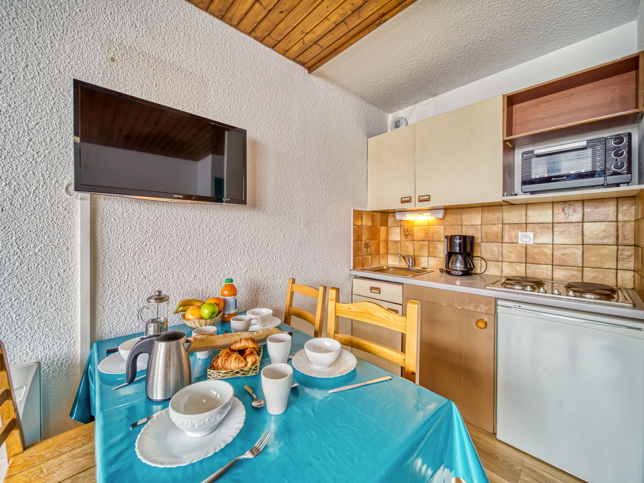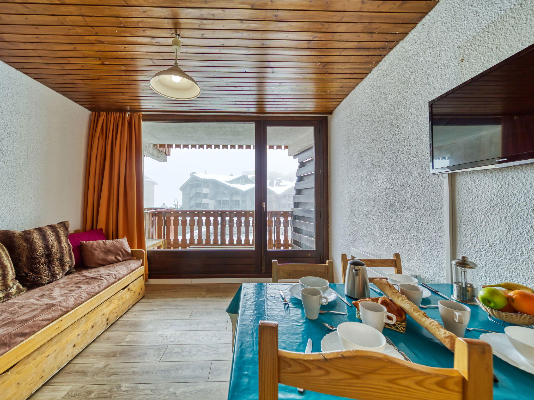 "Eterlous 1Bis", 1-room apartment 25 m2 on 1st floor, south facing position. Practical furnishings: living/dining room with 1 pull-out bed (2 pers. 2 x 90 cm, length 190 cm), TV (flat screen), electric heater. Exit to the balcony, south facing position. Entrance hall with 2 wall-trunk beds (80 cm, length 190 cm). Kitchenette (4 hot plates, oven, kettle, electric coffee machine). Bathroom, sep. WC. Parquet floors. Balcony 3 m2, south facing position. Beautiful, of the ski run and the resort. Facilities: Internet (WiFi, extra). Please note: non-smokers only. Maximum 1 pet/ dog allowed. Smoke alarm. 73257009797WF