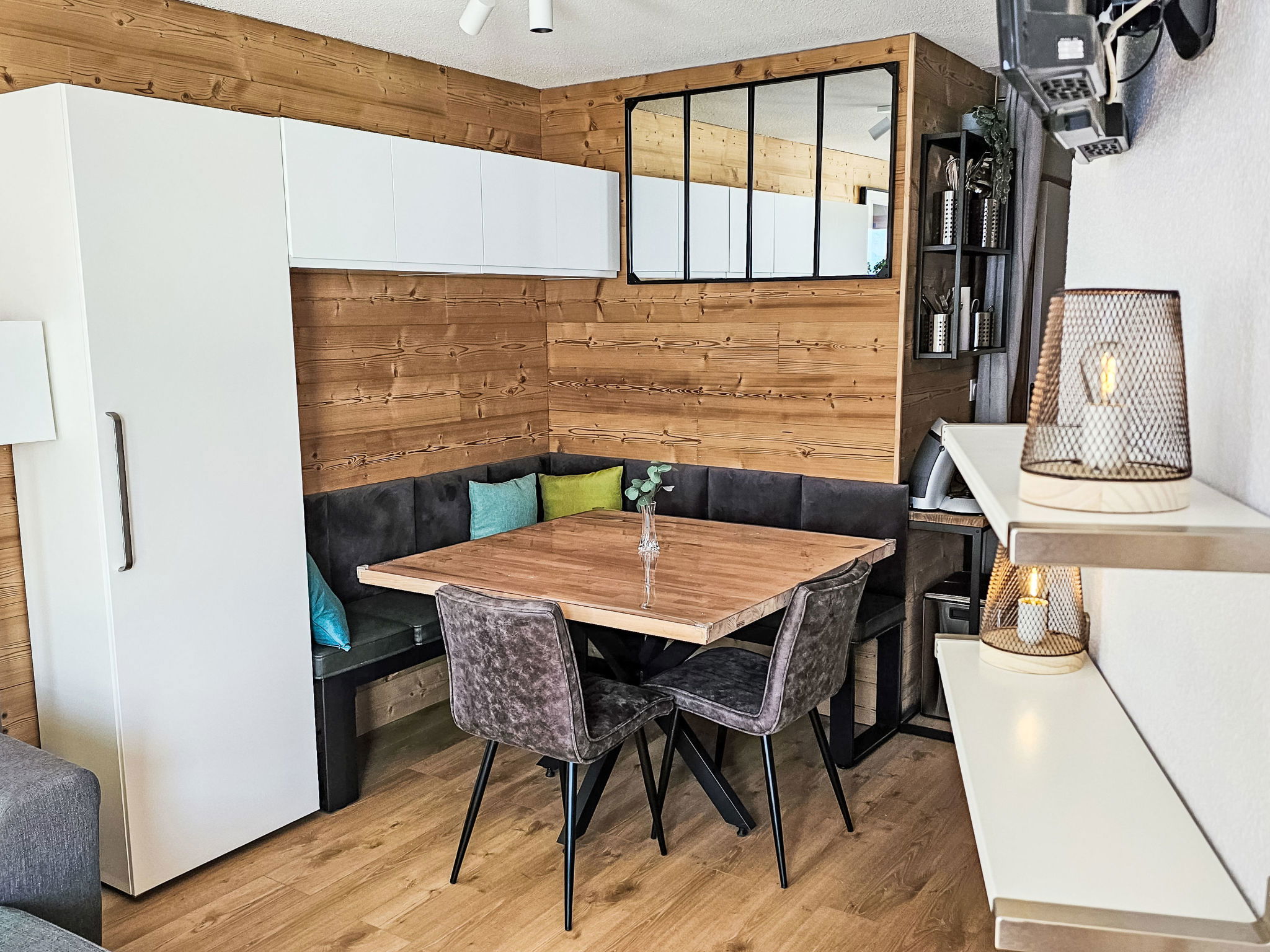 "Nazca I6", 3-room apartment 35 m2 on 5th floor, south facing position. Bright, fully renovated in 2024, very beautiful furnishings: living/dining room with 1 double sofabed (1 x 140 cm, length 190 cm), TV and flat screen. Exit to the balcony, south facing position. 1 room with 1 bed (140 cm, length 190 cm). 1 small room with 1 x 2 bunk beds (80 cm, length 190 cm). Kitchenette (dishwasher, 4 ceramic glass hob hotplates, toaster, kettle, electric coffee machine, Capsules for coffee machine (Senseo) extra, combination microwave). Shower, sep. WC. Electric heating. Parquet floors. Large balcony 4 m2, south facing position. Balcony furniture. Very beautiful panoramic view of the mountains and the ski run. Facilities: children's high chair, baby cot (extra). Internet (WiFi, extra). Please note: suitable for families. Non-smokers only. Maximum 1 pet/ dog allowed 2 small pets/ dogs allowed. TV only FR, ES, IT. Smoke alarm. Offer by a private individual according to Art. 155, IV of CGI. 73257003483NT