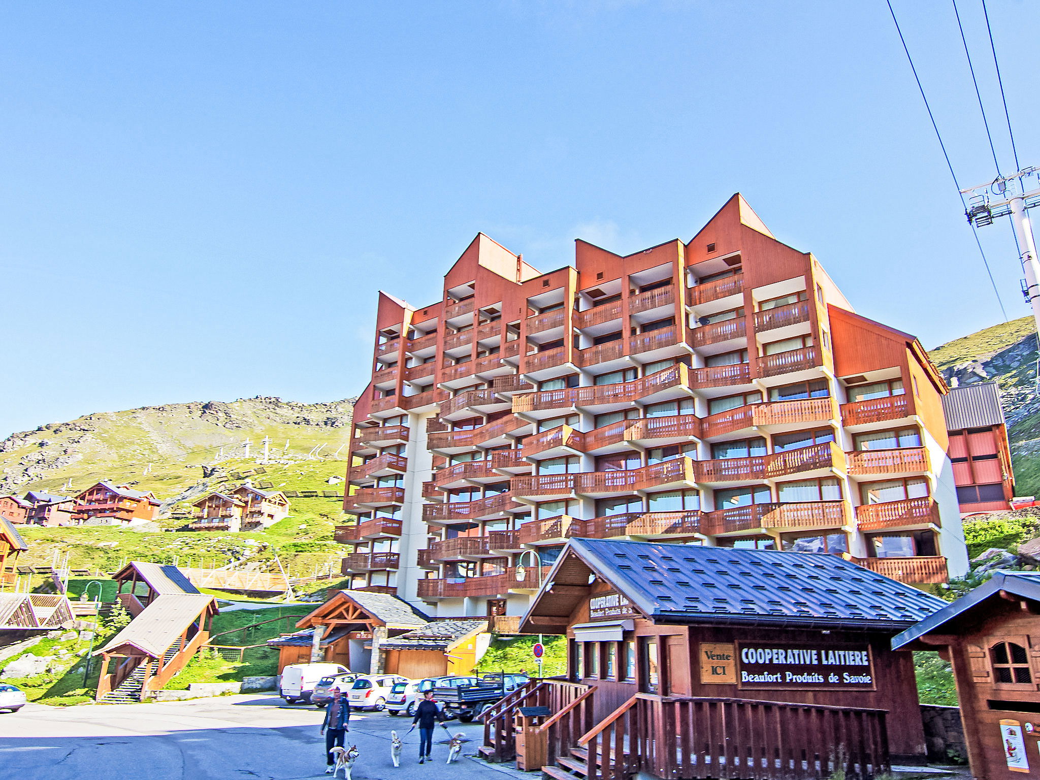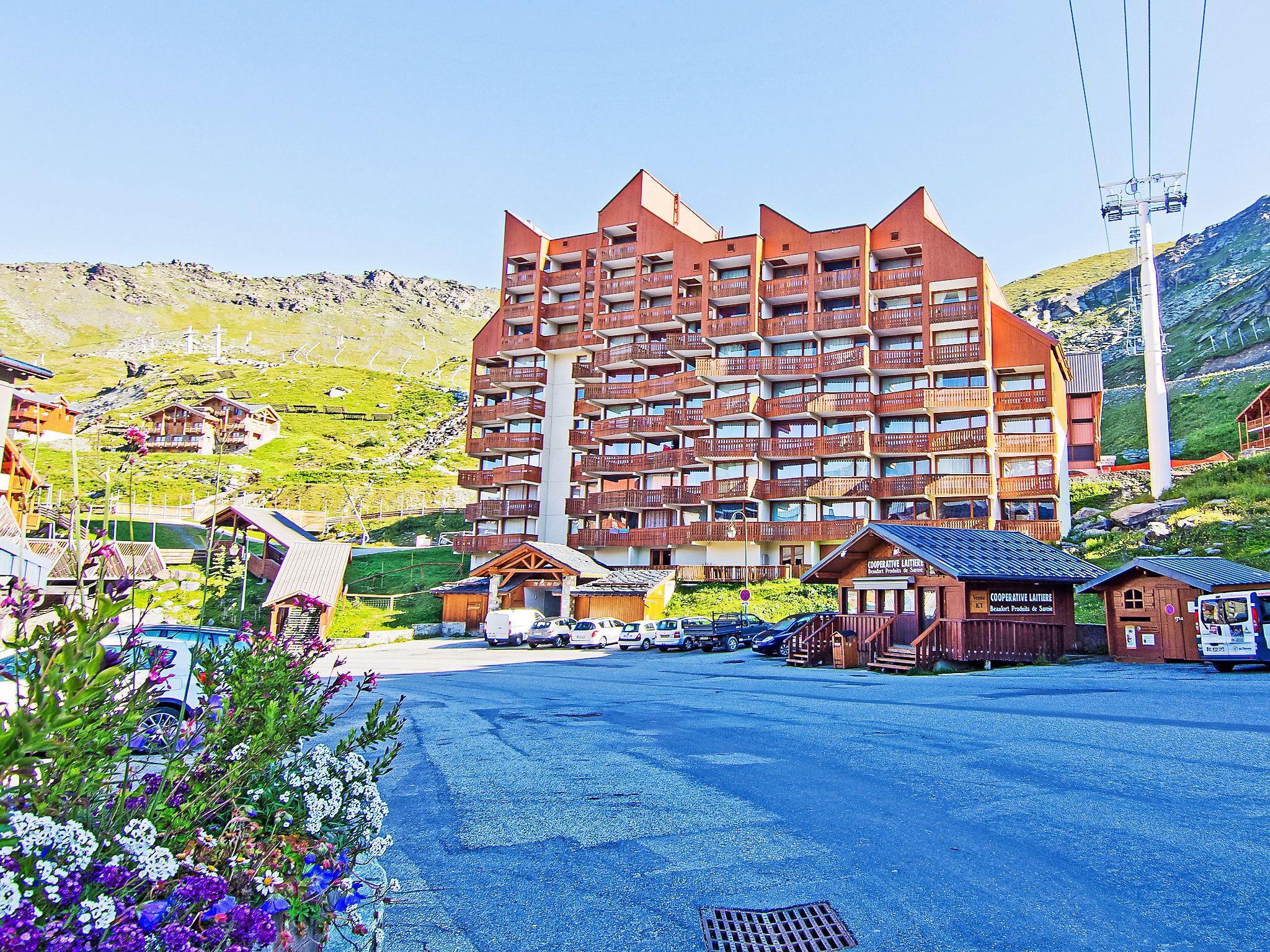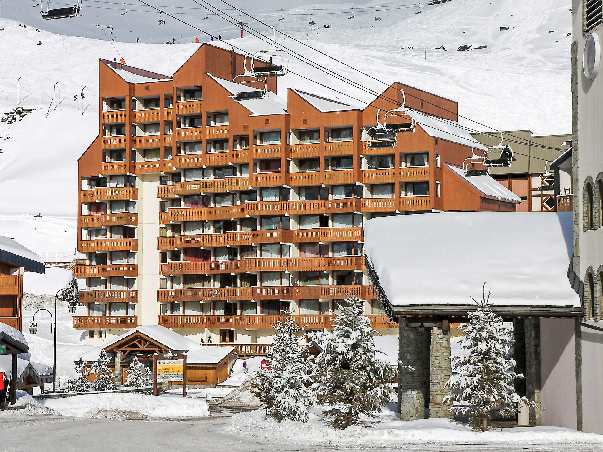 Residence "Le Lac du Lou". In the centre of de la station, 50 m from the skiing area, south facing position. In the house: lift, storage room for skis. In Winter: please take snow chains. Public car park at 100 m, extra. Shop 50 m, grocery, supermarket 100 m, shopping centre 100 m, restaurant, bar 50 m, bakery 70 m, café, pedestrian zone 50 m, 3 minute walk to the centre, bus stop "navette gratuit" 50 m. Skisport facilities 300 m, ski rental 100 m, ski school 100 m, ice rink 200 m. Well-known ski regions can easily be reached: 3 Vallées. Well-known lakes can easily be reached: Lac du Lou 1 km, Lac du Menuieres 800 m. Please note: In case of good snow conditions, the house is accessible on skis. Additional accommodations can be booked.