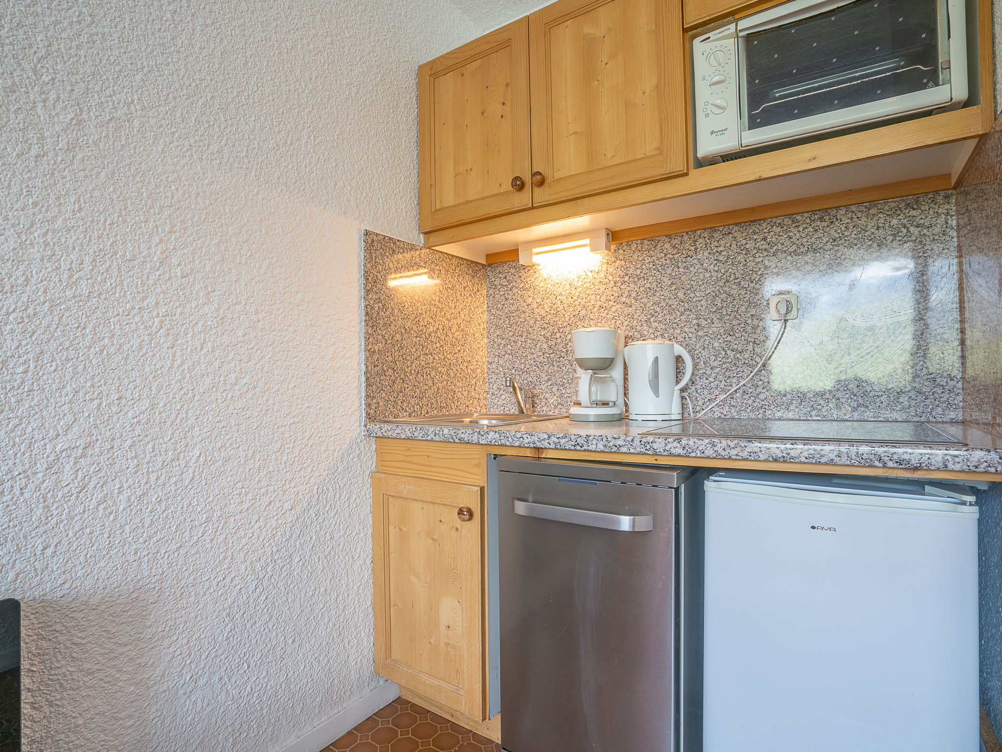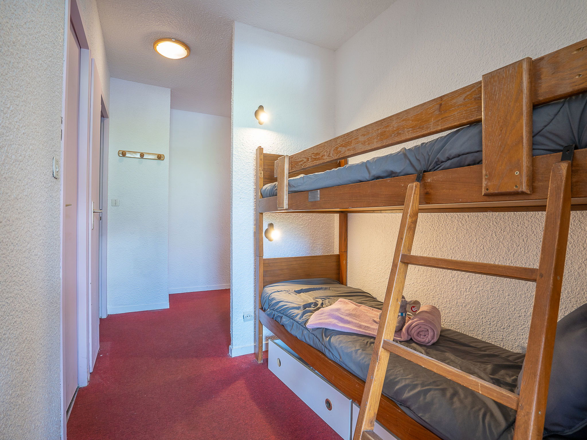 "Lac du Lou 607", 2-room apartment 35 m2 on 6th floor, south facing position. Bright, partly renovated in 2021, very beautiful furnishings: living/dining room with 1 pull-out bed (2 pers. 2 x 80 cm, length 190 cm), TV (flat screen), electric heater. Exit to the balcony, south facing position. Entrance hall with 1 x 2 bunk beds (80 cm, length 190 cm). 1 room with 1 french bed (140 cm, length 190 cm), electric heater. Kitchenette (oven, dishwasher, 4 ceramic glass hob hotplates, kettle, microwave, electric coffee machine). Bathroom, sep. WC. Small balcony 2 m2, south facing position. Very beautiful view of the mountains. Facilities: Internet (WiFi, extra). Please note: maximum 1 pet/ dog allowed. Smoke alarm. 73257007853WF