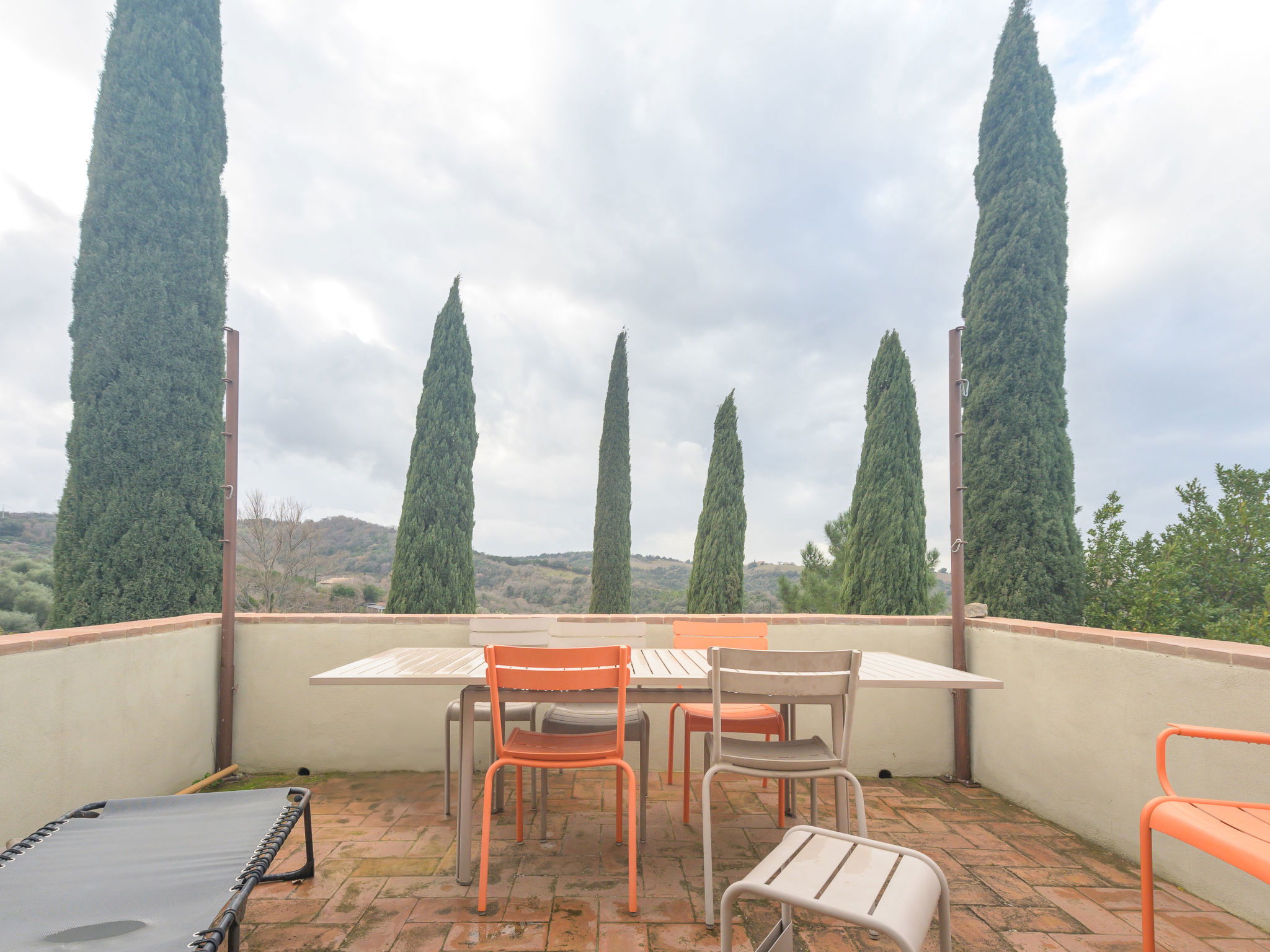 "Nobile", 3-room apartment 100 m2 on 1st floor. Spacious and bright, tasteful furnishings: large living/sleeping room with dining table, TV and wood-burning stove. Exit to the terrace. Living room. 1 large double bedroom with wood-burning stove. 2 double bedrooms. Open kitchen (oven, dishwasher, 5 gas rings, toaster, kettle, microwave, electric coffee machine). Exit to the terrace. 2 showers/WC. Terrace. Terrace furniture. Marvellous panoramic view of the countryside. Facilities: washing machine, iron, hair dryer. Internet (WiFi, free). Parking (roofed). Please note: non-smokers only. Maximum 1 pet/ dog allowed. Smoke alarm, fire extinguisher. IT053023C2T9WPGO9V
