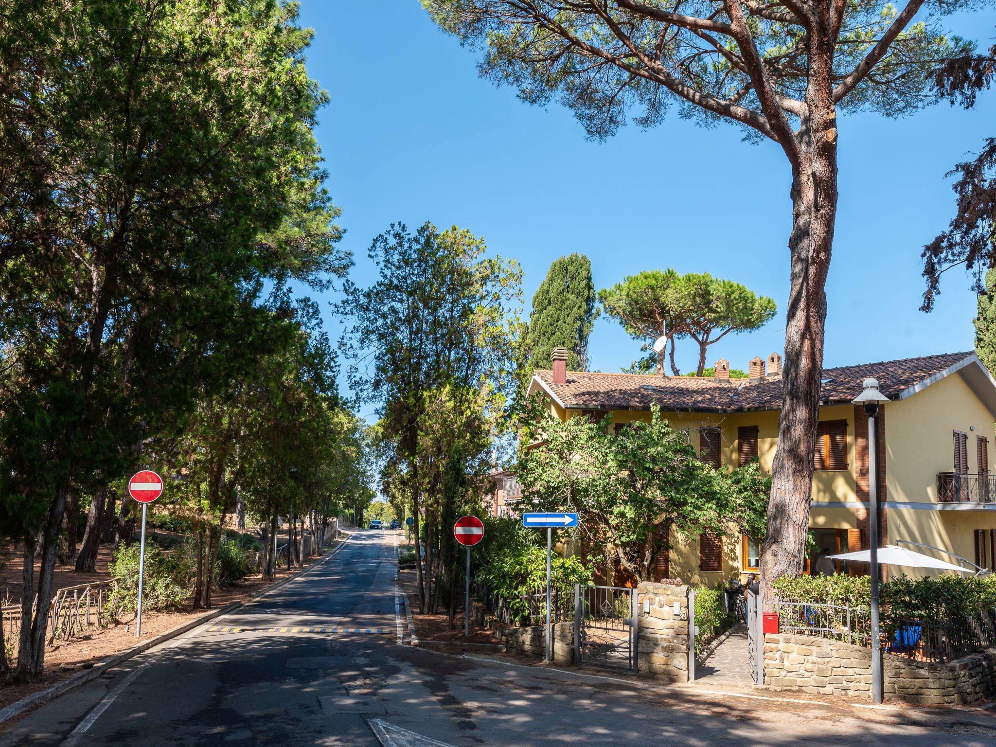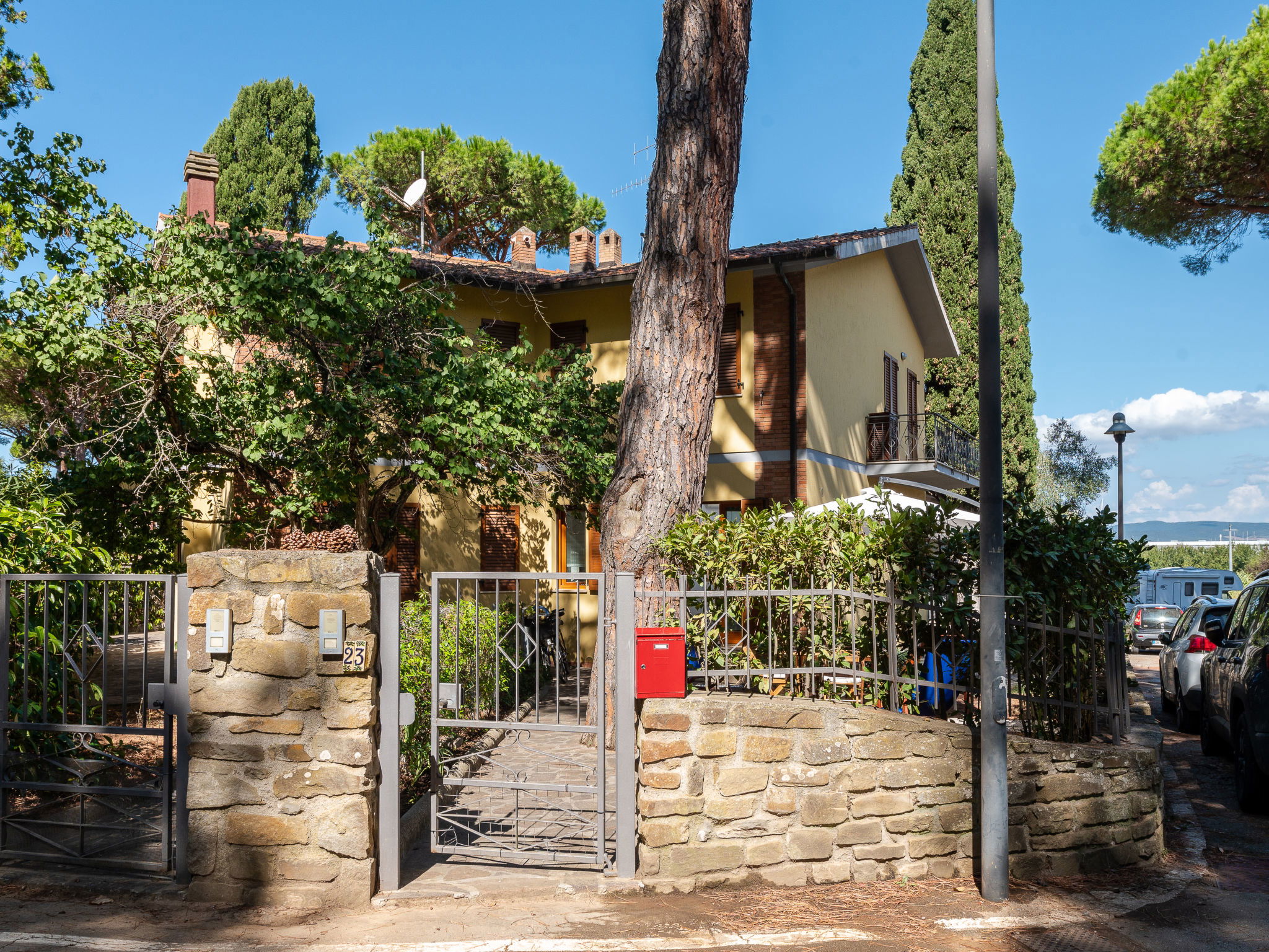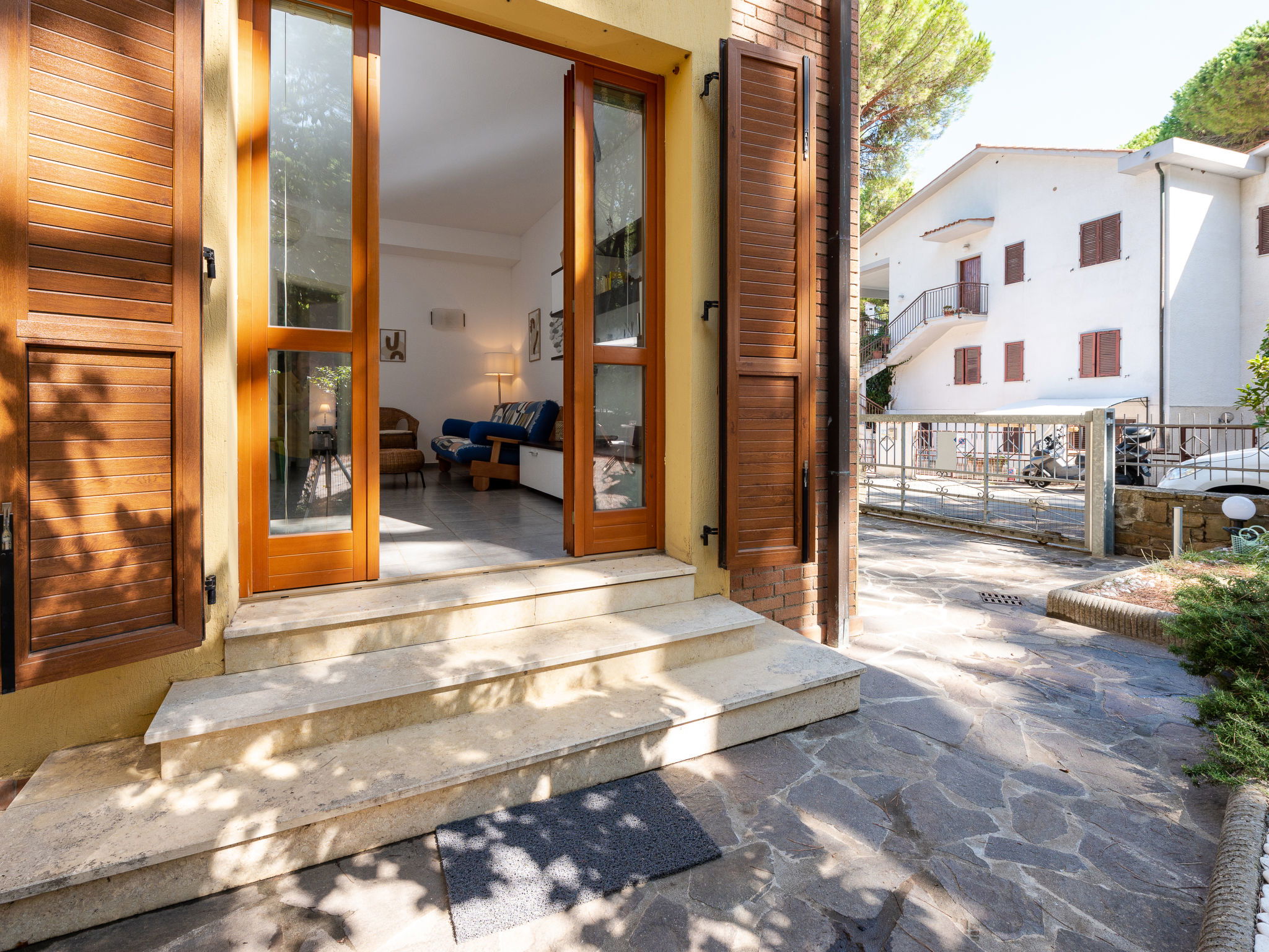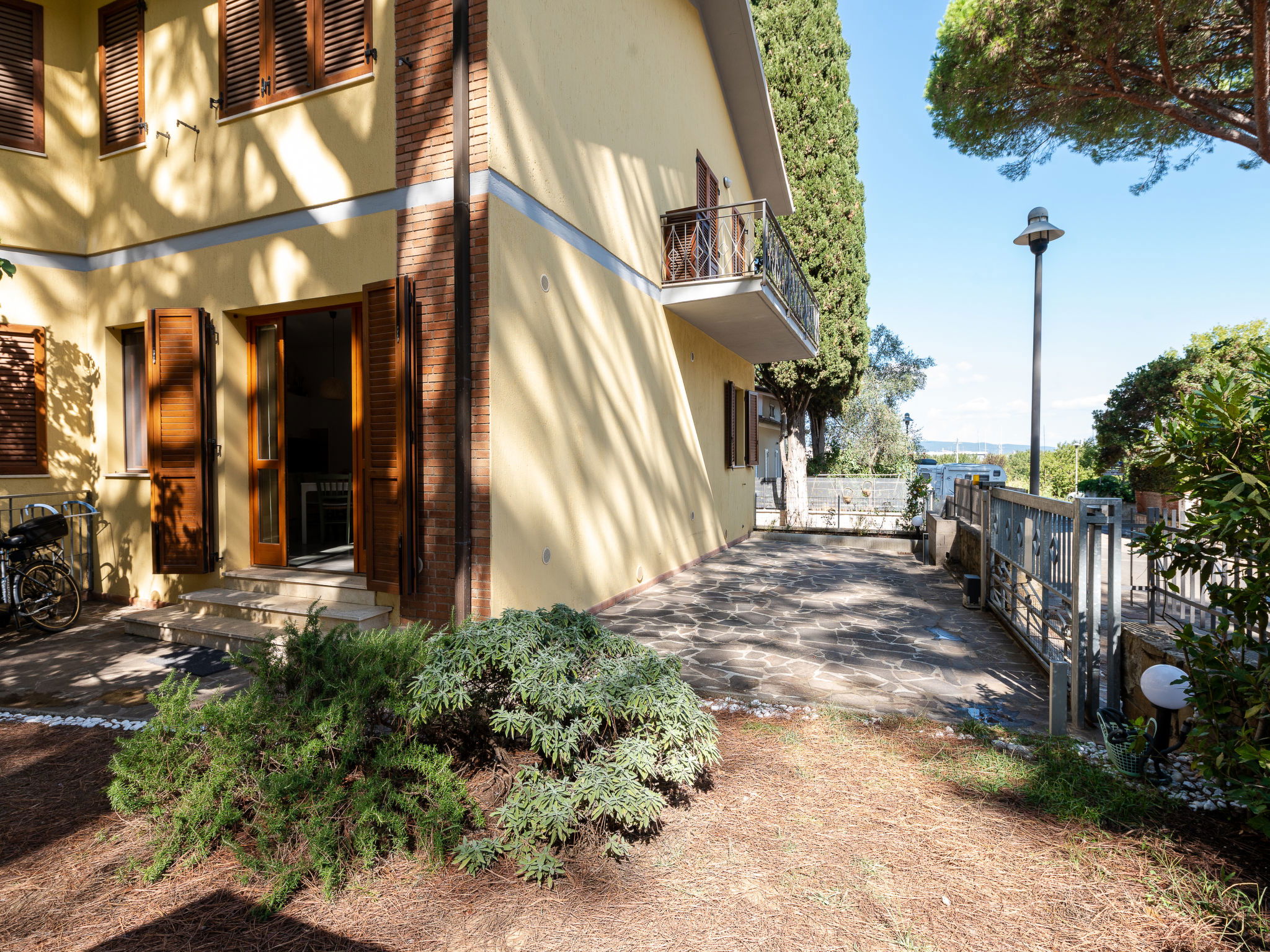 Cosy house, 2 storeys. 3 apartments in the property. In the hamlet Portiglioni 5 km from the centre of Follonica, in a quiet position in the residential district, 400 m from the sea, 1.2 km from the beach, in the countryside. Private: natural garden 50 m2 (fenced). Garden furniture. In the house: washing machine. Parking at the house on the premises, public parking on the road. Shop, grocery, supermarket, restaurant, bar, café, bicycle rental 300 m, bus stop "Collacchie" 1.7 km, railway station "Follonica" 6.5 km, sandy beach "Puntone" 1.2 km. Marina 300 m, sailing school 1.2 km, riding stable 100 m, walking paths from the house 20 m, children's playground 30 m. Nearby attractions: Cala Violina 5 km, Scarlino 8 km, Castiglione della Pescaia 18 km, Punta Ala 17 km, Massa Marittima 24 km. Well-known lakes can easily be reached: Accesa 22 km. Hiking paths: Riserva Naturale di Scarlino 20 m.