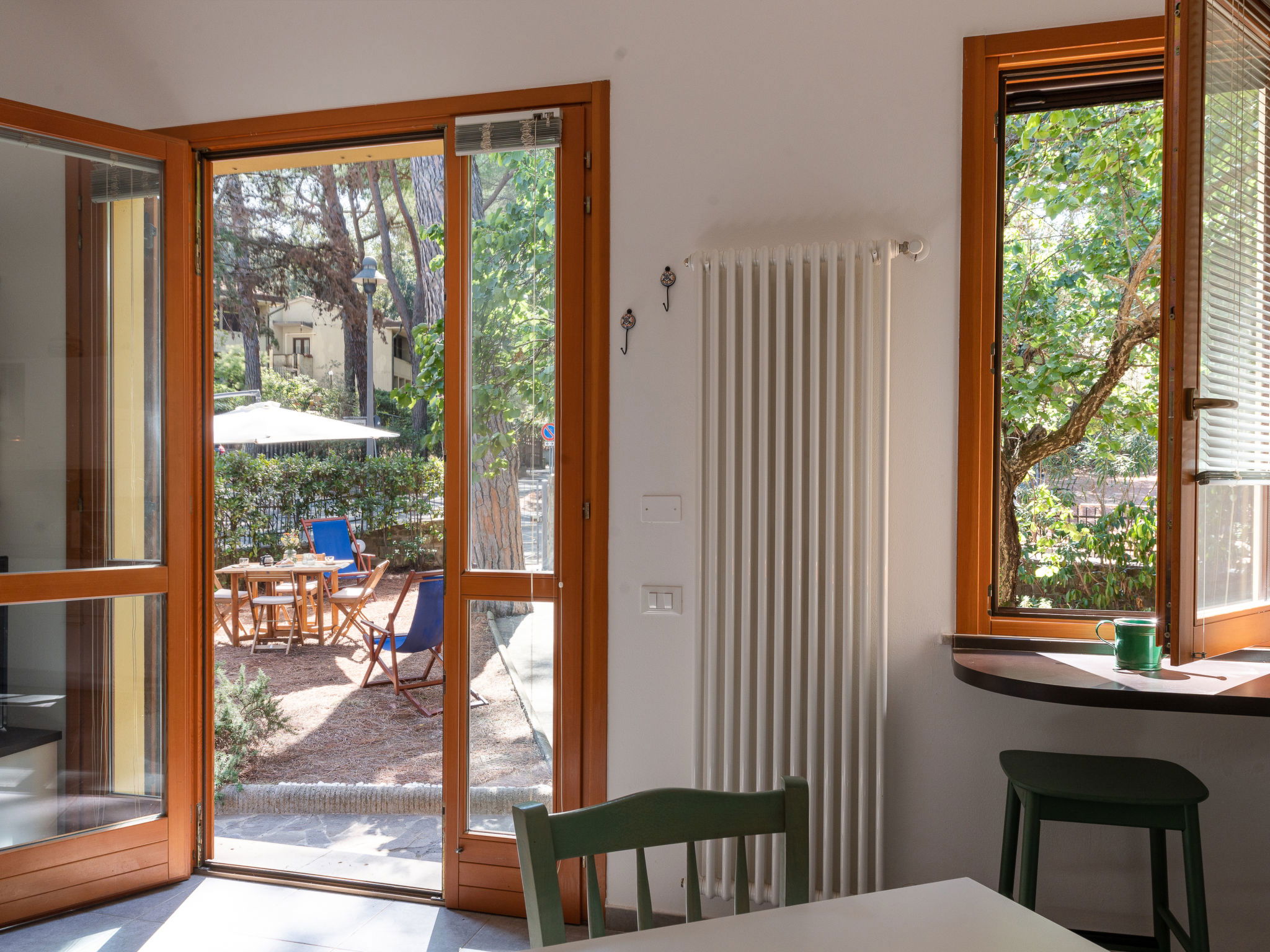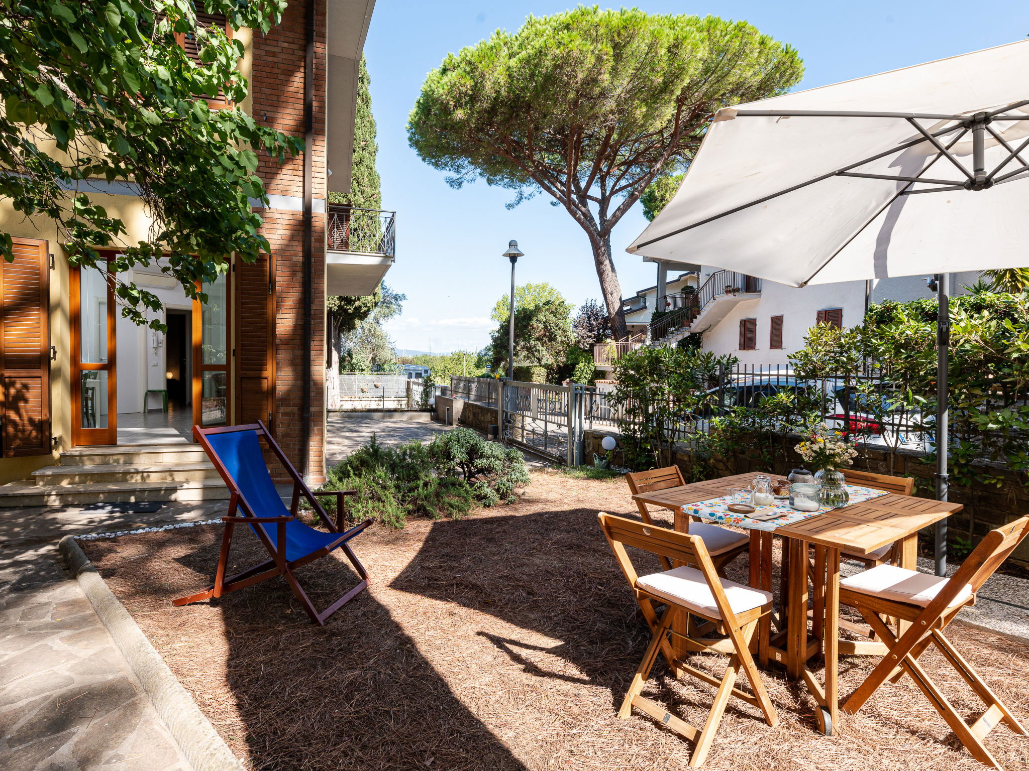 "Il Giglio", 3-room apartment 70 m2, on the ground floor. Comfortable and cosy furnishings: living/dining room with 1 double sofabed, dining table, dining nook, TV and air conditioning. Exit to the garden. 1 room with 1 french bed (140 cm), air conditioning. 1 double bedroom with TV and air conditioning. Open kitchen (oven, dishwasher, 4 induction hot plates, toaster, kettle, microwave, electric coffee machine). Exit to the garden. Shower/bidet/WC. Patio. Facilities: washing machine, mosquito net, baby cot for up to 2 year olds (extra), hair dryer. Internet (WiFi, free). Parking (fenced) at the house. Please note: maximum 1 pet/ dog allowed. Private entrance. Smart-TV. IT053024C2JUMIILH2