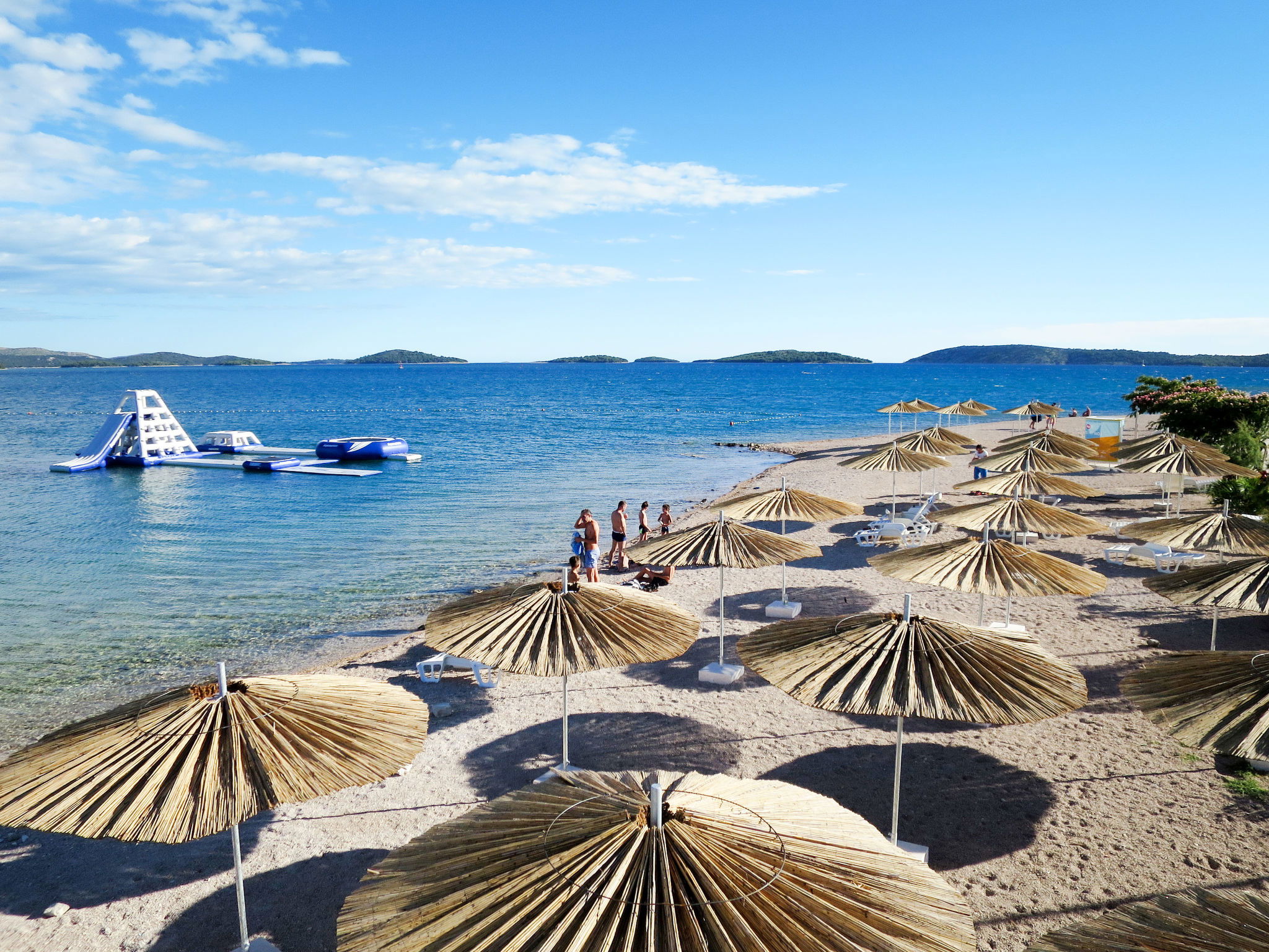 Apartment house "Andriana". 2.5 km from the centre of Grebaštica, 10 km from the centre of Primošten, 20 km from the centre of Šibenik, 10 m from the sea, 10 m from the beach, in a cul-de-sac. For shared use: property 600 m2 with trees. Terrace, barbecue. In the house: internet access. Parking on the premises. Shop 2.5 km, supermarket 10 km, restaurant 10 km, bus stop 900 m, concrete beach 10 m. Please note: airfield 45 km from the property.