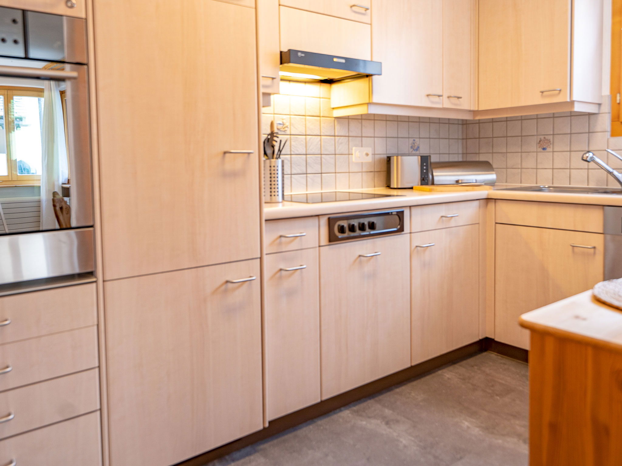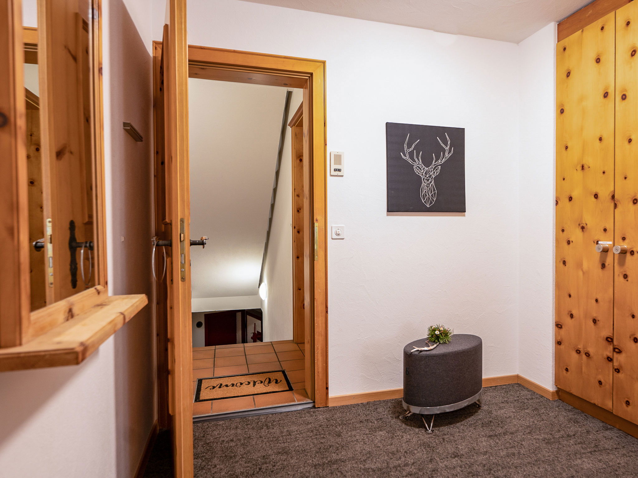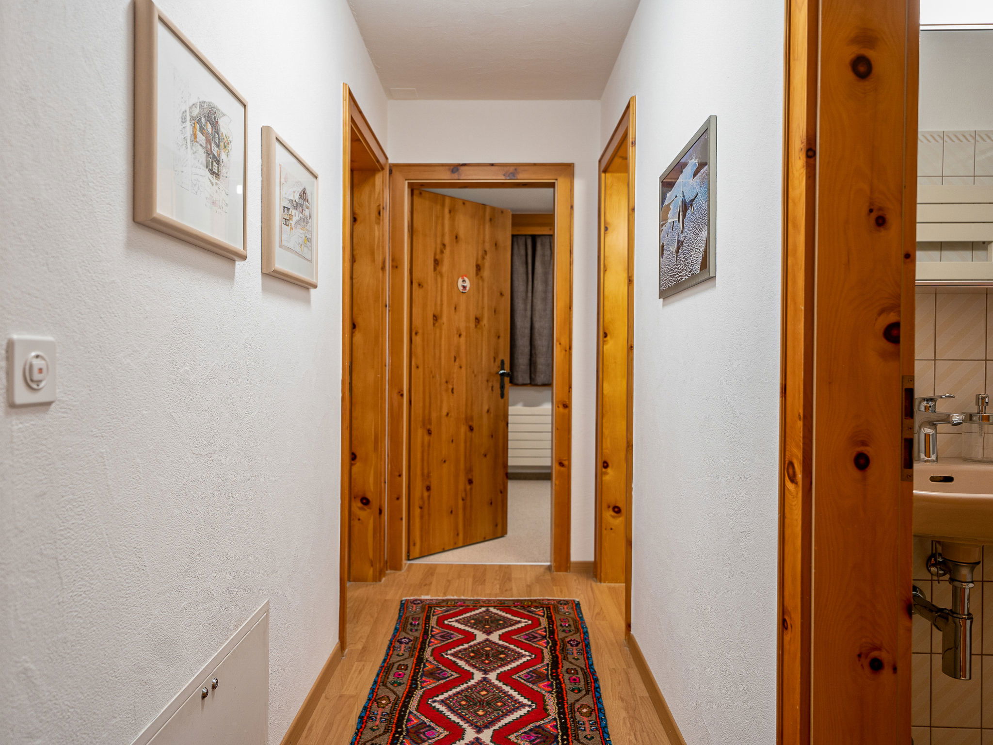 "Chesa Auricula 1.1", 3-room apartment 92 m2, on the ground floor. Spacious and bright, cosy furnishings: living/dining room with TV (flat screen). Exit to the terrace. 1 room with 2 beds (90 cm, length 200 cm). 1 double bedroom with 1 double bed (2 x 90 cm, length 200 cm). Kitchen (oven, dishwasher, 4 ceramic glass hob hotplates, toaster, kettle, microwave, freezer, electric coffee machine, Capsules for coffee machine (Nespresso) extra, fondue Set (cheese)). Bathroom, shower/WC. Heating. Patio 10 m2. Terrace furniture. Side view of the mountains and the resort. Facilities: iron, hair dryer. Internet (WiFi, free). Garage space n 11 (1 car), height 205 cm, width 220 cm. Please note: suitable for families. Non-smokers only, non-smoking house. Maximum 1 pet/ dog allowed.