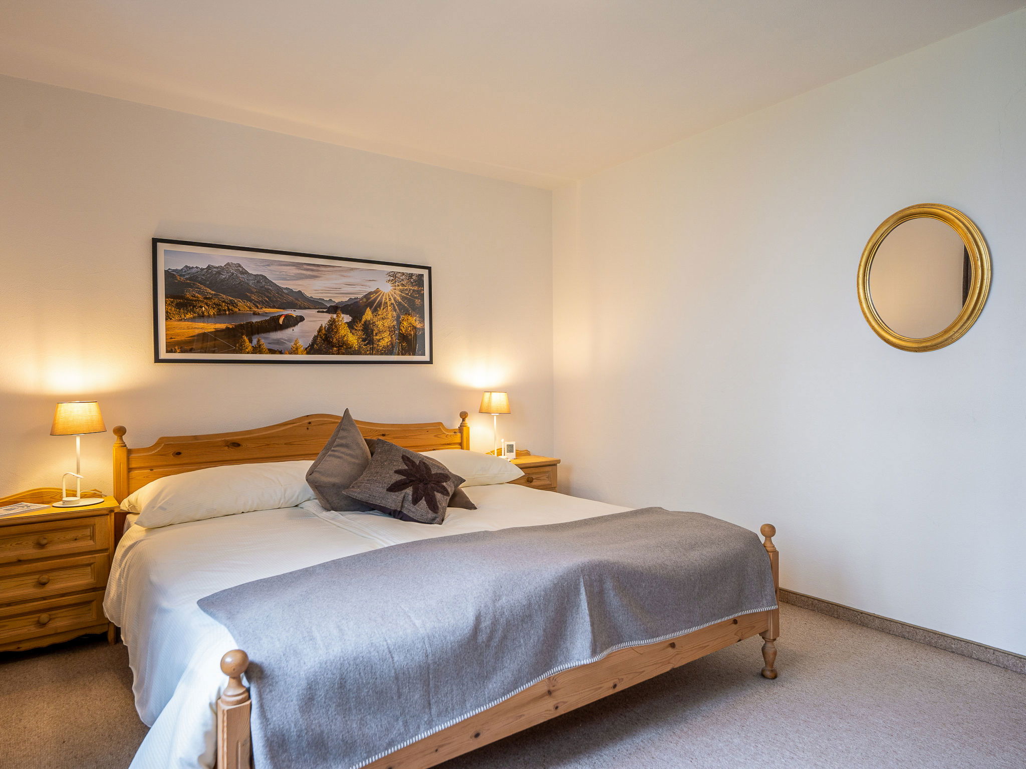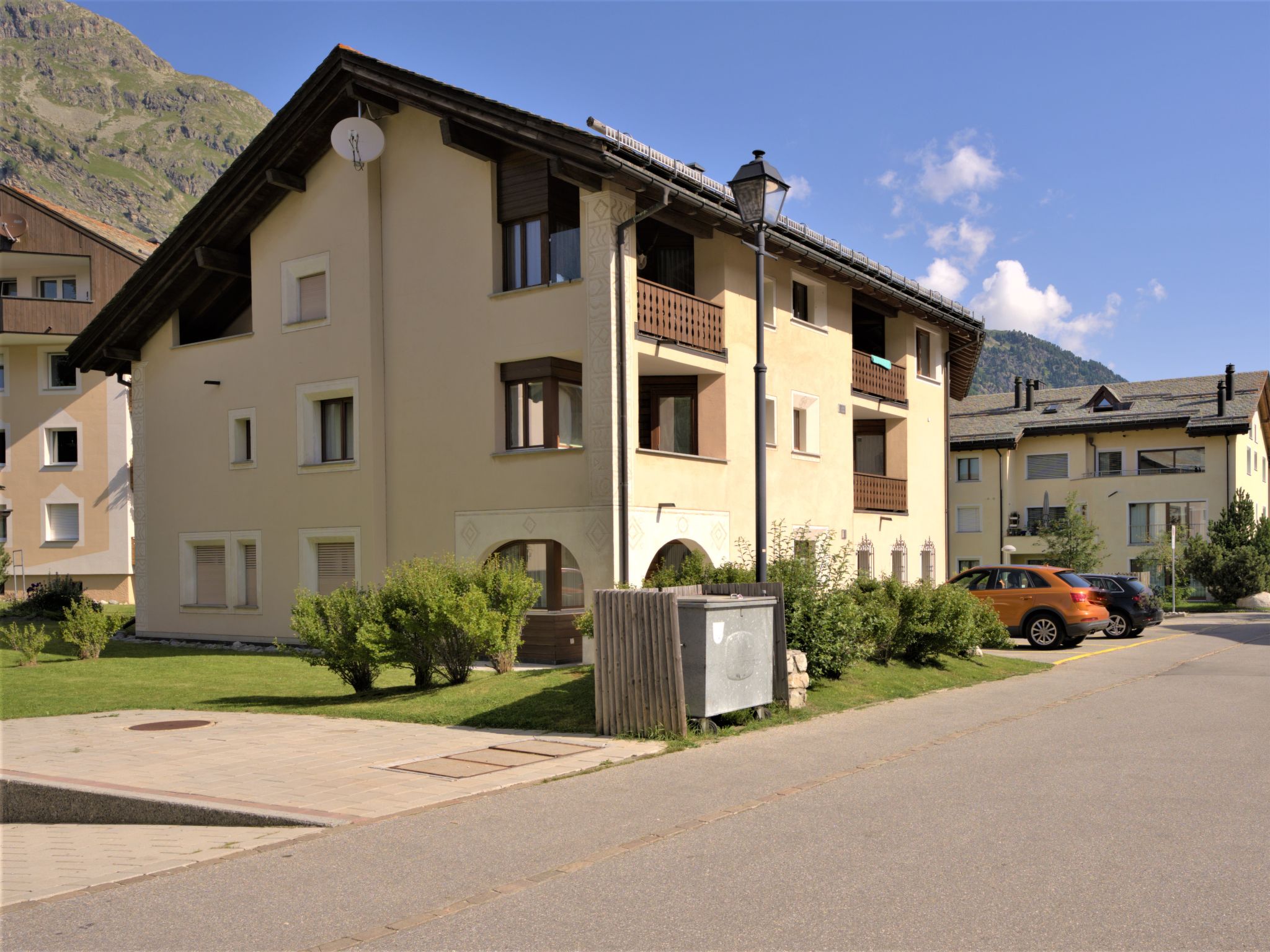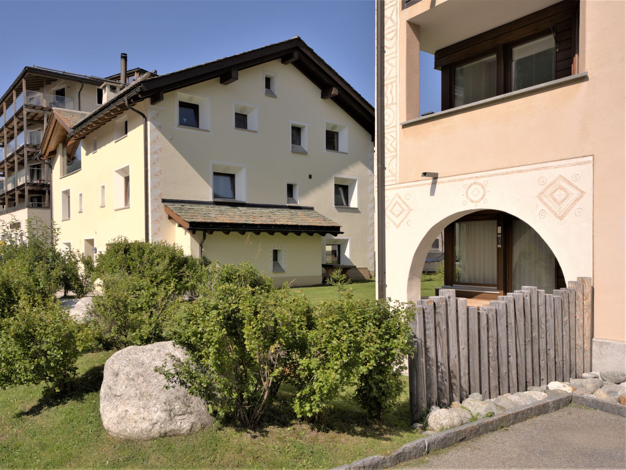 Sils: Comfortable apartment house "Chesa Auricula", 3 storeys. In a central position in the residential district, 600 m from the skiing area, in a cul-de-sac. For shared use: meadow. In the house: central heating system, washing machine (for shared use, extra), drying room. Communal covered parking at the house. Grocery 350 m, supermarket 10 km, restaurant 50 m, bus stop 270 m, railway station 11 km, indoor swimming pool 10 km. Tennis 450 m, riding stable 16 km, cable car, ski lift 600 m, ski school 450 m, sled run 16 km, cross country ski track 100 m, ice rink, children's playground 450 m. Well-known ski regions can easily be reached: Corvatsch - Furtschellas 600 m, Corviglia 11 km. Well-known lakes can easily be reached: Silsersee 1.4 km, St. Moritz See 10 km, Silvaplanasee 1 km. Hiking paths: Furtschellas, Via Engadina. Please note: car recommended. Loading and unloading of baggage is possible at the holiday house. Neighbourhood highly sensitive to noise. Quietness and good behaviour expected.