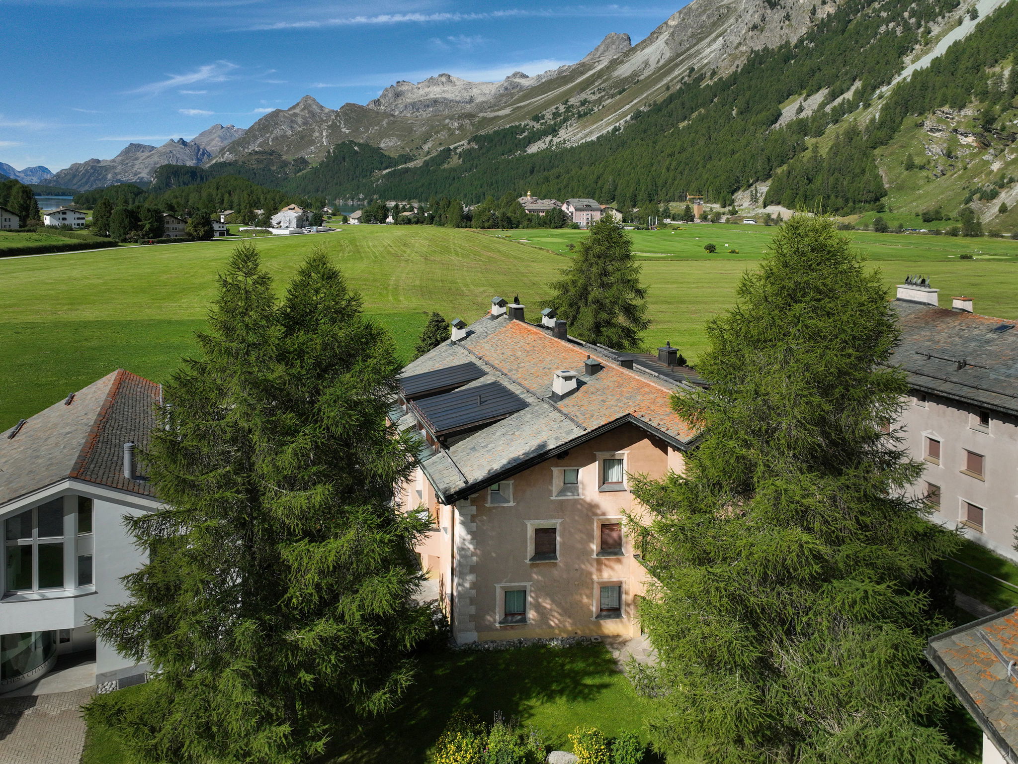 Sils Maria 10 km from St. Moritz: Apartment house "Chesa Prasüra". On the outskirts, in a quiet position, 1.5 km from the lake. In the house: storage room for skis, central heating system, washing machine, tumble dryer (for shared use). Communal covered parking. Grocery 100 m, restaurant 500 m, bus stop "Sils Maria, Seglias" 300 m, indoor swimming pool 1 km, lake Silser See 1.5 km. Golf course (18 hole) 17 km, surf school 7 km, tennis 1.2 km, indoor tennis centre 1.2 km, minigolf 1.2 km, riding stable 9 km, walking paths from the house 100 m, cycle lane 300 m, cable car 900 m, ski lift 900 m, ski rental 300 m, ski bus stop 300 m, ski school 800 m, children's ski school 700 m, sled run 1.2 km, cross country ski track 100 m, ice rink 700 m, children's playground 700 m. Nearby attractions: Nietzsche Haus 700 m, Robbi Museum 1 km, Segantini Museum in St. Moritz 10 km. Well-known ski regions can easily be reached: Furtschellas - Corvatsch 900 m, Corviglia 10 km, Diavolezza - Lagalb 30 km. Well-known lakes can easily be reached: Silser See 1.5 km, Silvaplaner See 1.5 km, St. Moritzer See 10 km. Hiking paths: Val Fex & Furtschellas, Via Engiadina 1 km, Silser & Silvaplaner See 1.5 km. Please note: no lift. Ski bus (free of charge). Free ski bus service to the ski region Furtschellas.