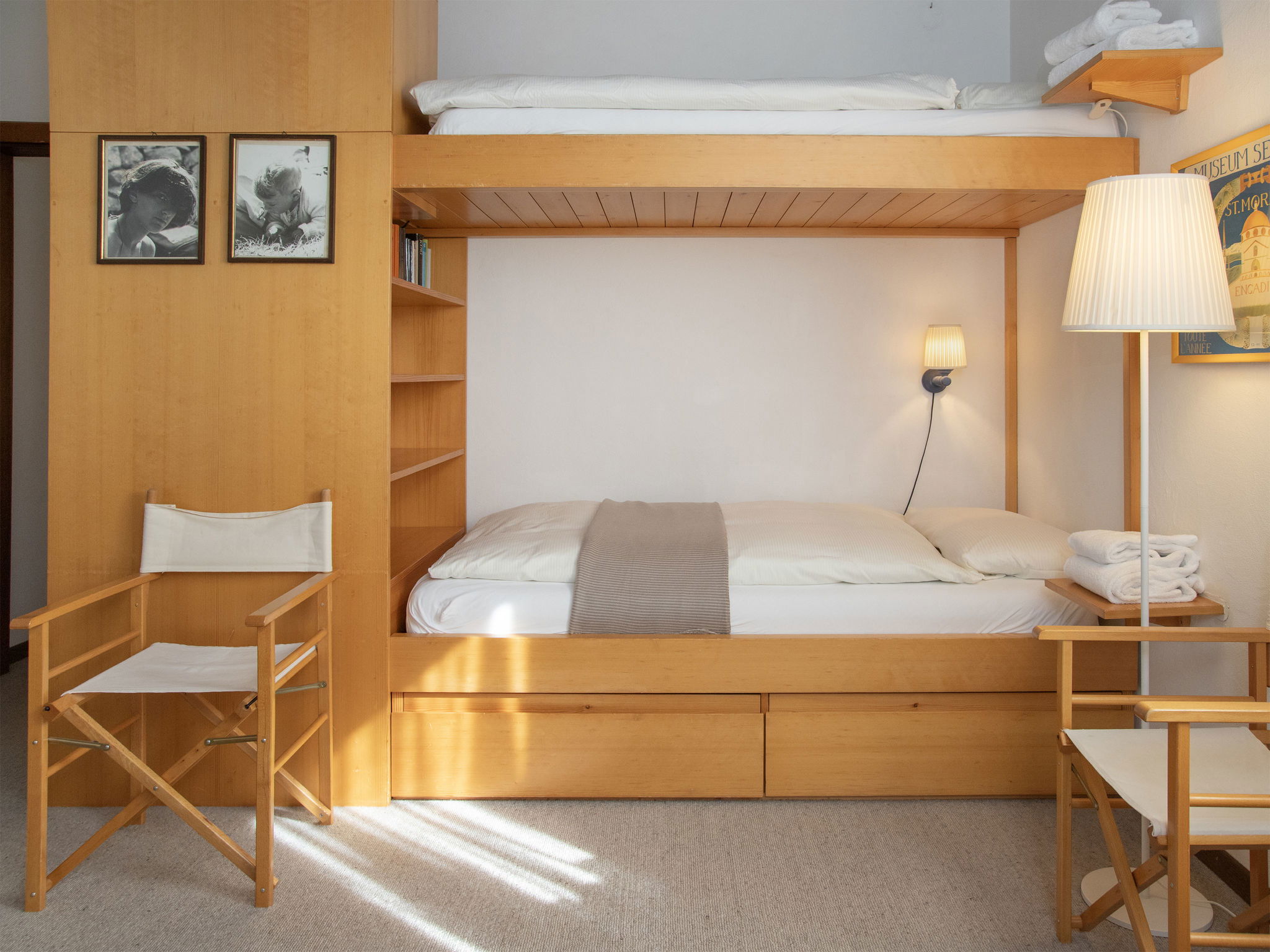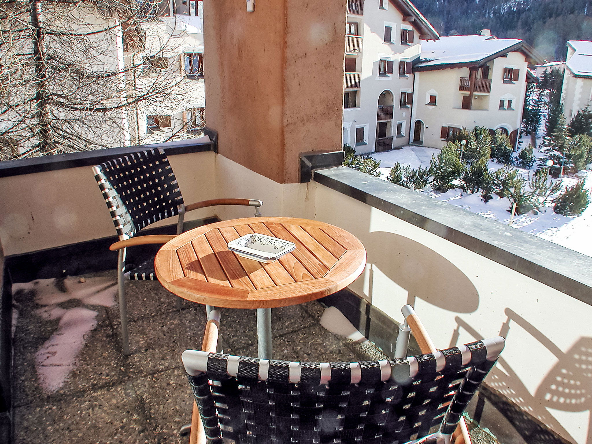 "Chesa Prasüra 10", 3-room apartment 80 m2, on the top floor. Very comfortable and cosy furnishings: living/dining room with open-hearth fireplace, TV and radio. Exit to the balcony, south facing position. 1 room with 1 double bed (1 x 160 cm, length 200 cm). 1 room with 2 beds (85 cm, length 180 cm), 1 x 2 bunk beds (85 cm, length 180 cm), bath/WC. Kitchen (4 hot plates, oven, dishwasher, toaster, kettle, electric coffee machine, Capsules for coffee machine (Nespresso) extra, raclette grill, fondue Set (chinoise)). Bath/WC. Small balcony. Terrace furniture. Partial view of the resort. Facilities: hair dryer. Internet (WiFi, free). Garage space n 68, height 230 cm, width 220 cm. Please note: suitable for families. Non-smokers only. Maximum 1 pet/ dog allowed. No lift.