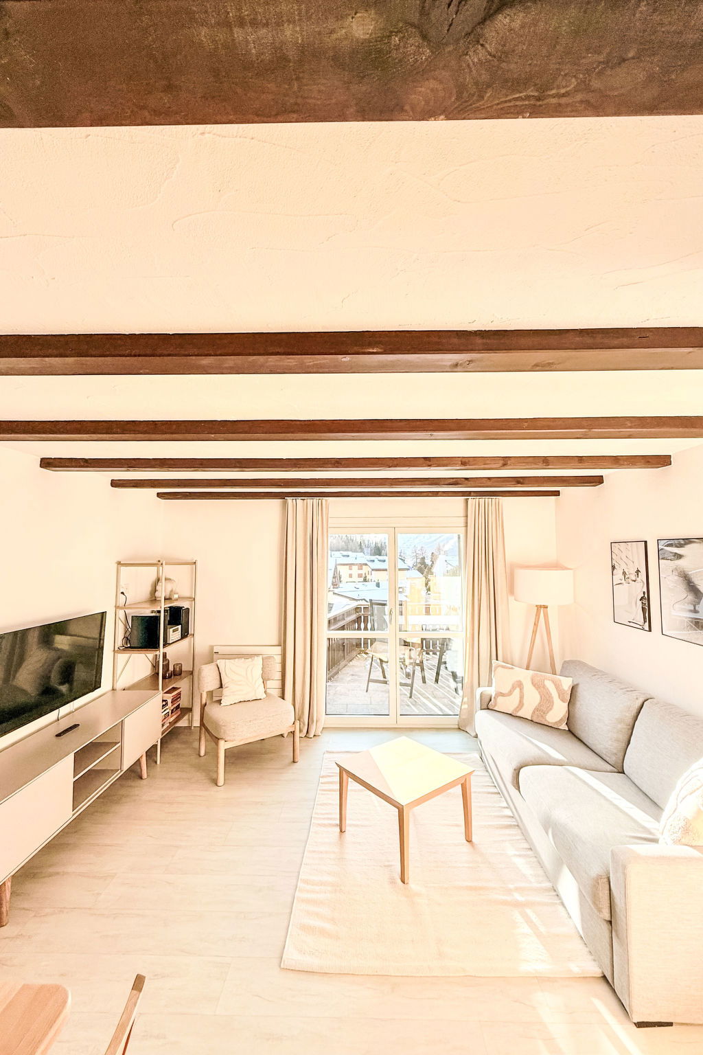 "Residenza Chesa Margun 58-5", 2-room apartment 55 m2. Tasteful and cosy furnishings: living/dining room with 1 double sofabed, TV, flat screen and radio. Exit to the balcony. 1 room with 2 beds (200 cm, length 200 cm). Open kitchen (oven, dishwasher, 4 ceramic glass hob hotplates, electric coffee machine, Capsules for coffee machine (Dolce Gusto) extra, raclette grill, fondue Set (cheese)). Shower/WC. Balcony, south facing position. Very beautiful view of the mountains and the resort. Facilities: Internet (WiFi, free). Maximum 1 pet/ dog allowed.