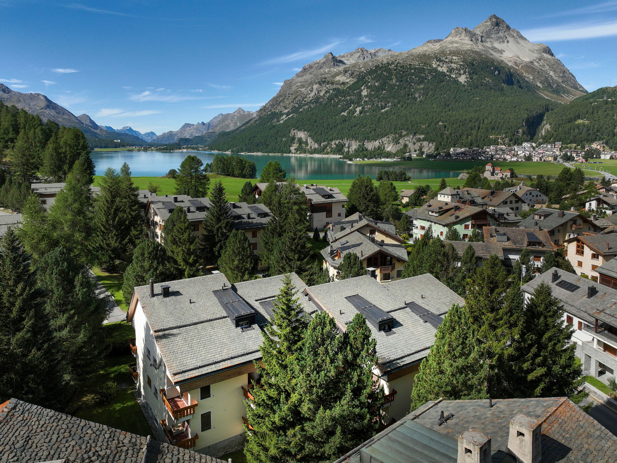 Surlej: Apartment house "Chesa Murtel", 3 storeys. In the centre of Surlej, in the residential district, 400 m from the edge of the forest, 800 m from the lake. In the house: storage room for skis, washing machine, tumble dryer (for shared use, extra), drying room. Communal covered parking space n 13 at the house at 50 m. Shop 1.3 km, grocery 1.3 km, restaurant 300 m, café 240 m, bicycle rental 70 m, bus stop "Surlej Parkplatz" 200 m, indoor swimming pool 6 km. Golf course (18 hole) 13 km, surf school 1.6 km, tennis 1.6 km, indoor tennis centre 6 km, minigolf 6 km, riding stable 3.6 km, sports centre 1.6 km, walking paths from the house 100 m, cycle lane 400 m, cable car 500 m, ski lift 50 m, ski rental 70 m, ski bus stop 60 m, children's ski school, sled run 12 km, cross country ski track 200 m, ice rink 1.6 km. Well-known ski regions can easily be reached: Corvatsch - Furtschellas 500 m, Corviglia St. Moritz 6 km. Well-known lakes can easily be reached: Silvaplana See 600 m, Champferer See 600 m, St. Moritz See 6 km. Please note: no lift. Not suitable for small children. In case of good snow conditions, the house is accessible on skis.