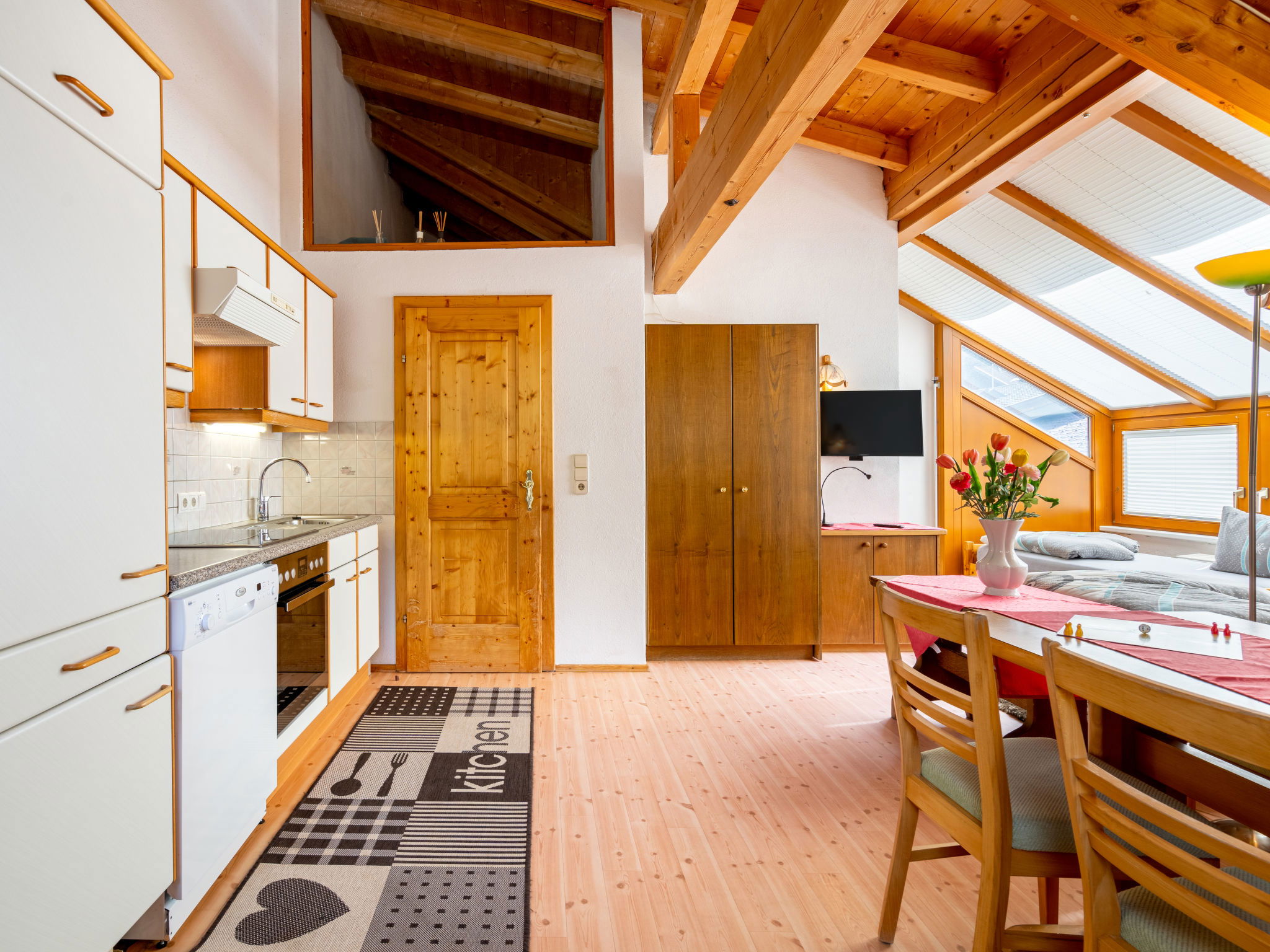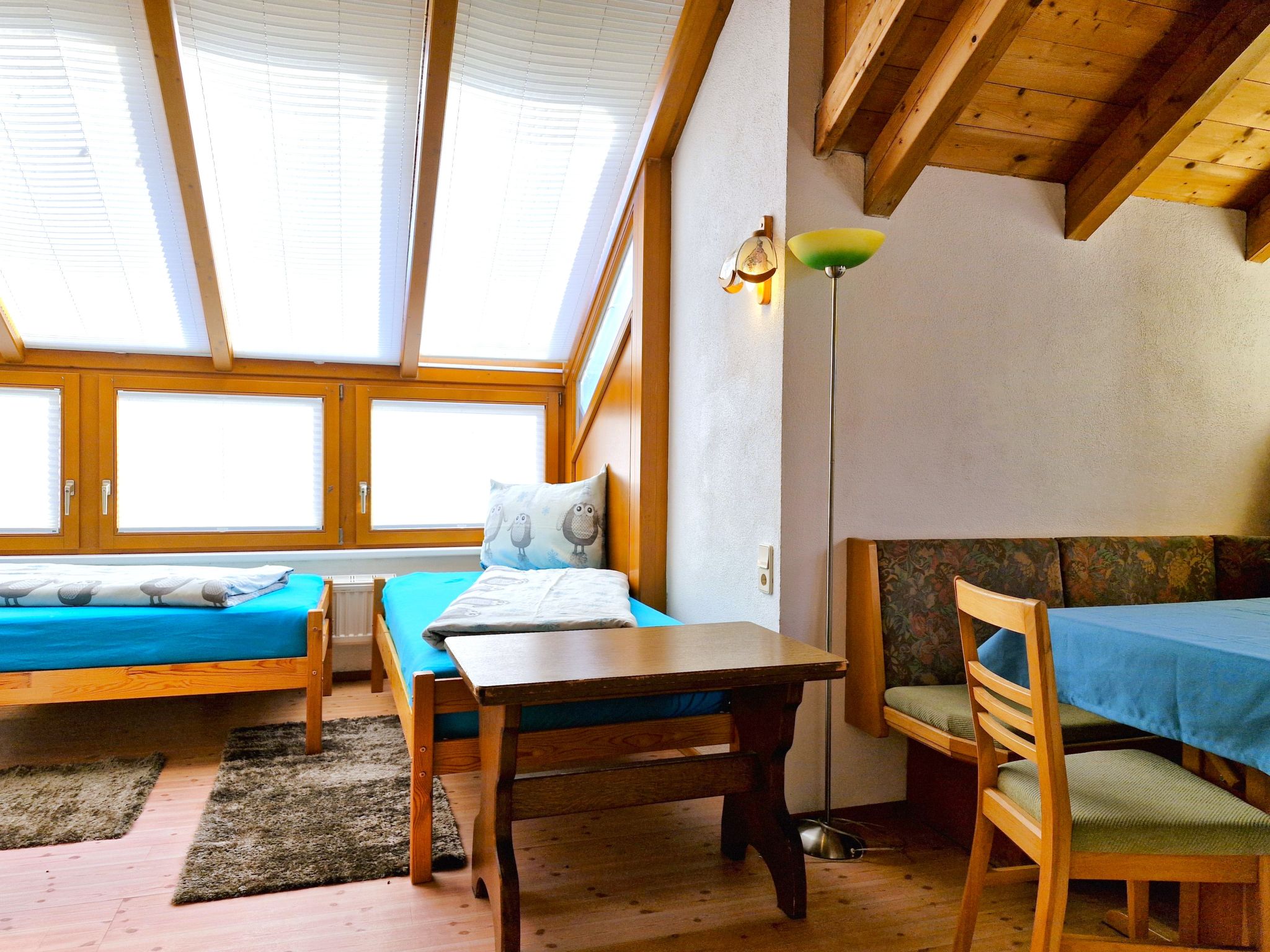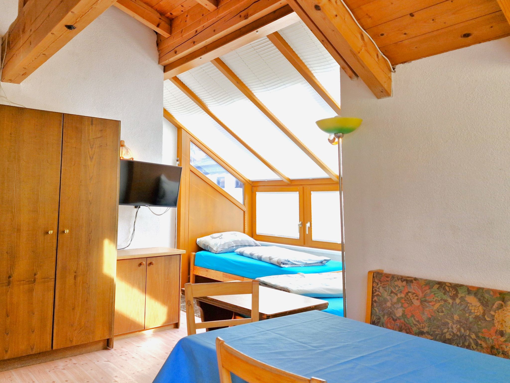 "Rosi Studio", 1-room apartment 35 m2, on the top floor. Bright: 2nd upper floor: living/sleeping room with 2 beds, dining nook and satellite TV. Exit to the balcony. Kitchenette (4 hot plates, microwave, electric coffee machine). Shower/WC. Oil heating. Please note: non-smokers only. Maximum 2 pets/ dogs allowed.