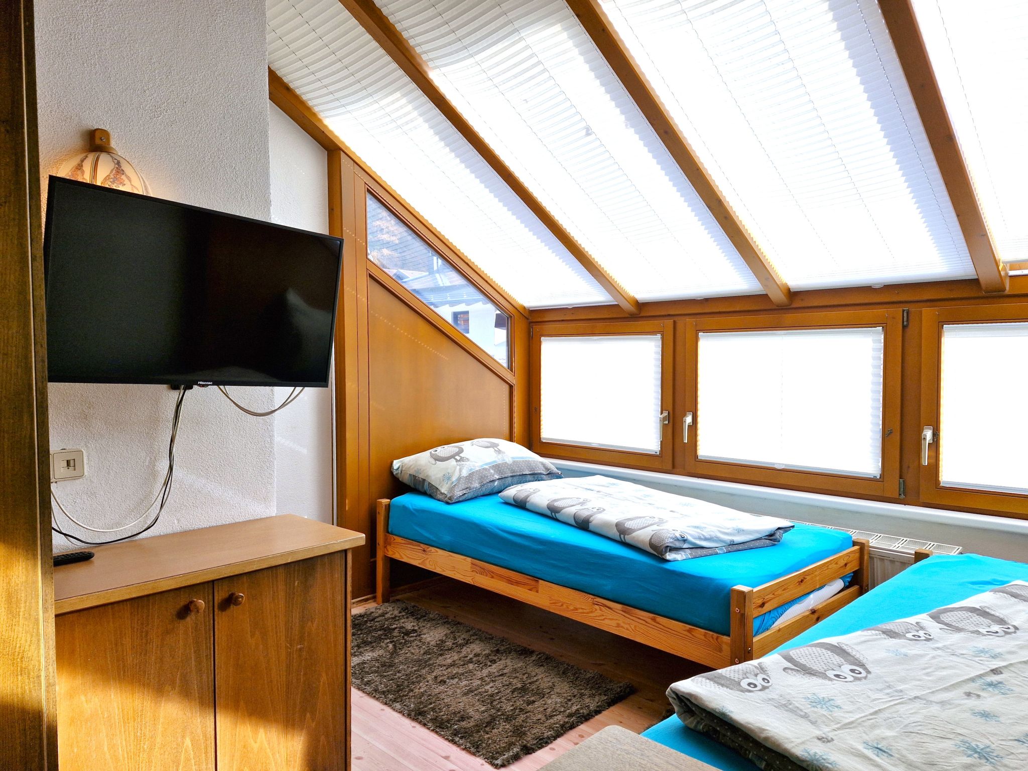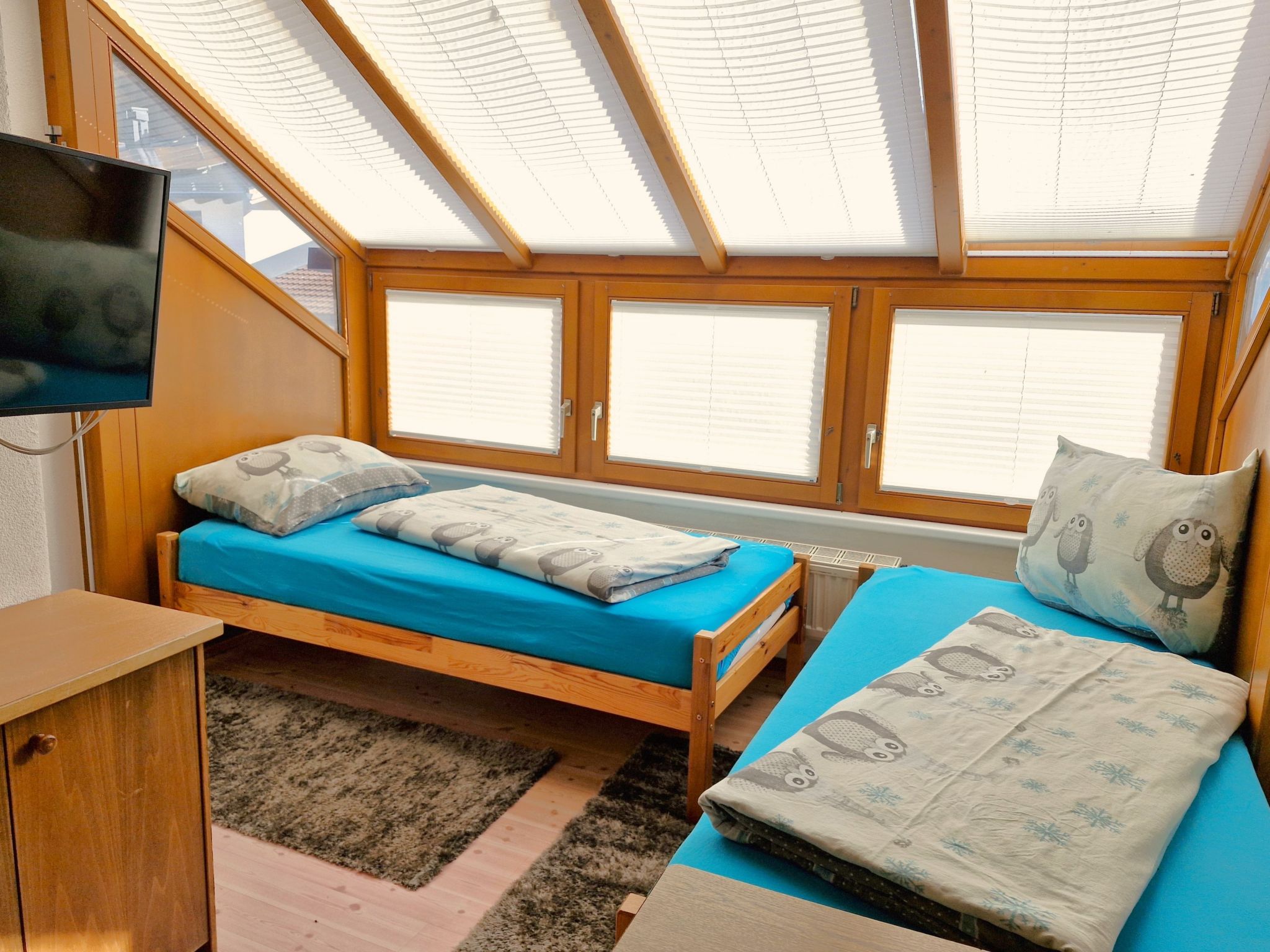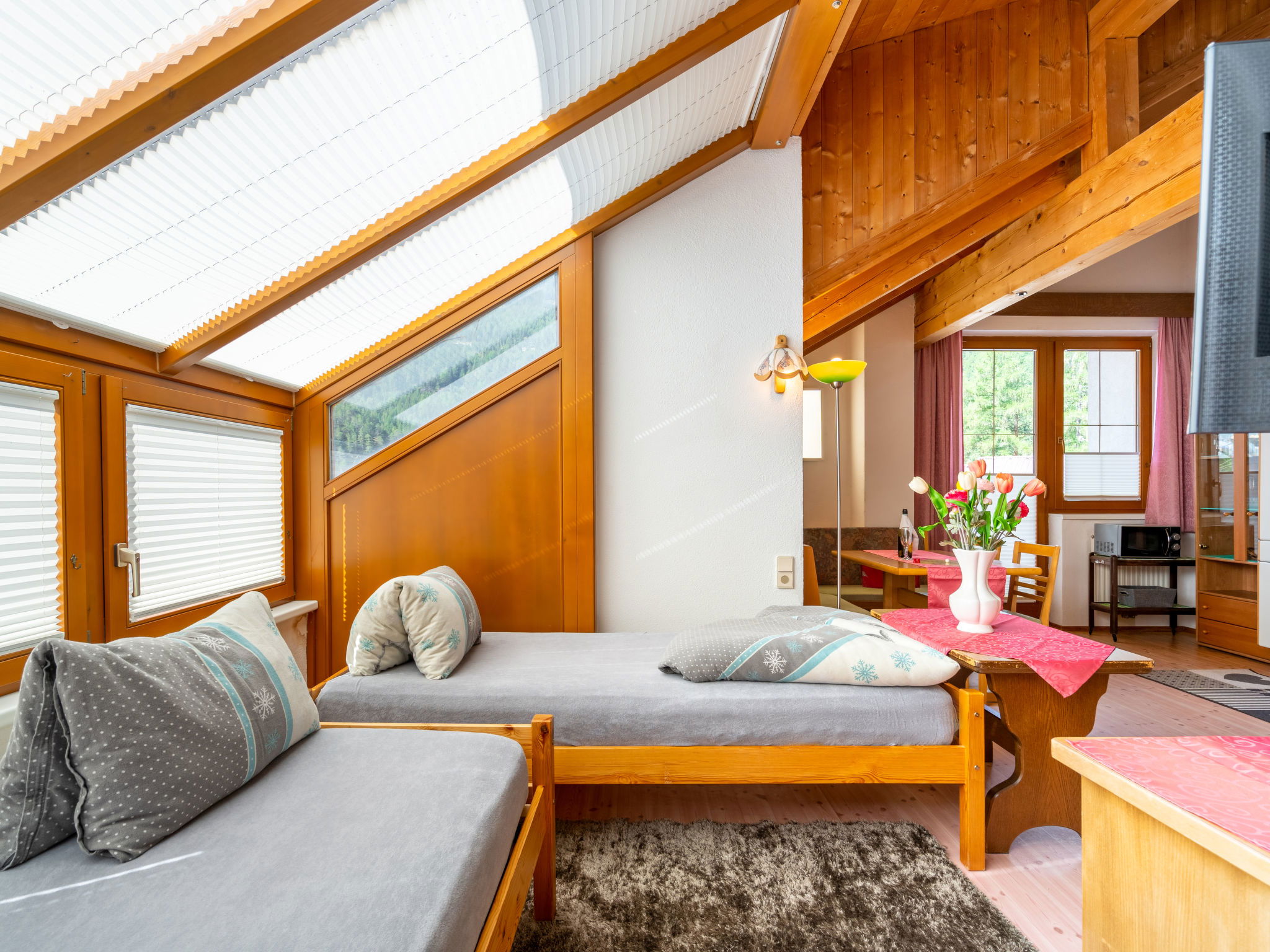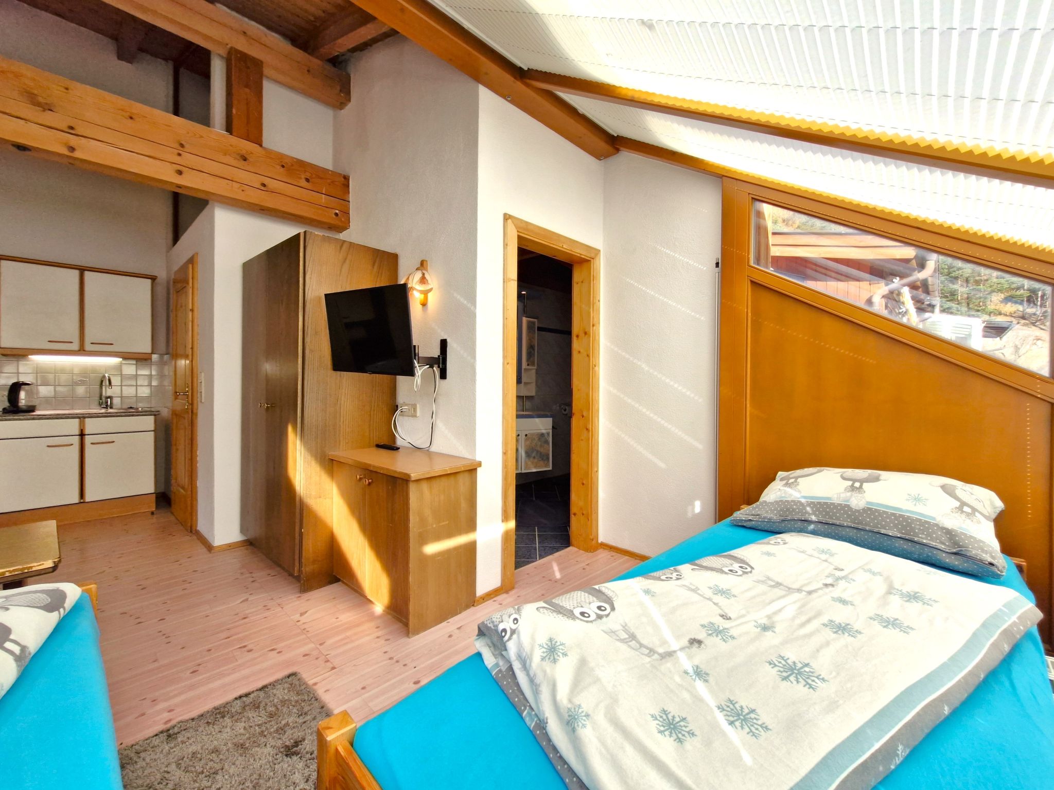 "Rosi Studio", 1-room apartment 35 m2, on the top floor. Bright: 2nd upper floor: living/sleeping room with 2 beds, dining nook and satellite TV. Exit to the balcony. Kitchenette (4 hot plates, microwave, electric coffee machine). Shower/WC. Oil heating. Please note: non-smokers only. Maximum 2 pets/ dogs allowed.