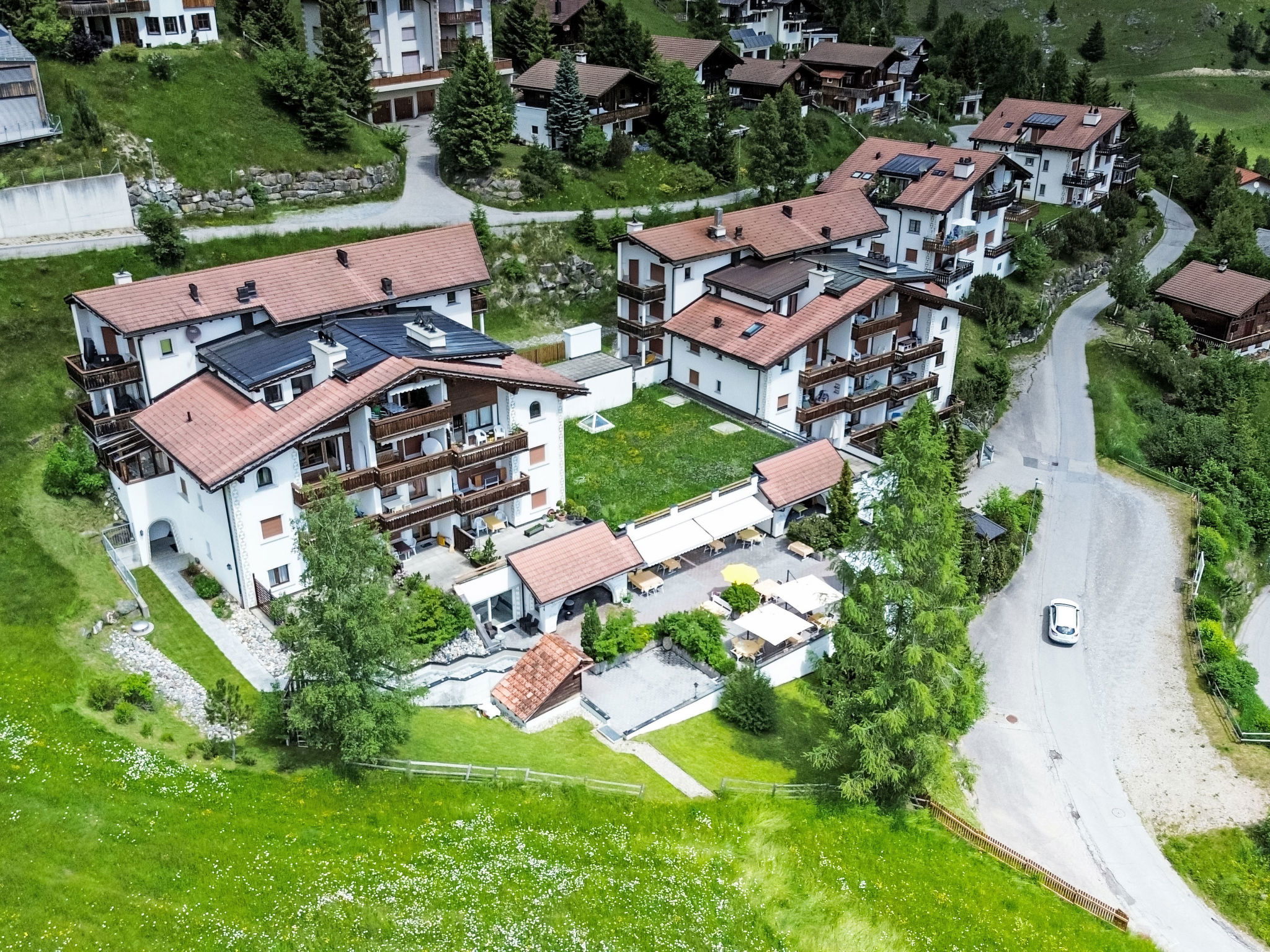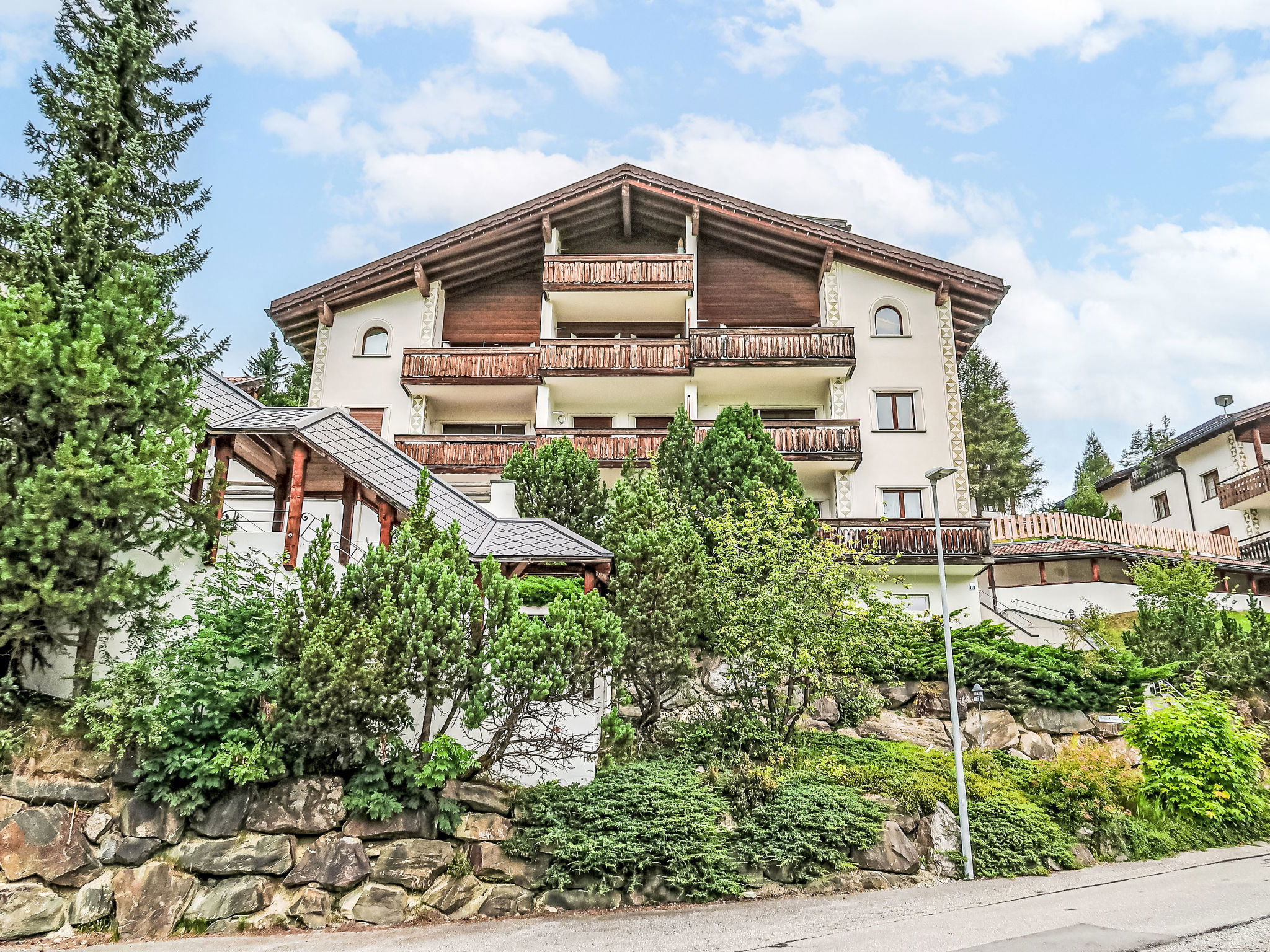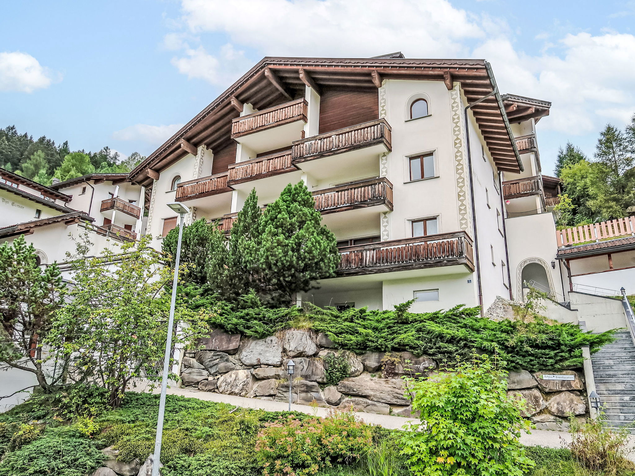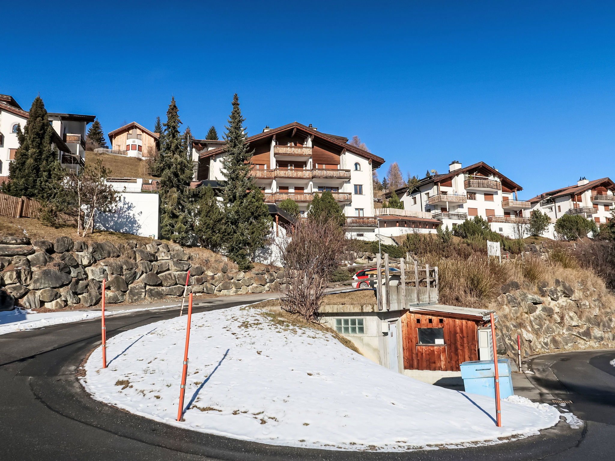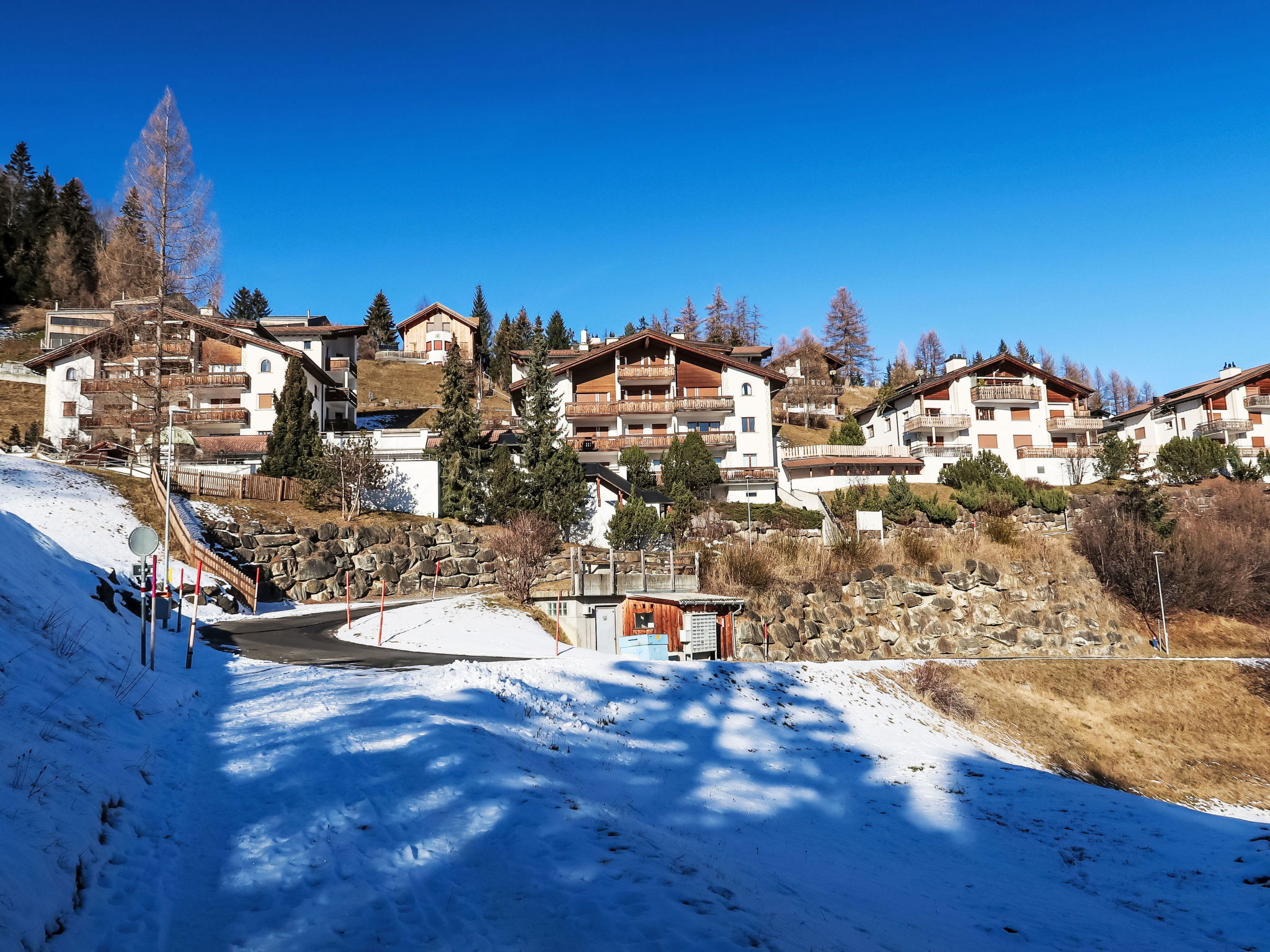 Salouf 4 km from Savognin: Child friendly, cosy apartment house "Tga Toissa", 1'300 m a.s.l., 4 storeys. Above Salouf, in a quiet, sunny position on a slope, 4 km from the skiing area, in the countryside, south facing position. For shared use: indoor pool (10 x 5 m). In the house: sauna, playroom, table football, storage room for skis, central heating system, washing machine, tumble dryer (for shared use). Motor access to the house (mountain road). Stepped path (30 steps) to the house. Parking at the house, communal covered parking at the house. Grocery 1 km, supermarket 4 km, restaurant 4 km, bus stop "Salouf, Pulens" 350 m, bathing lake 4 km. Ski lift 4 km, skisport facilities 4 km, slopes 4 km, ski school 4 km, sled run 4 km, cross country ski track 4 km. Well-known ski regions can easily be reached: Savognin 4 km, Lenzerheide 18 km, St.Moritz 40 km. Hiking paths: Parc Ela. Please note: car recommended.