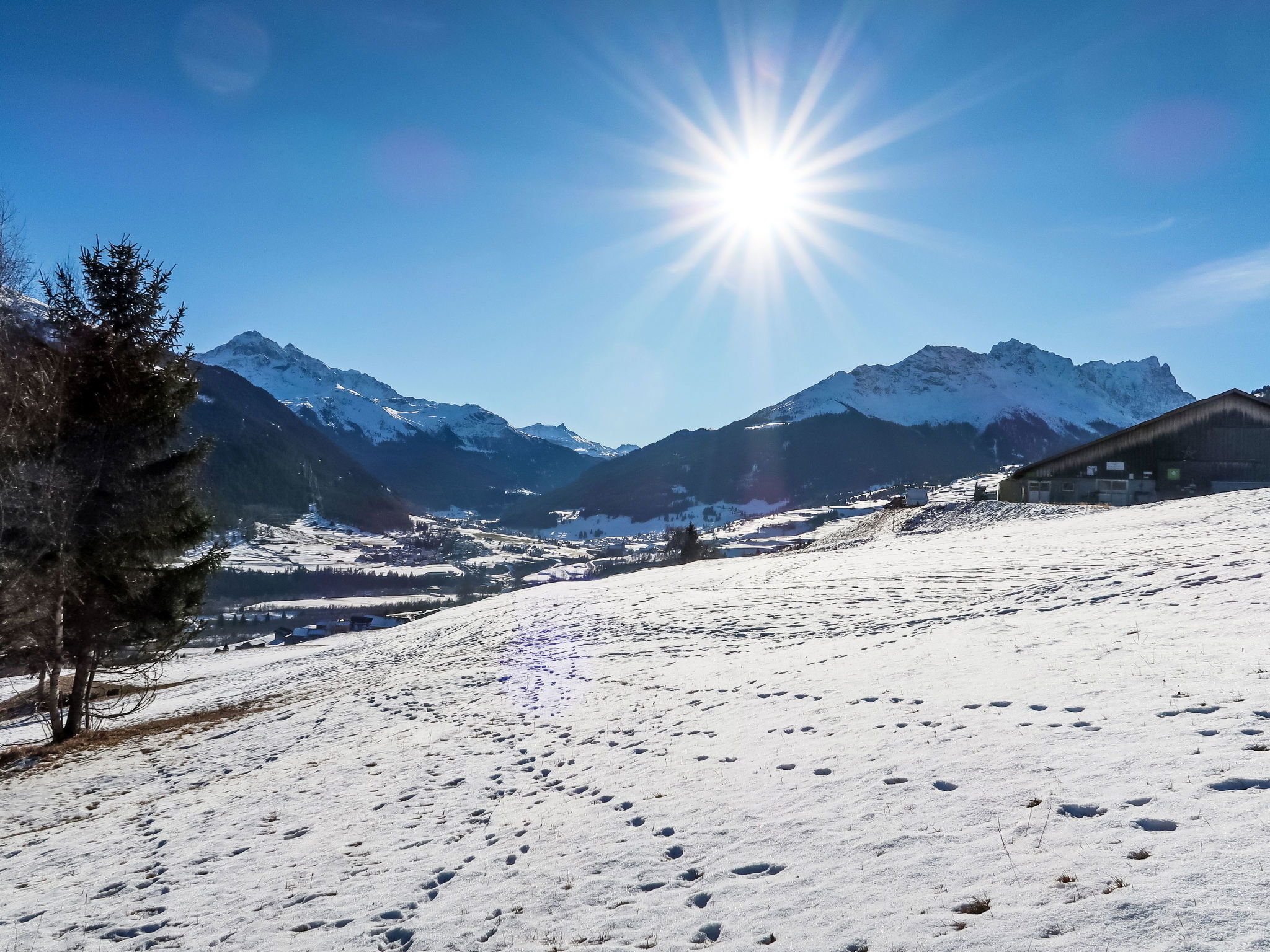 "Toissa A13", 2-room apartment 50 m2 on 3rd floor. Comfortable and cosy furnishings: living/dining room with cable TV (flat screen). Exit to the balcony. 1 double bedroom. Open kitchen (3 hot plates, oven, electric coffee machine, Capsules for coffee machine (Delizio) extra). Bath/WC. Balcony 8 m2, south facing position and west facing position. Balcony furniture. Beautiful view of the mountains, the valley and the countryside. Facilities: Internet (WiFi, free). Parking (1 car) at the house. Please note: non-smokers only. Maximum 1 pet/ dog allowed.