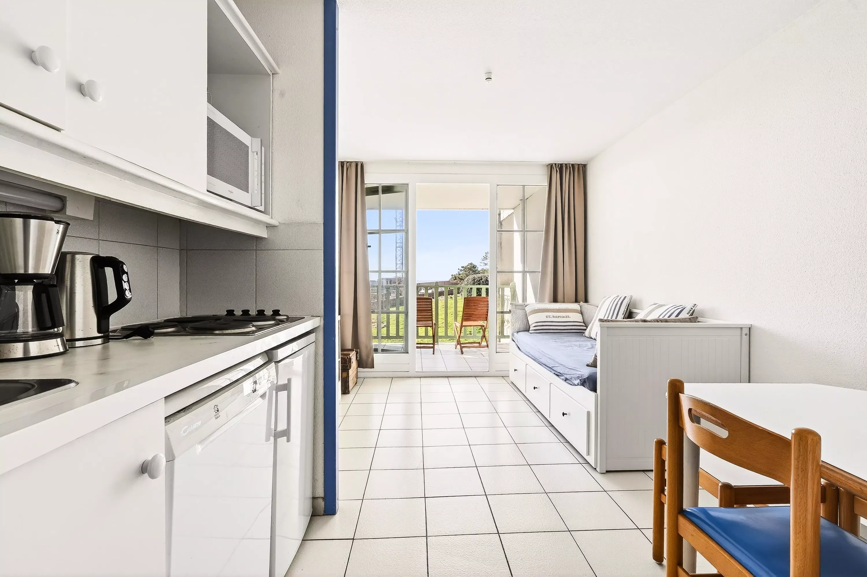 The advantages of your rental: Located on the 2nd floor, this apartment boasts a sea view and a beautiful south-facing aspect, ideal for enjoying a pleasant atmosphere throughout the day. It features a covered terrace extending into a south-facing garden, offering complete privacy and furnished with a table and chairs for enjoying the outdoors in complete tranquility. The functional layout includes a sleeping alcove with bunk beds and a welcoming living area with an open-plan kitchen. A comfortable property, perfect for a peaceful stay.