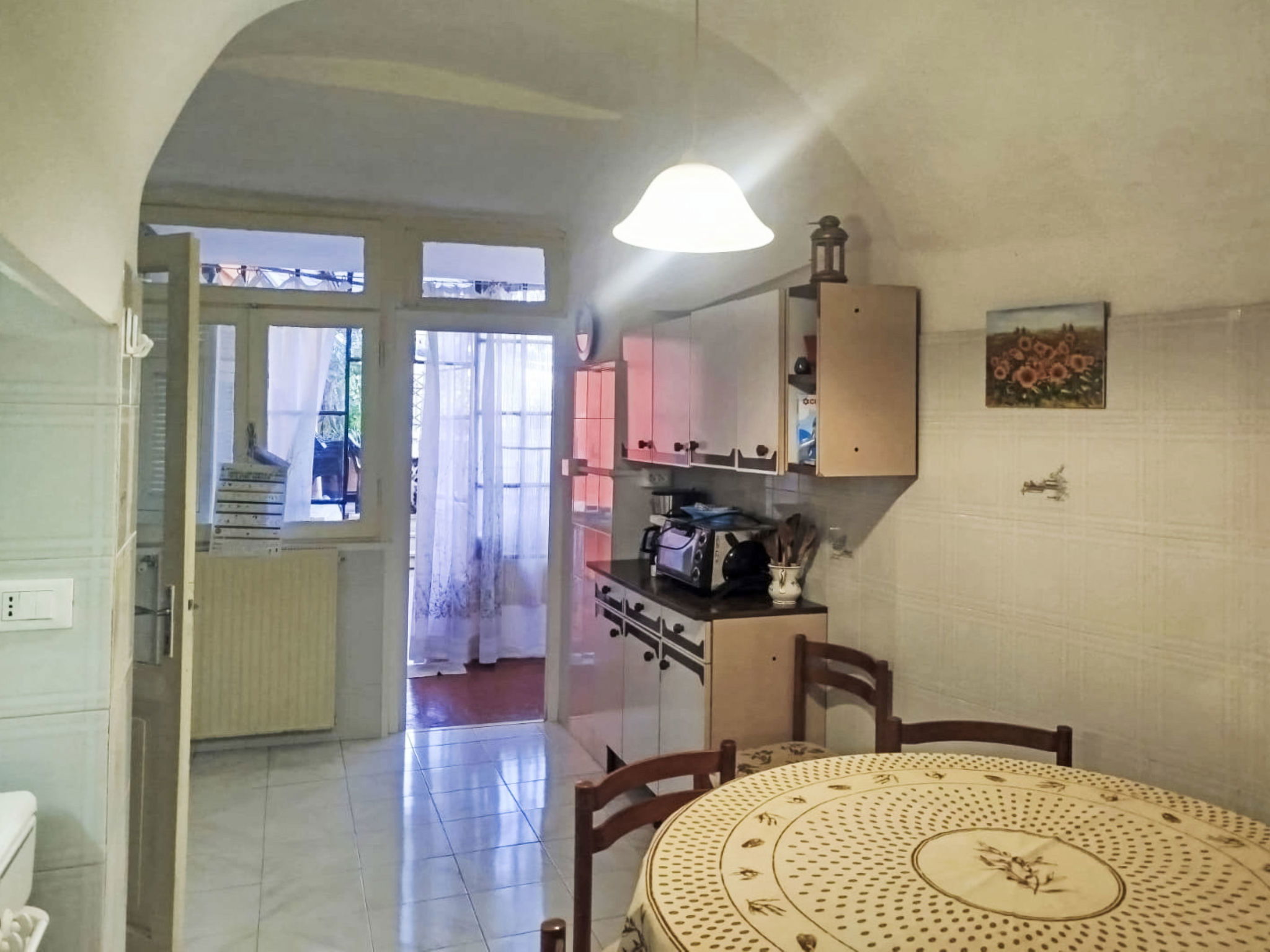 5-room apartment 120 m2. Cosy furnishings: living/dining room with TV. 1 room with 1 bed (80 cm, length 190 cm). 1 room with 1 french bed (140 cm, length 200 cm) with 1 double bed (160 cm, length 200 cm). Exit to the terrace with 1 double bed (160 cm, length 200 cm). Kitchen (oven, dishwasher, Gas stove, toaster, kettle, microwave, freezer). Shower/bidet/WC. Gas heating. Terrace 50 m2. Terrace furniture. Partial view of the sea. Facilities: washing machine, children's high chair, baby cot. Internet (WiFi, free). Please note: 1 pet/ dog allowed. Smoke alarm, fire extinguisher. IT008060C2N4K3OMUB