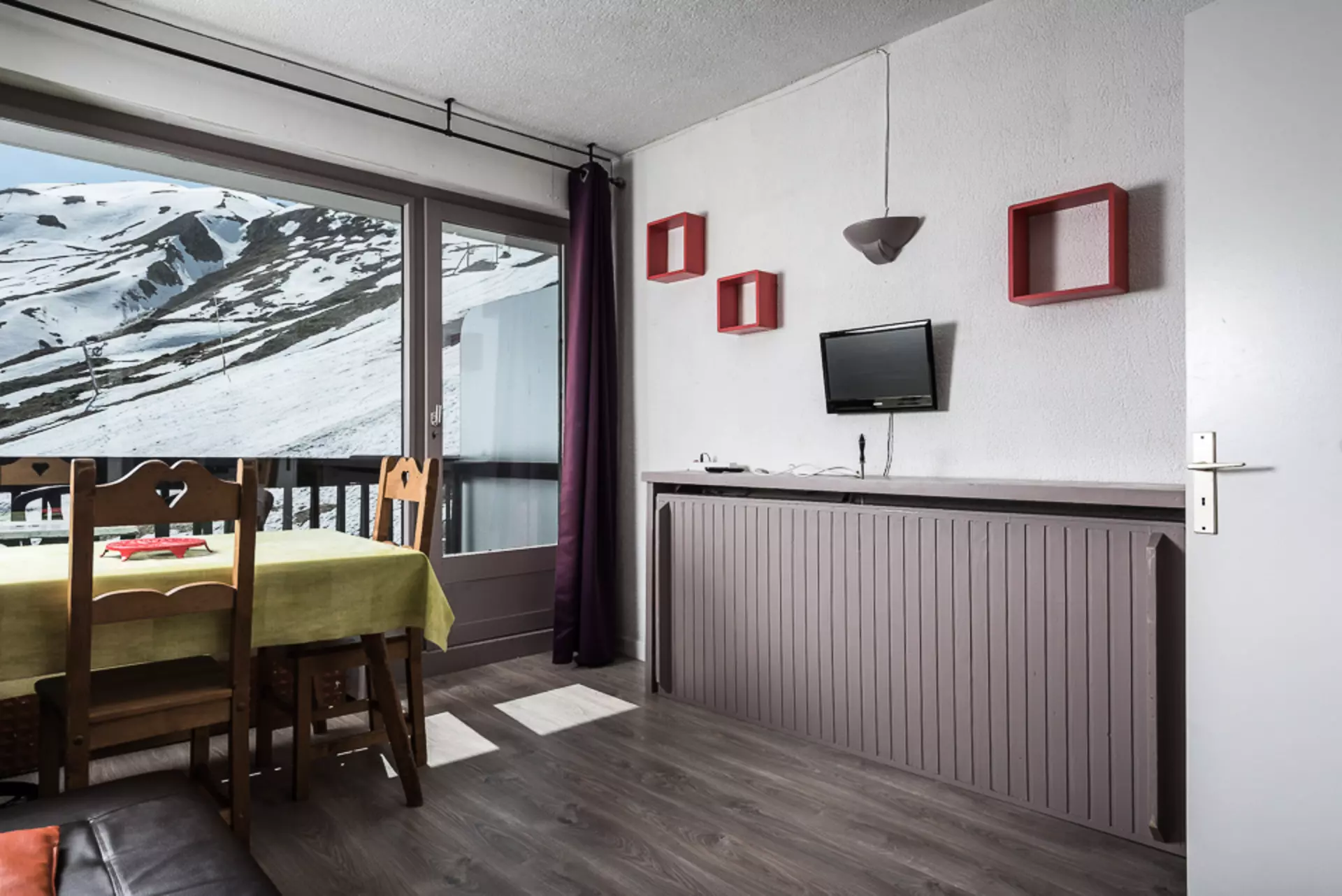 This 33m², 2-room apartment sleeps 4 and is located on the 3rd floor (with elevator) of the "Le Bec Rouge" residence in Tignes le Lac. Located at the foot of the slopes.